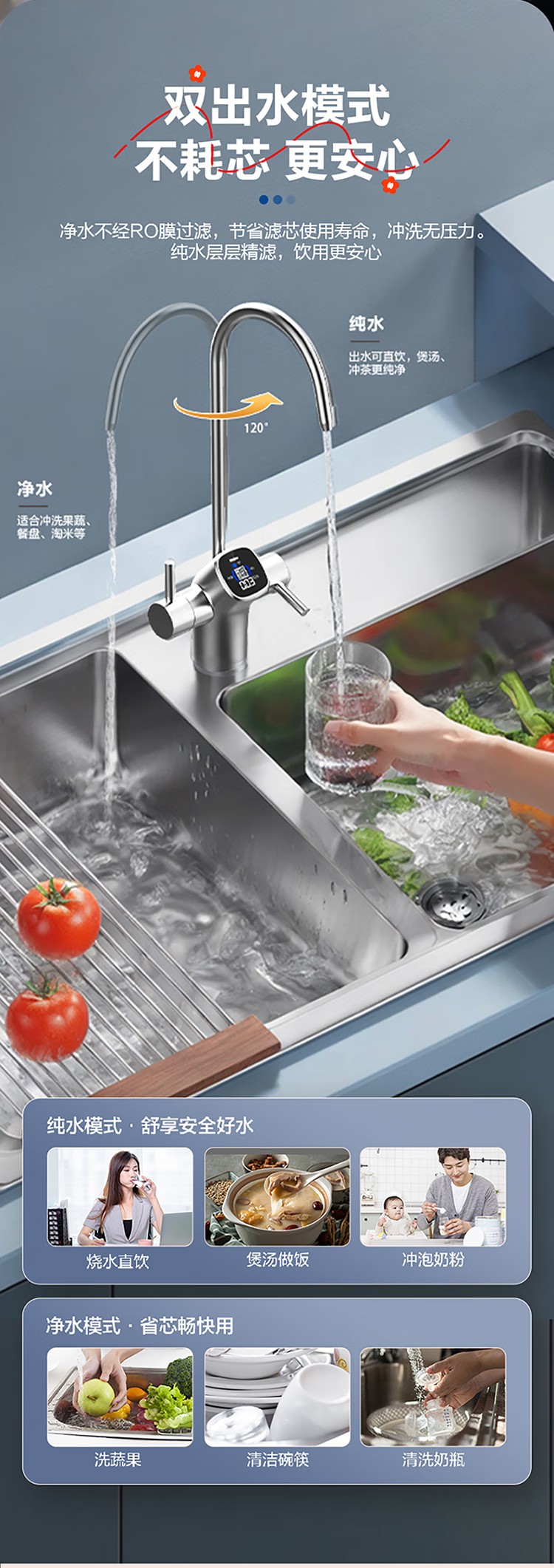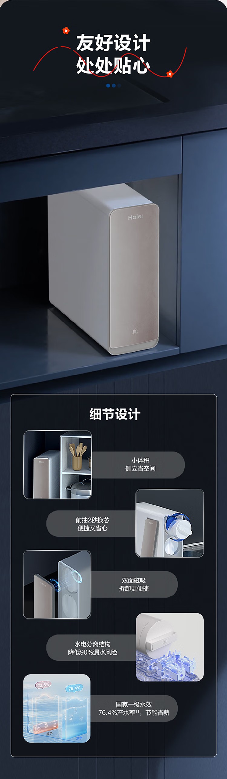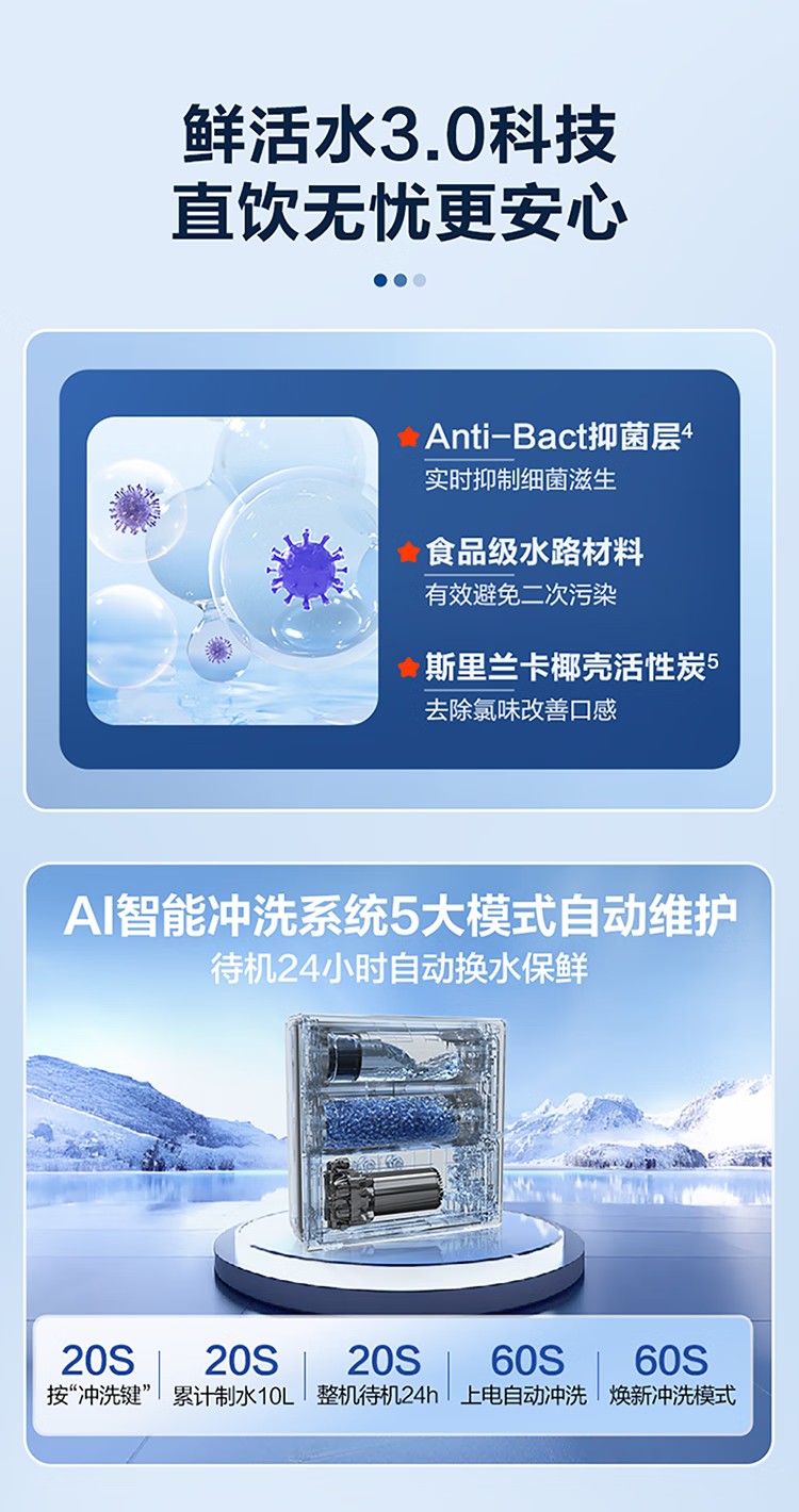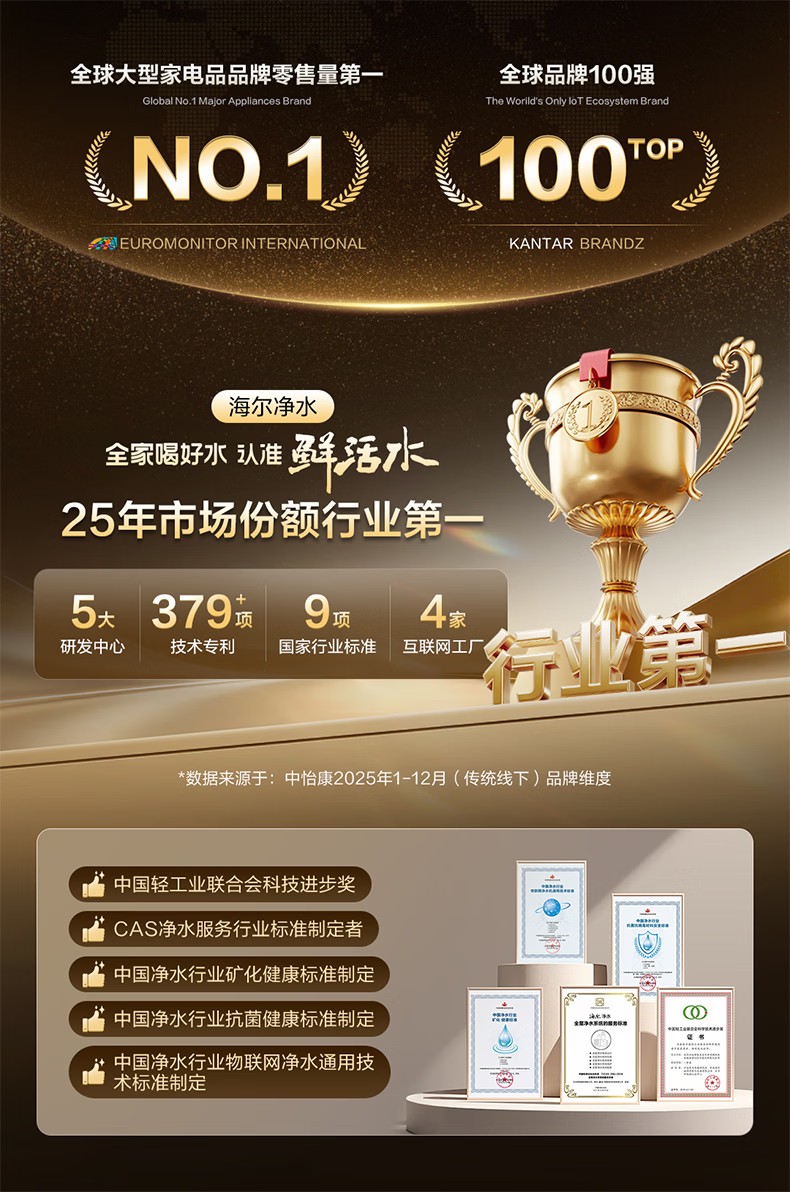 海尔(Haier)家用净水器鲜活水Pro智慧双出水净水机厨下直饮水机出水可视化TDS净饮机882 小红花1200G HKC3000-R882D2U1
