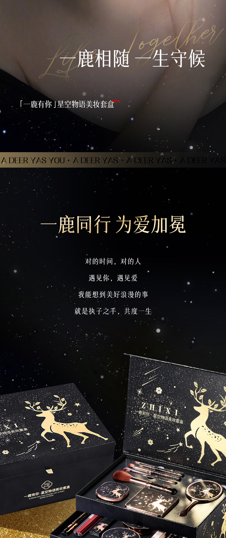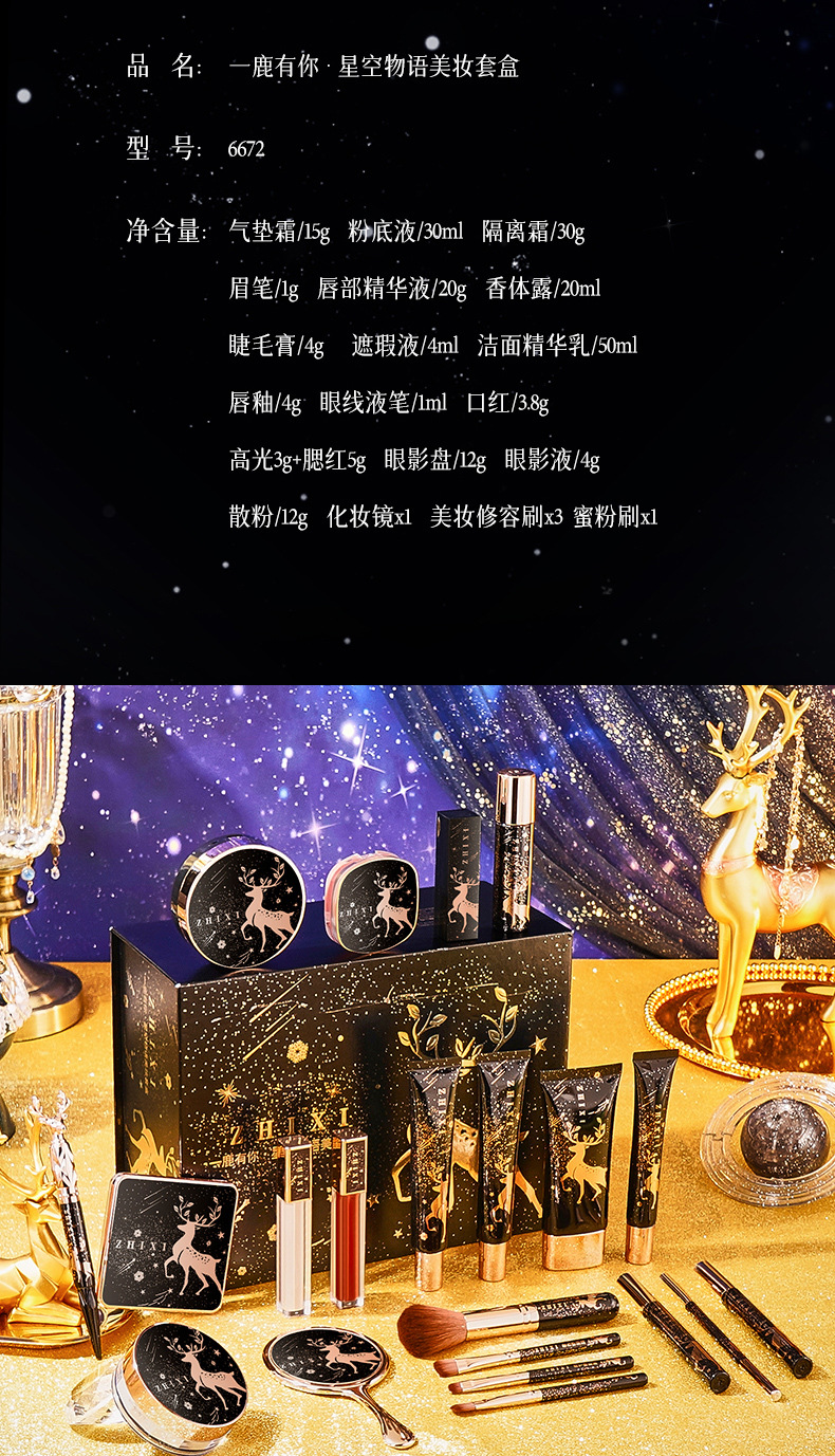 【星空物语彩妆套装,520情人节礼物优选!】知汐一鹿有你星空物语彩妆套装520 情人节生日礼物 口红化妆品礼盒-QB