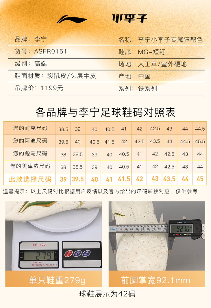 Lining/李宁 铁系列(小李子合作款)“钰”配色袋鼠皮MG足球鞋
