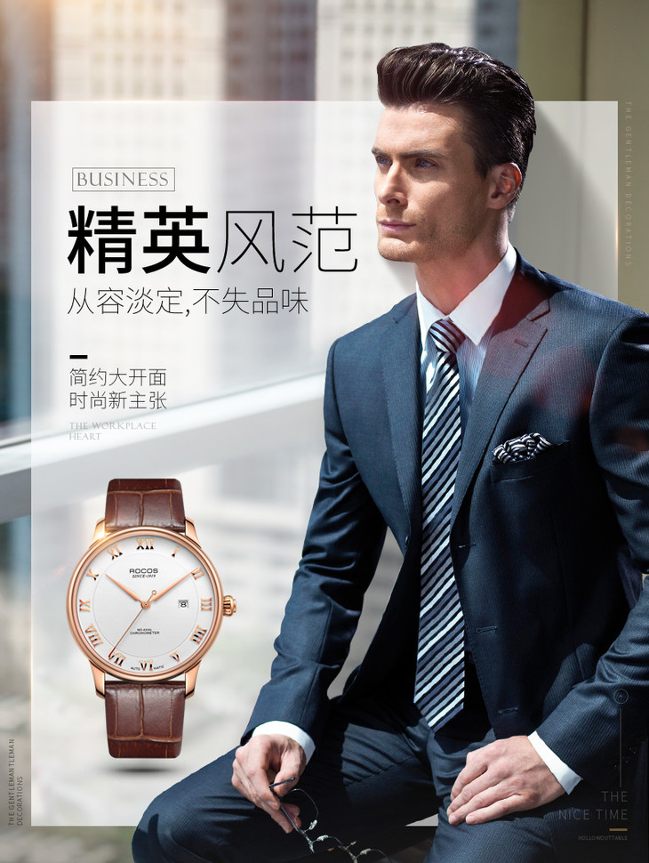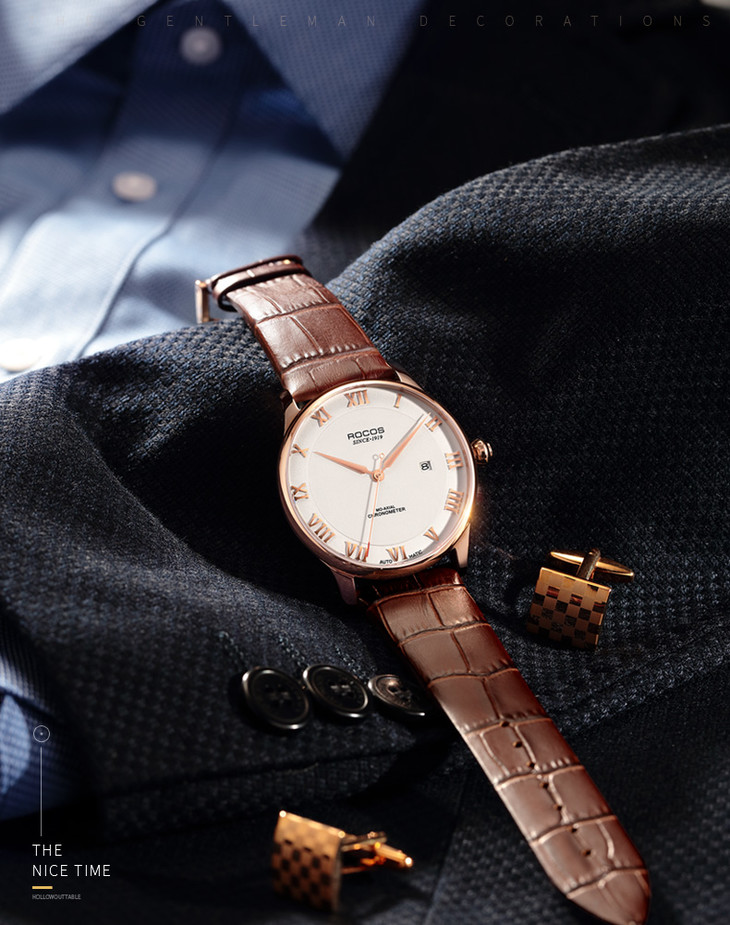 雷克斯新款复古时尚潮流全自动机械手表男表皮带防水r0301