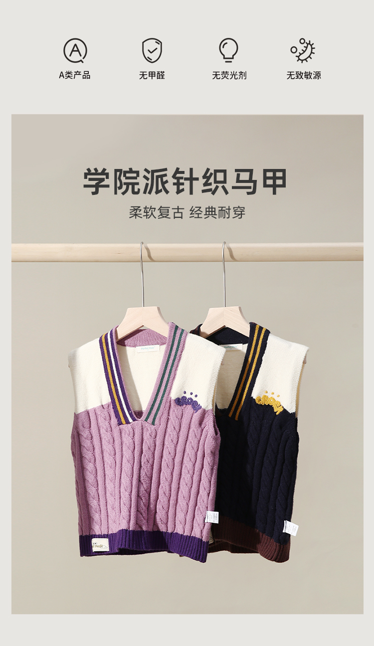 【100元任选5件】【复古学院风 叠穿不压身 】学院派针织马甲PQMY22004