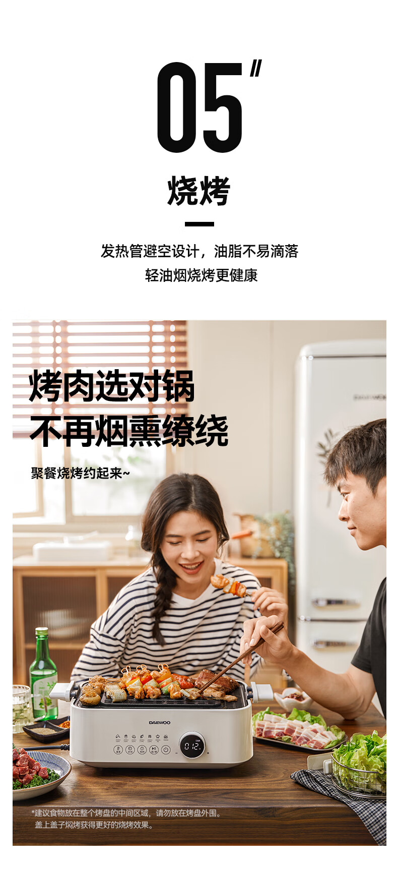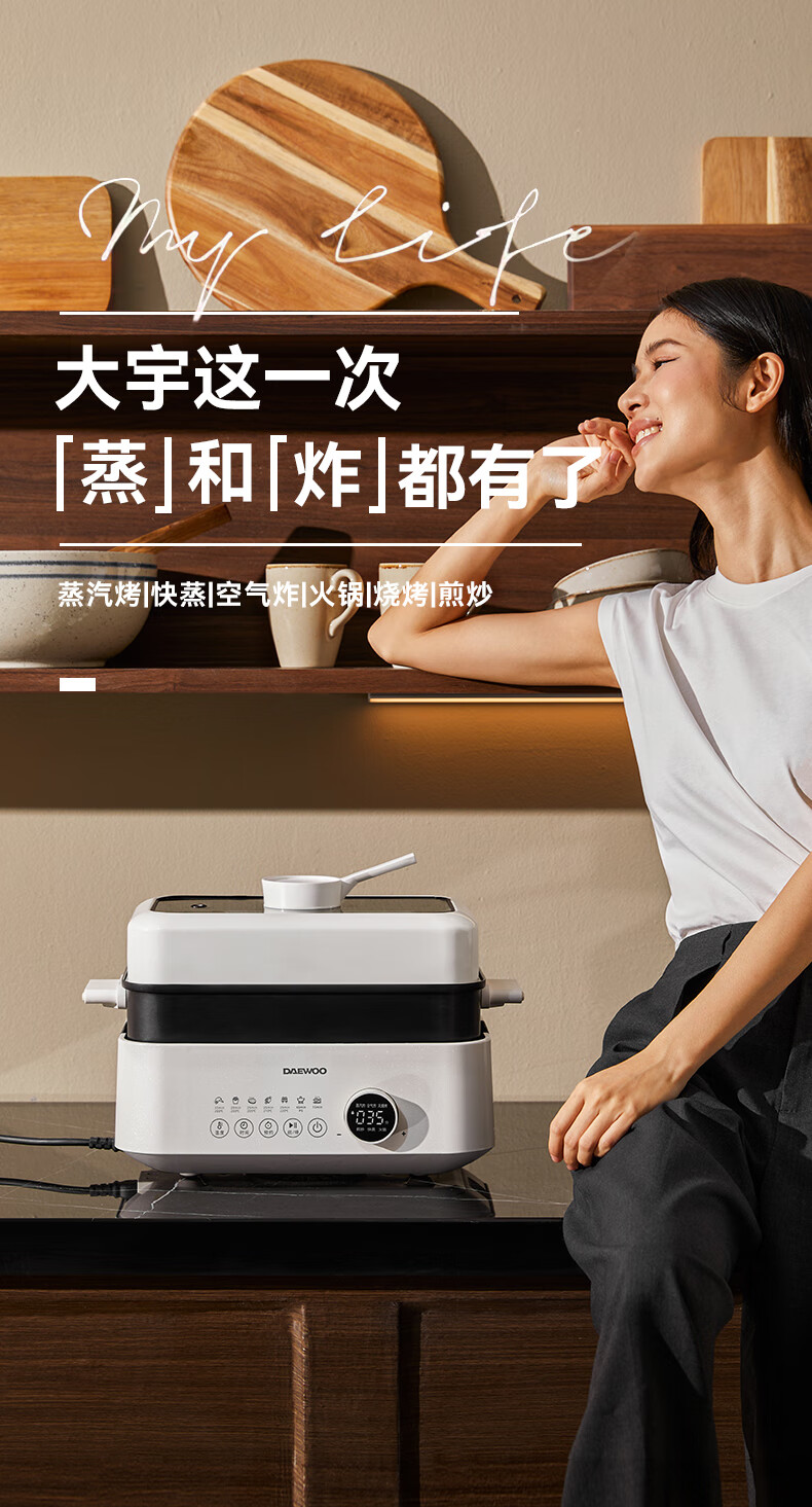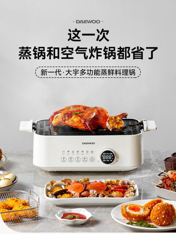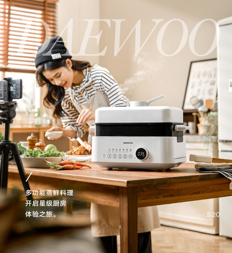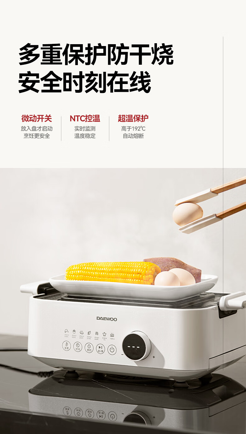 大宇 锅蒸鲜料理锅 家用电蒸锅电火锅蒸汽炸空气炸锅电煮锅电炒锅 电热锅电烧烤炉烤肉锅S20 白色【伊藤优选302401】