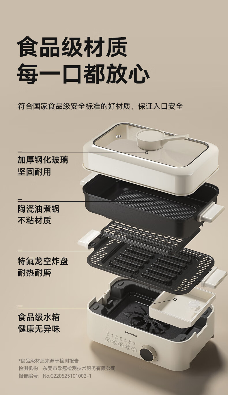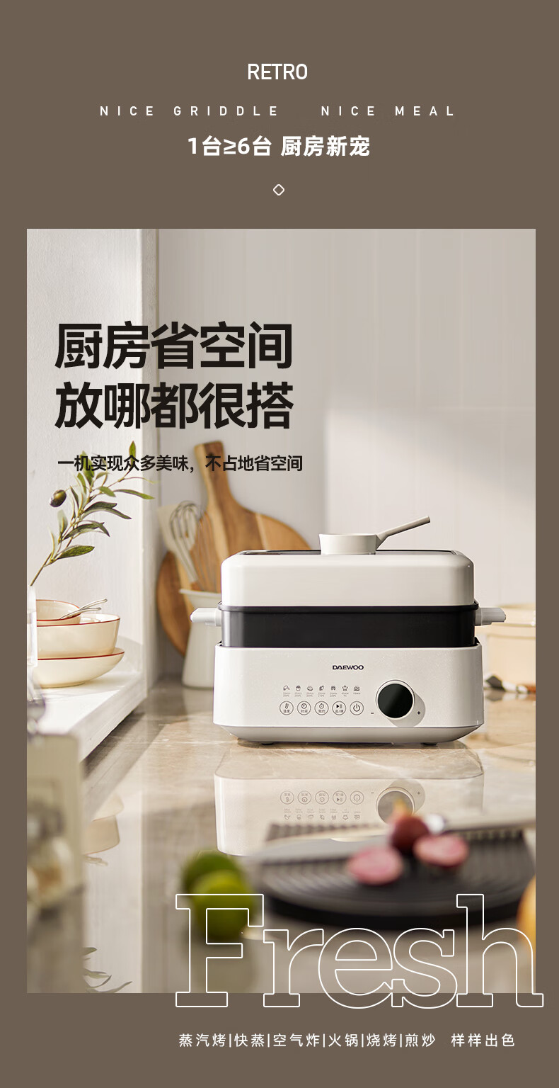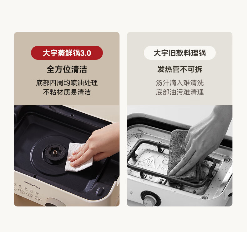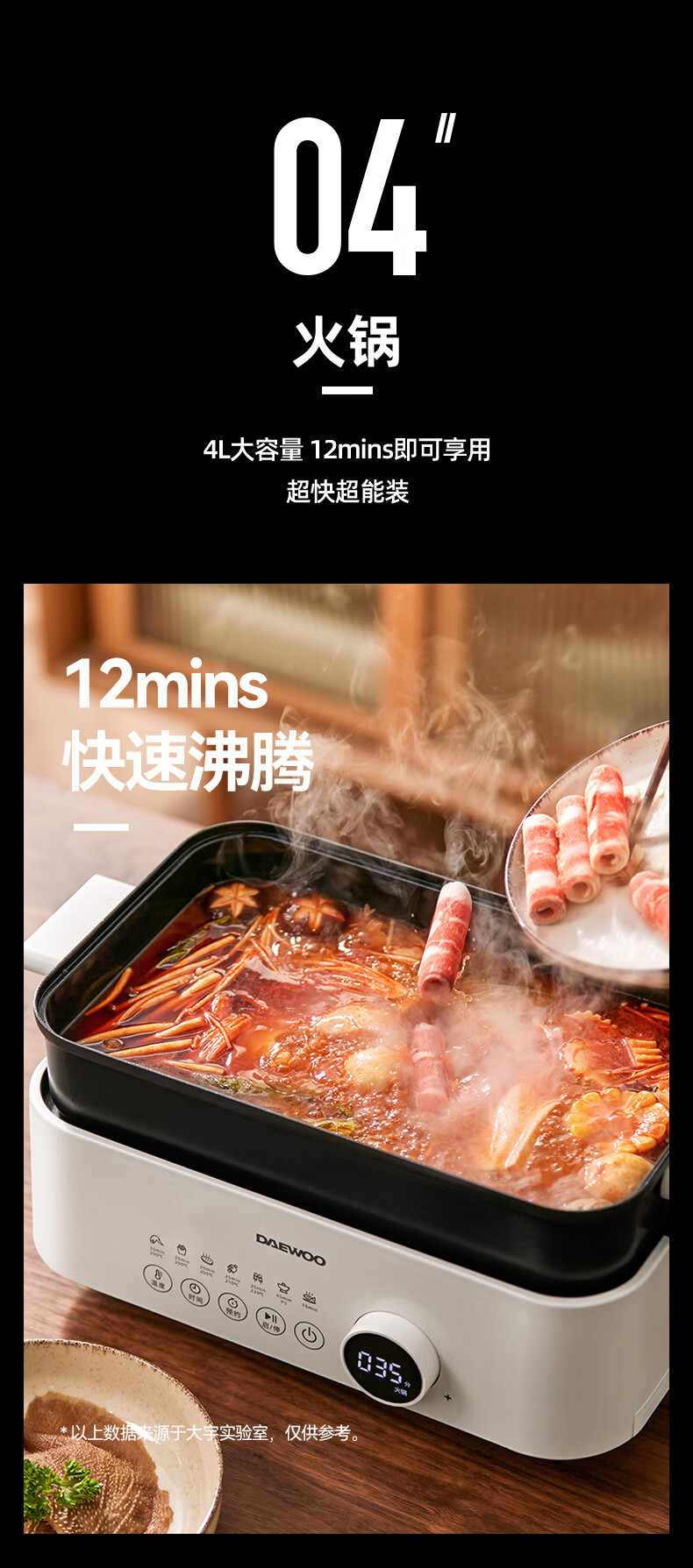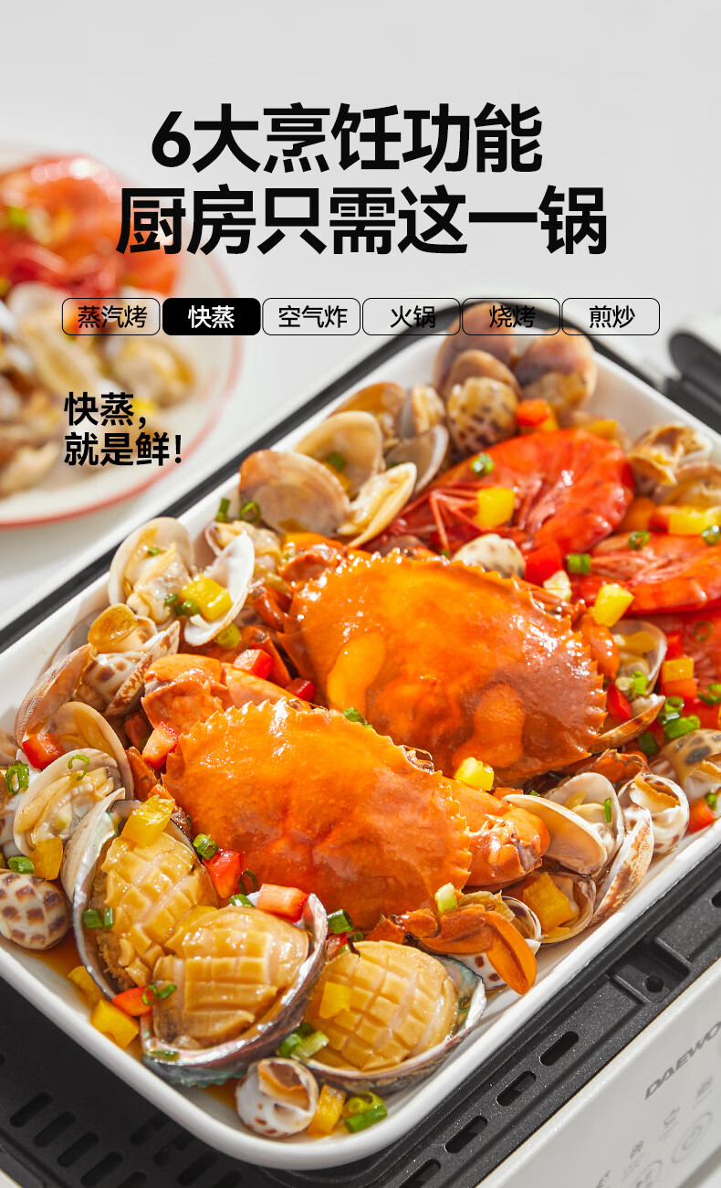 大宇 锅蒸鲜料理锅 家用电蒸锅电火锅蒸汽炸空气炸锅电煮锅电炒锅 电热锅电烧烤炉烤肉锅S20 白色【伊藤优选302401】