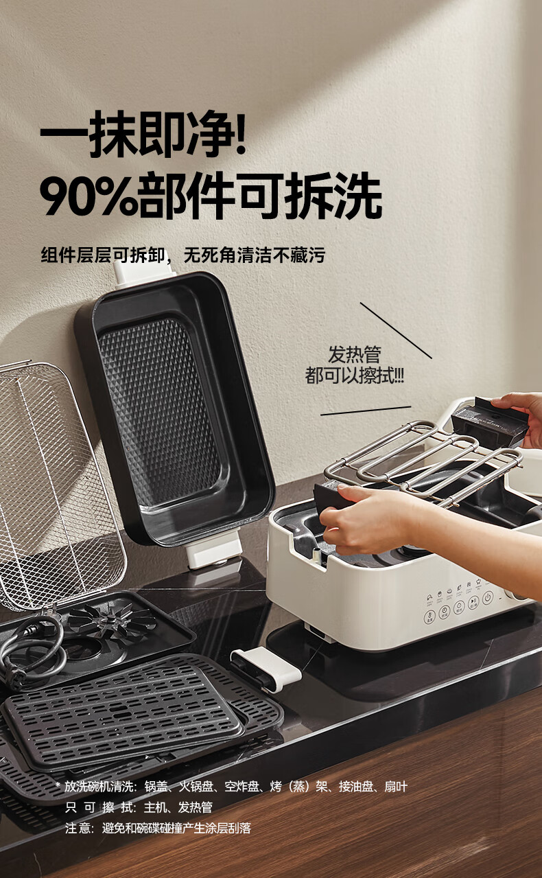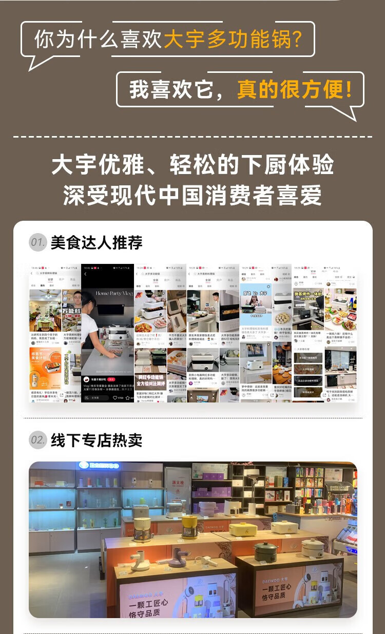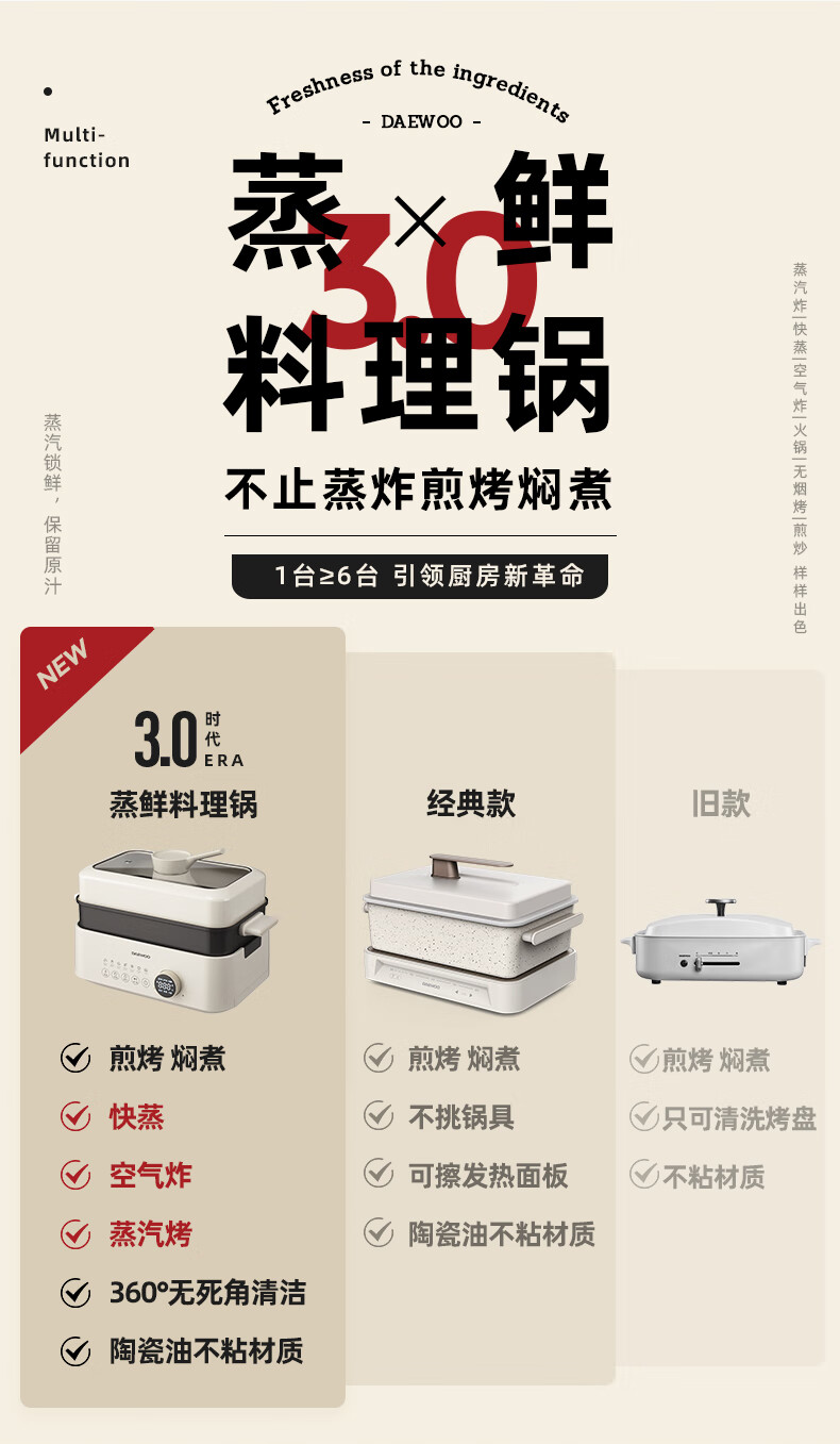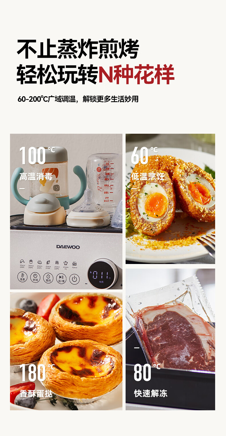 大宇 锅蒸鲜料理锅 家用电蒸锅电火锅蒸汽炸空气炸锅电煮锅电炒锅 电热锅电烧烤炉烤肉锅S20 白色【伊藤优选302401】