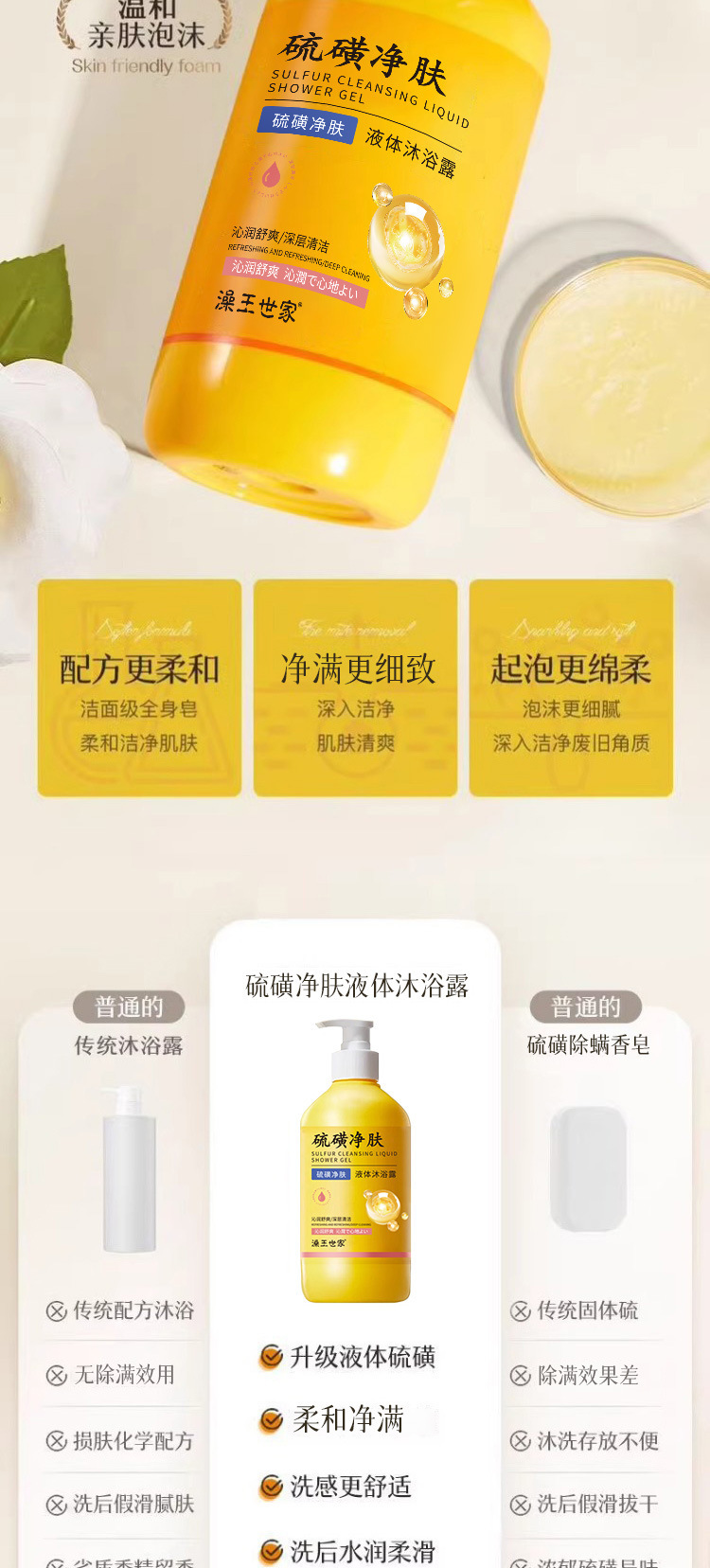 【清爽洁净❗️保湿补水】澡王世家硫磺净肤液体沐浴露净肤祛痘除螨沐浴液香皂沐浴露。ya