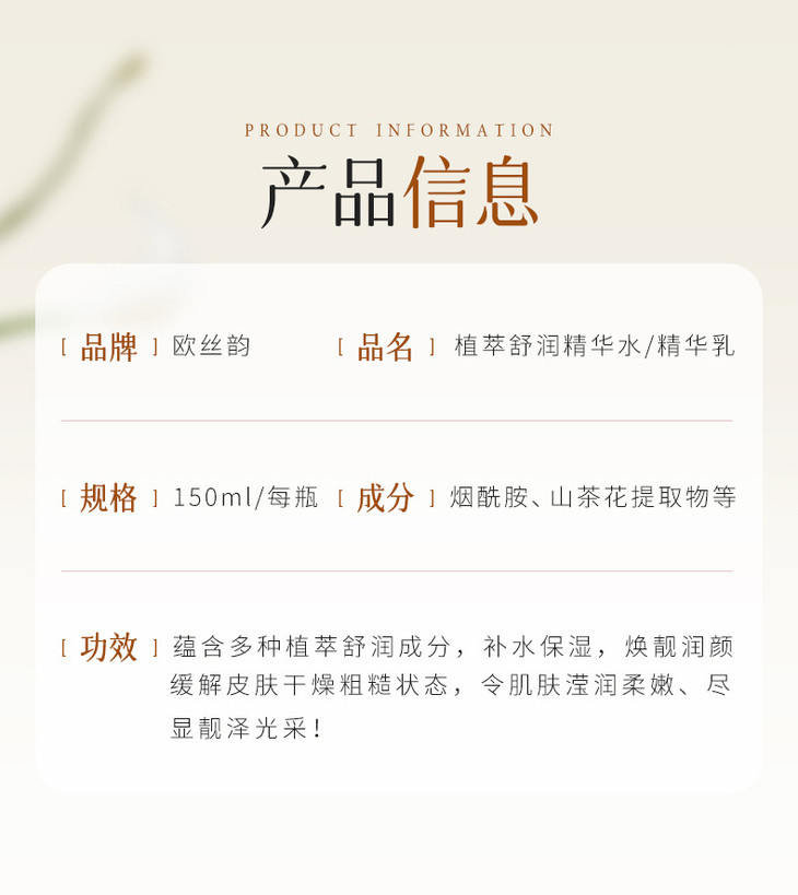 四季通用植萃舒润精华水乳补水保湿护肤水润肌肤改善粗糙水乳组合