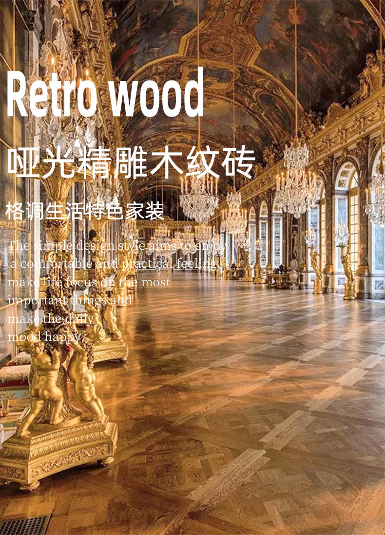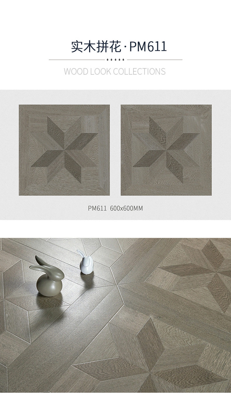艺术法式佛山地砖木纹600x600卧室瓷砖砖阳台防滑客厅拼花复古 商品图2