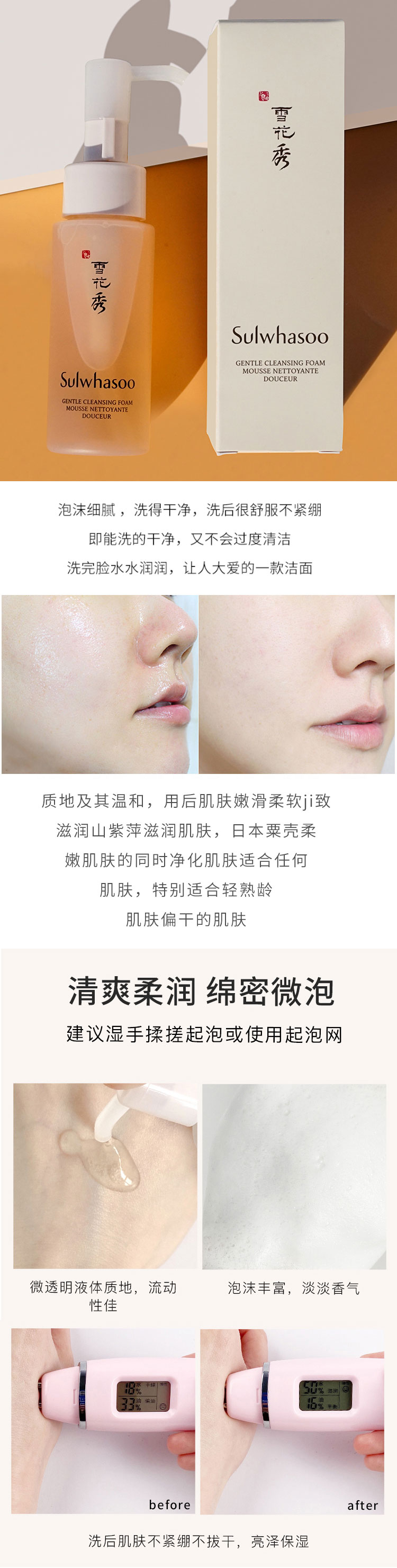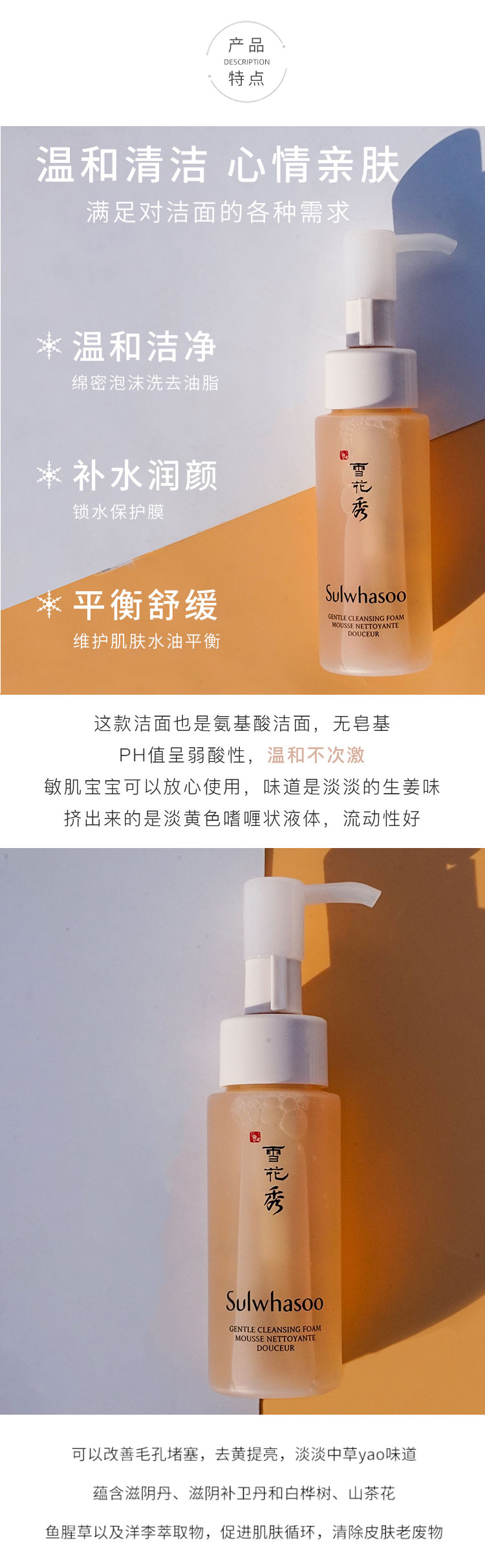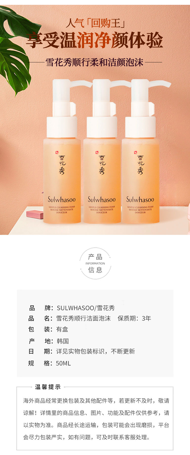 【99任选3件】雪花秀顺行洁颜泡沫洗面奶中小样50ml氨基酸洁面温和无残留