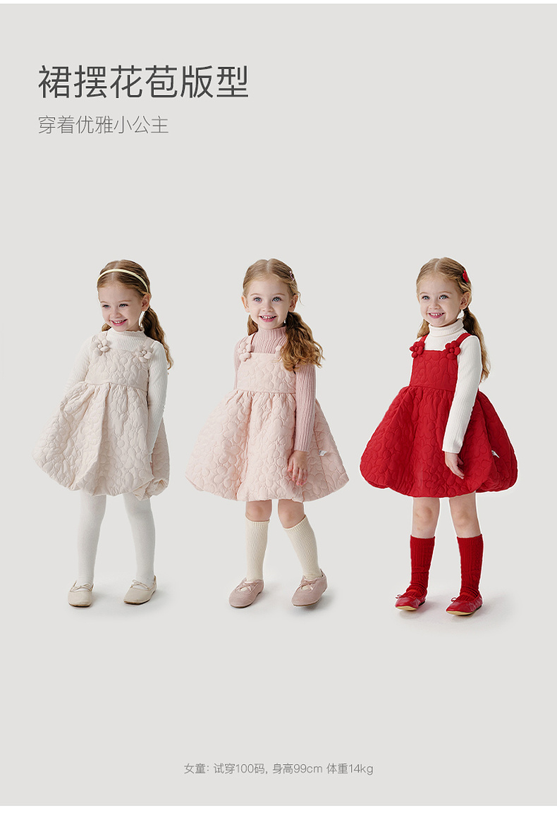 马克珍妮女童立体花朵绗棉花苞吊带裙2024年秋冬新款240962