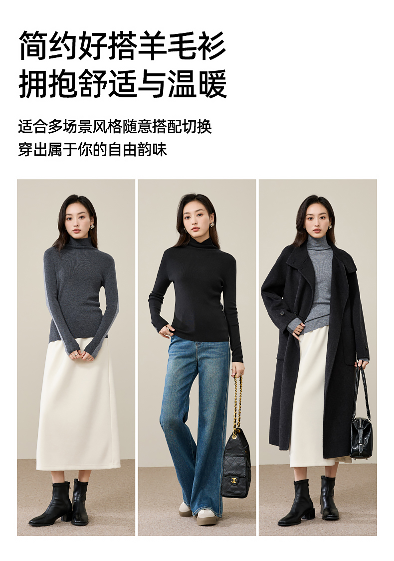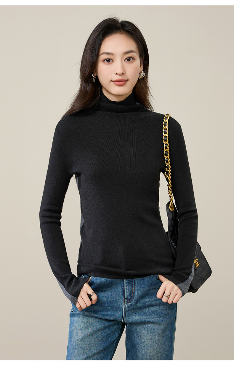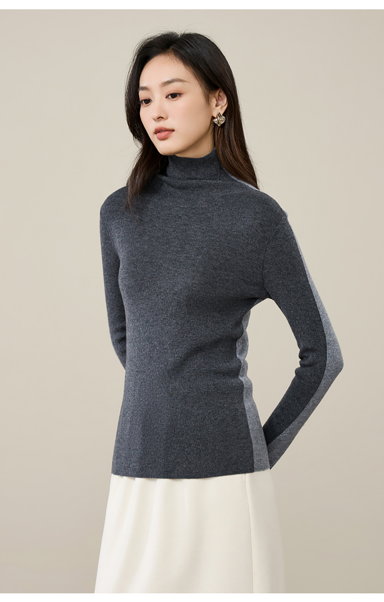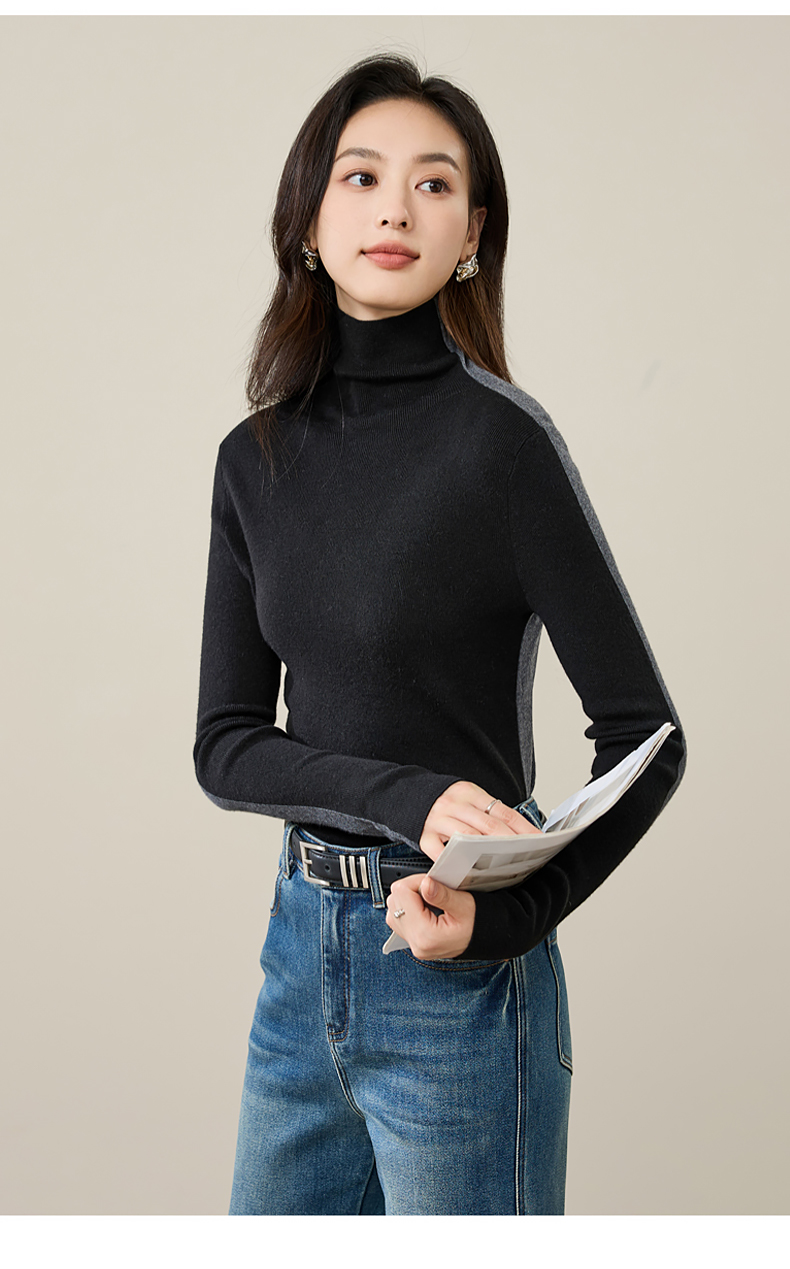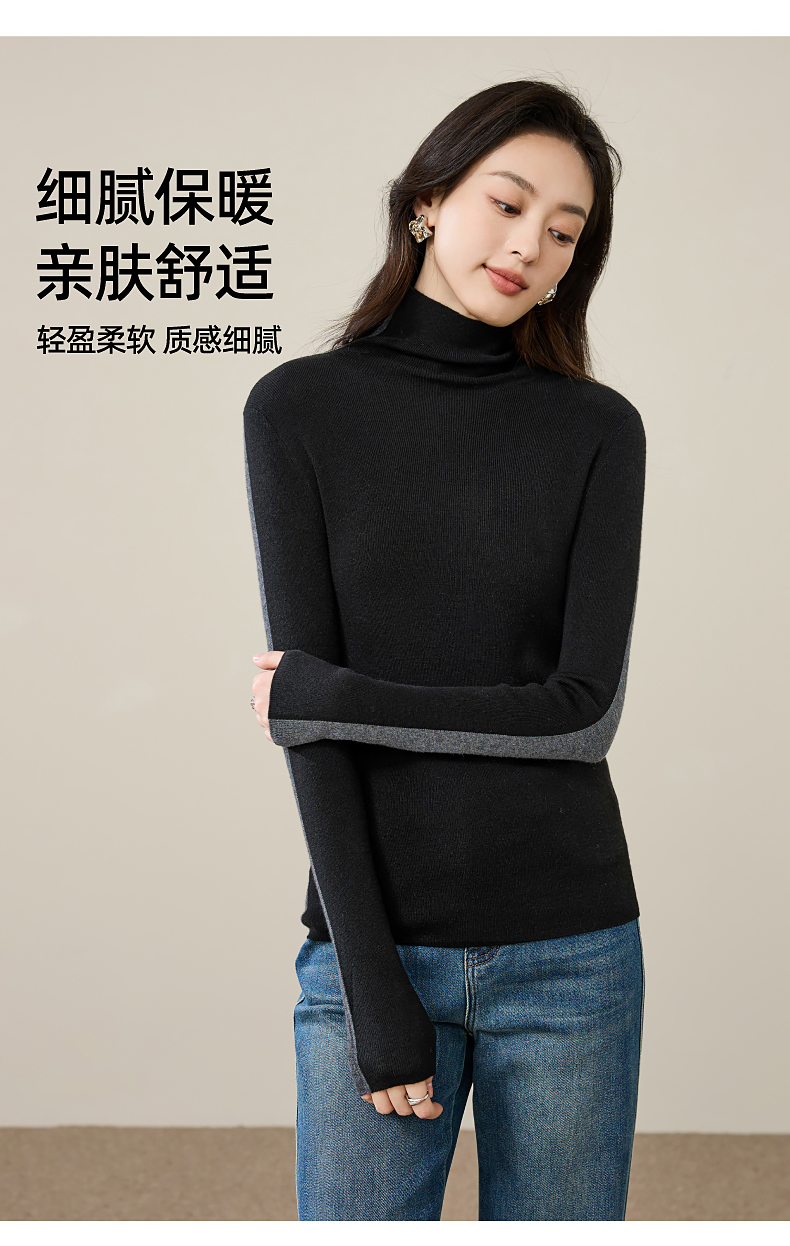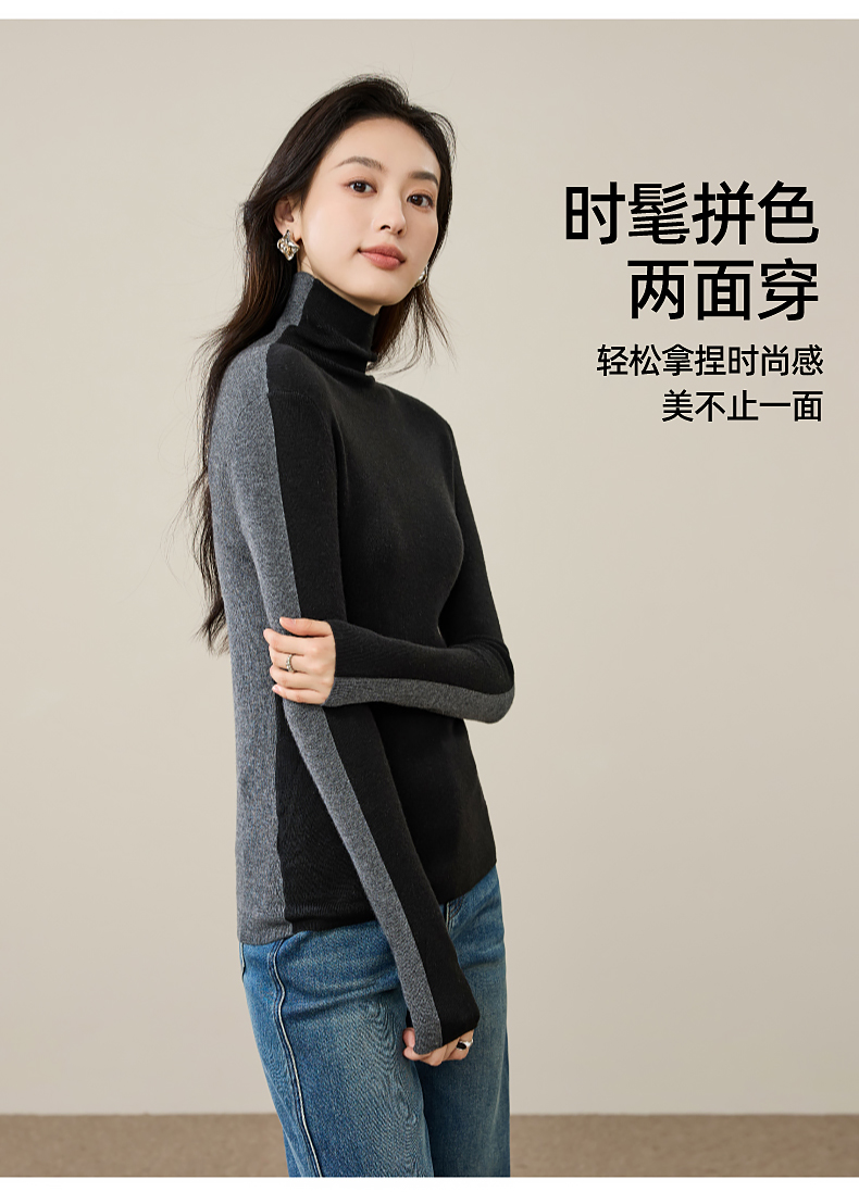 【撞色-两穿-羊毛衫】逸阳秋冬新款高领宽松百搭厚可外穿毛衣3973