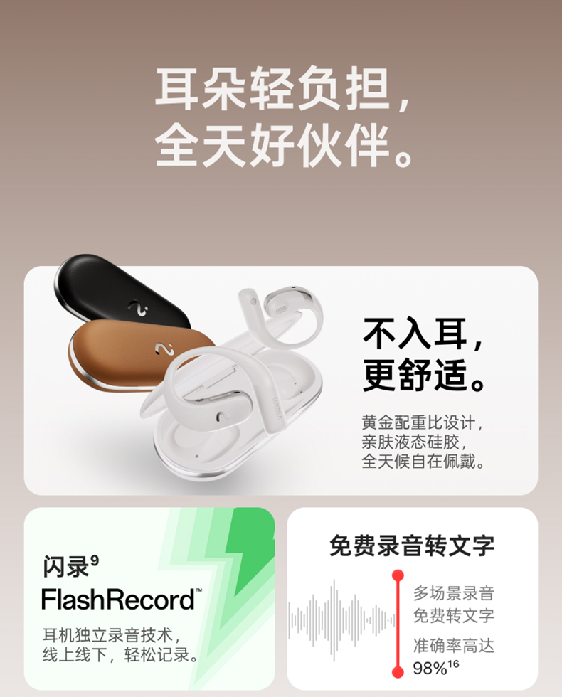 cleer Arc5代音弧不入耳开放式挂耳式AI智能杜比音效大师音质无线蓝牙运动耳机适配华为苹果小米