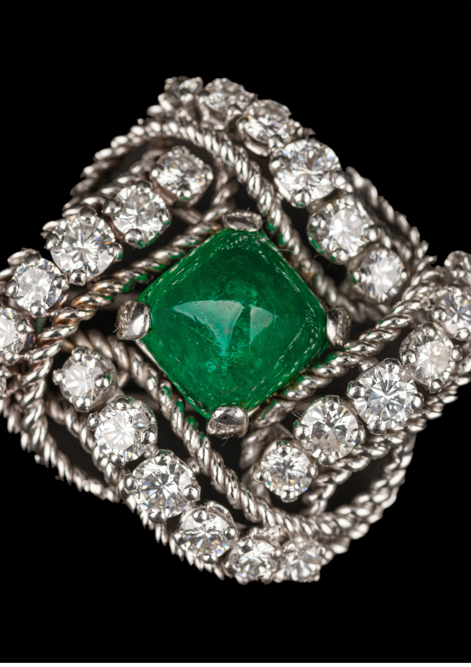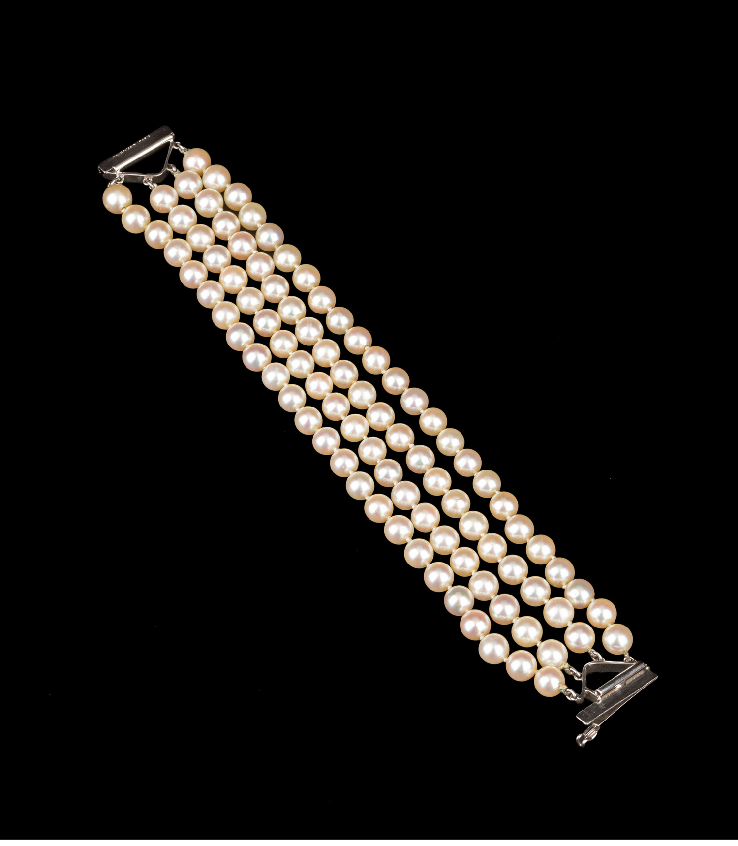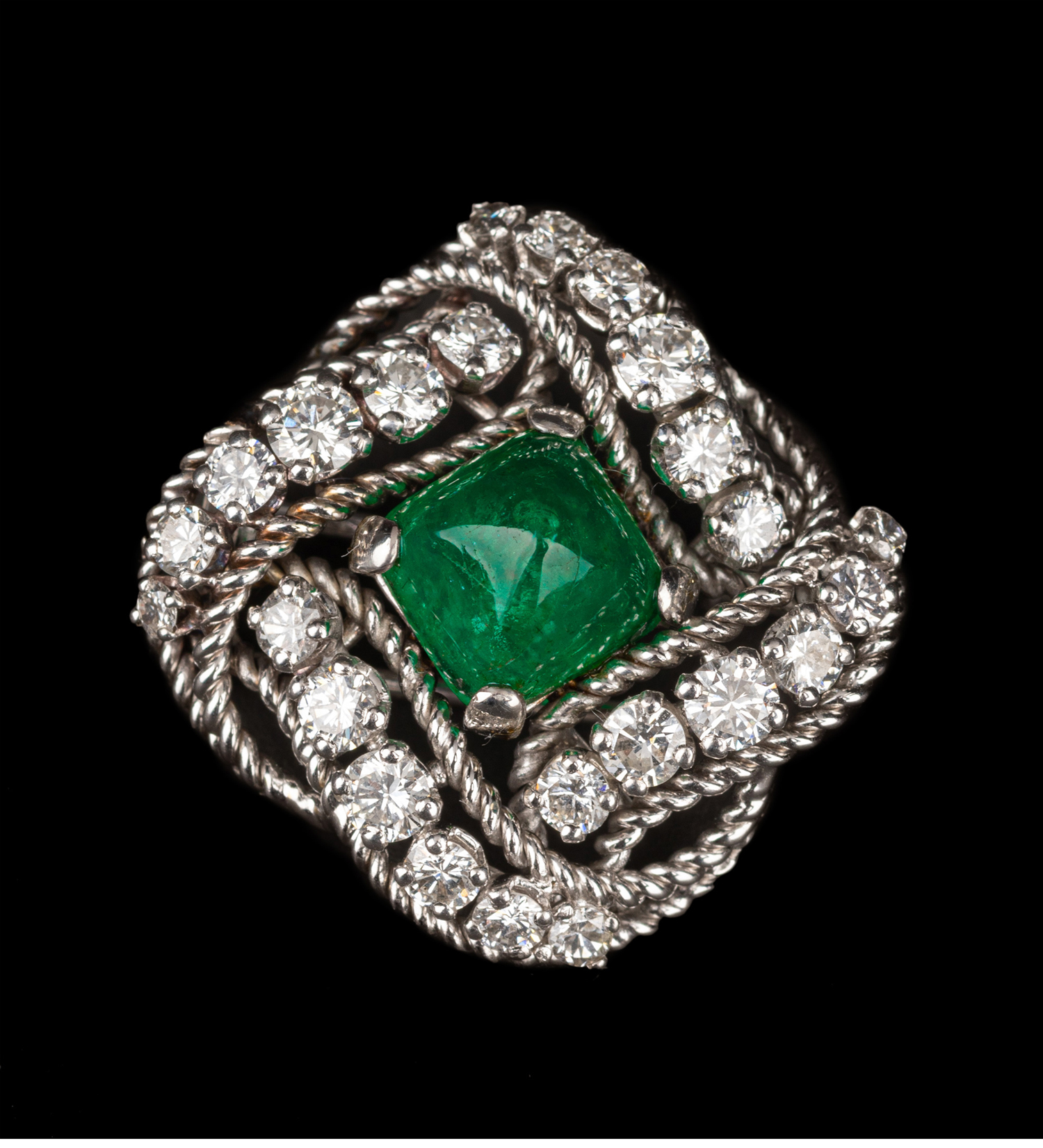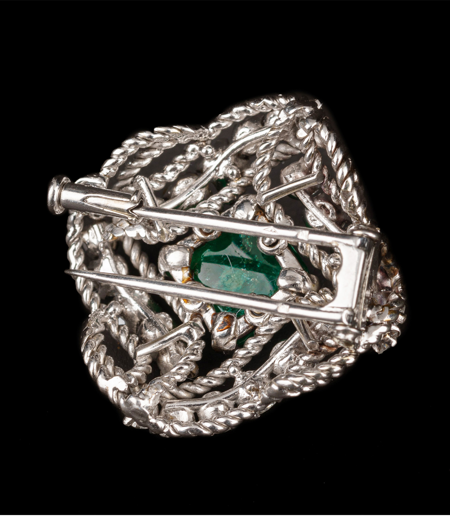 独角鹿西洋古董法国18K白金镶钻石哥伦比亚祖母绿四股珍珠手链