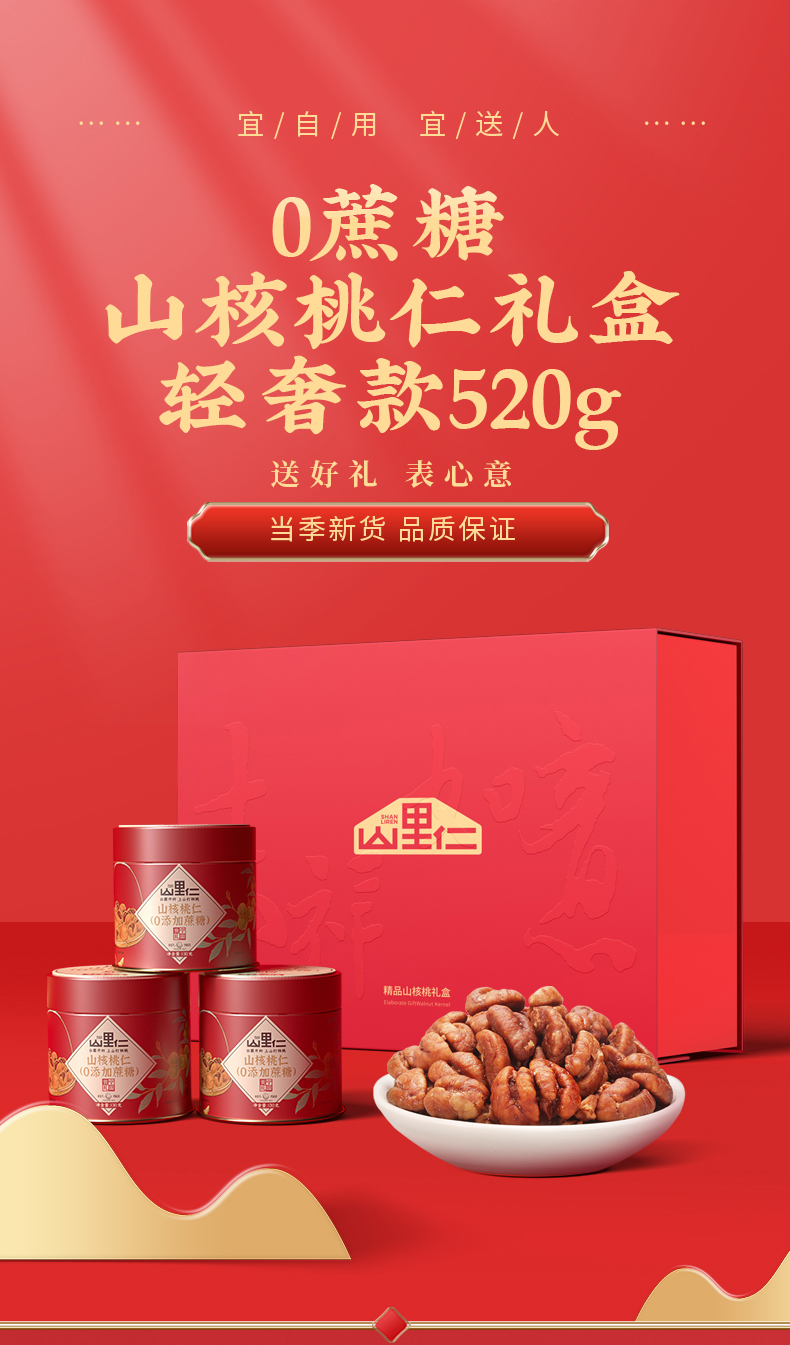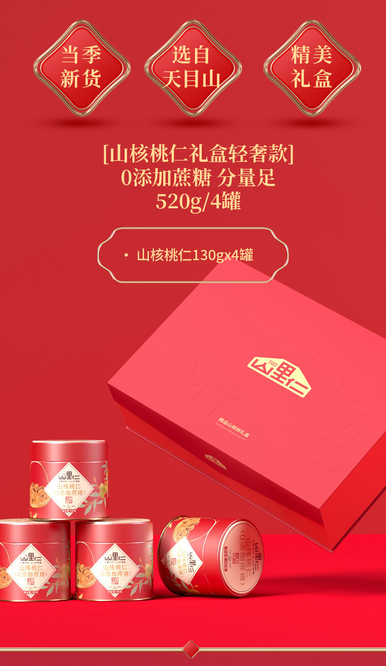 山里仁 吉祥如意有机山核桃仁礼盒(130g*4罐)