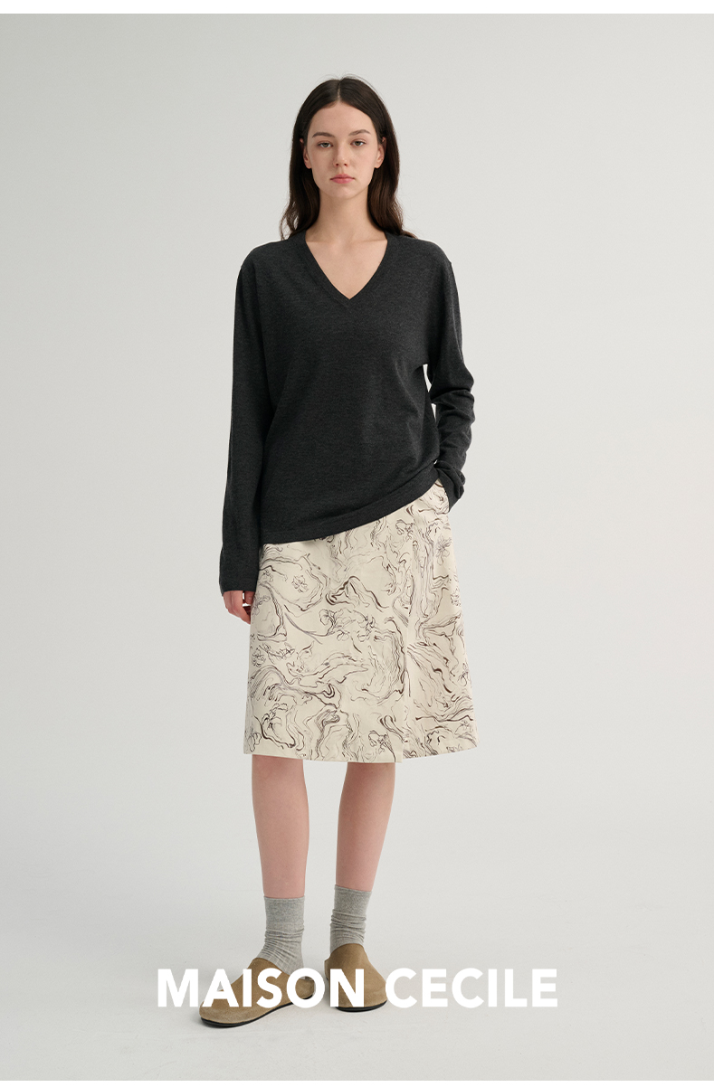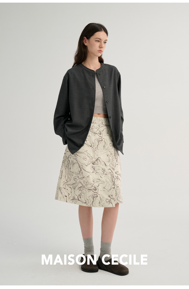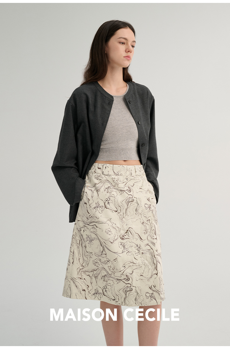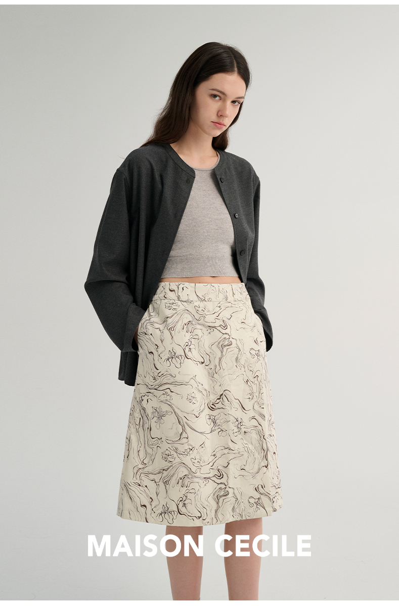 MAISON CECILE 设计师印花优雅通勤一片式围裹A字半身裙