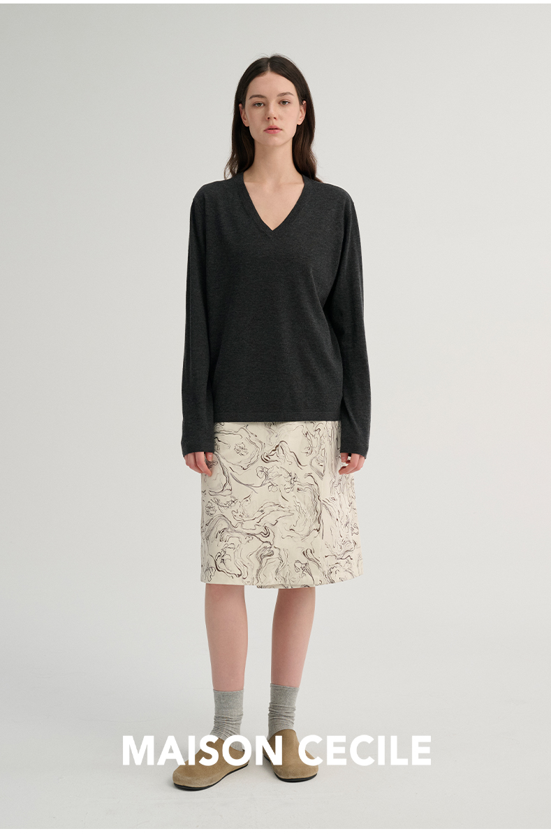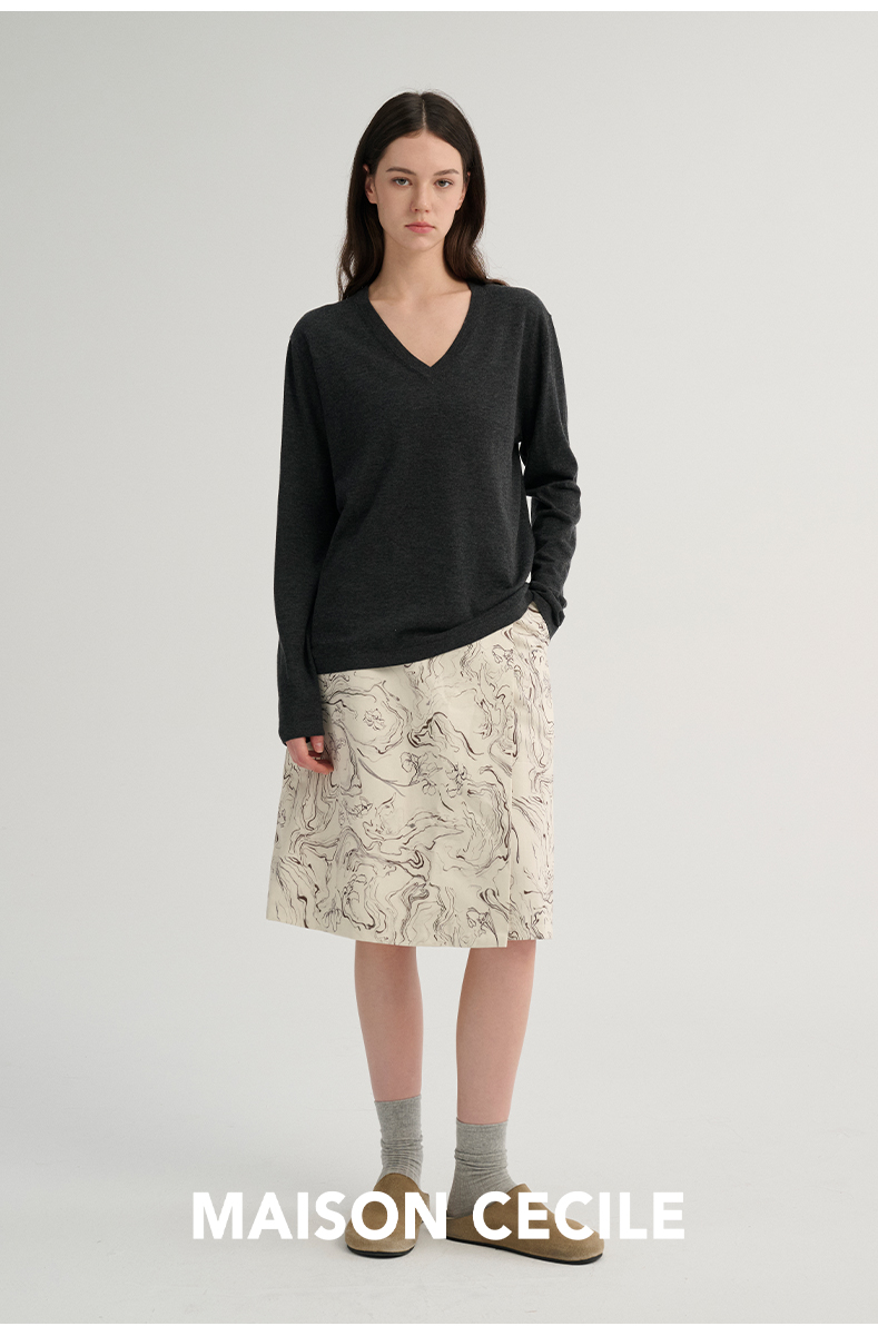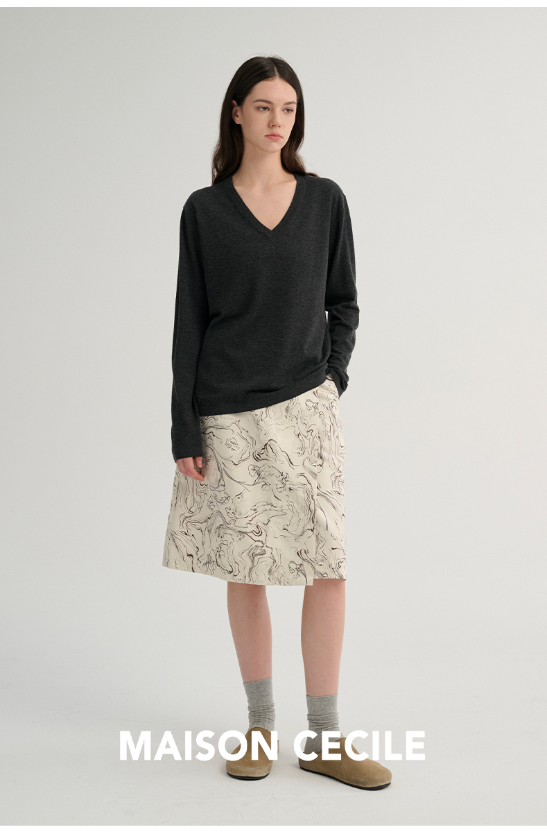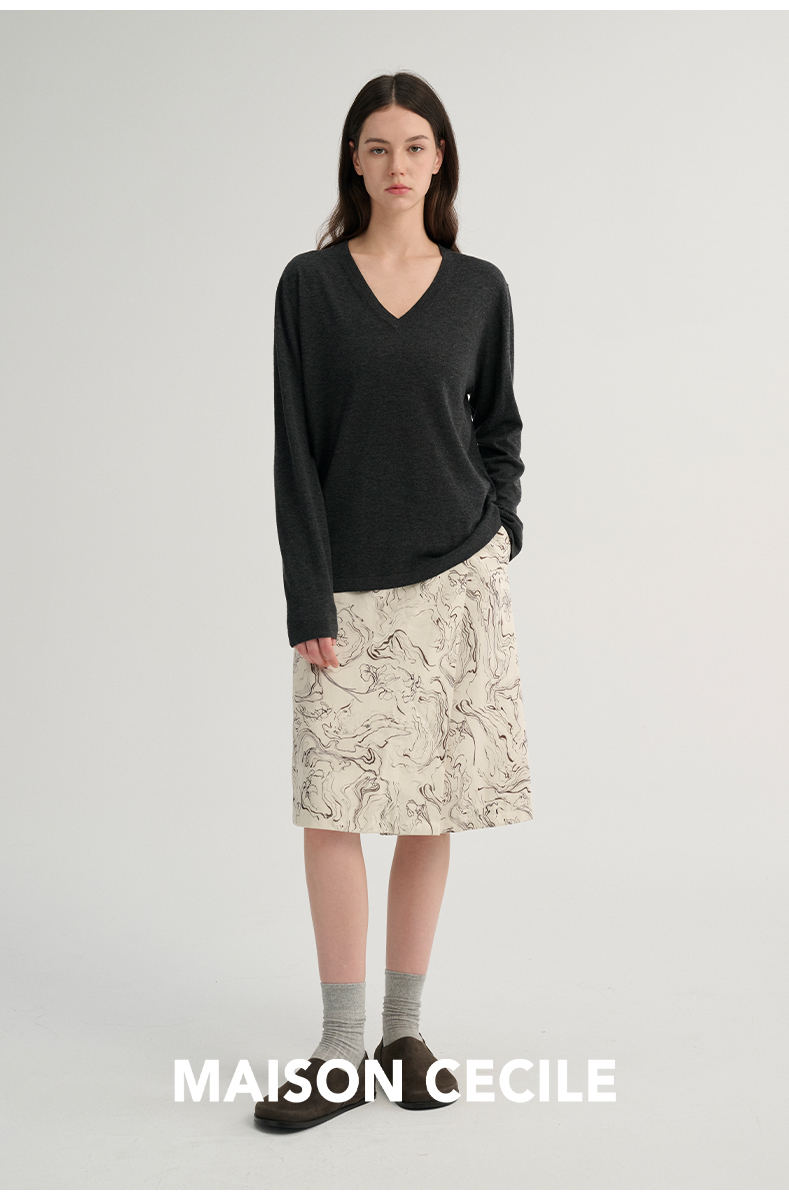 MAISON CECILE 设计师印花优雅通勤一片式围裹A字半身裙