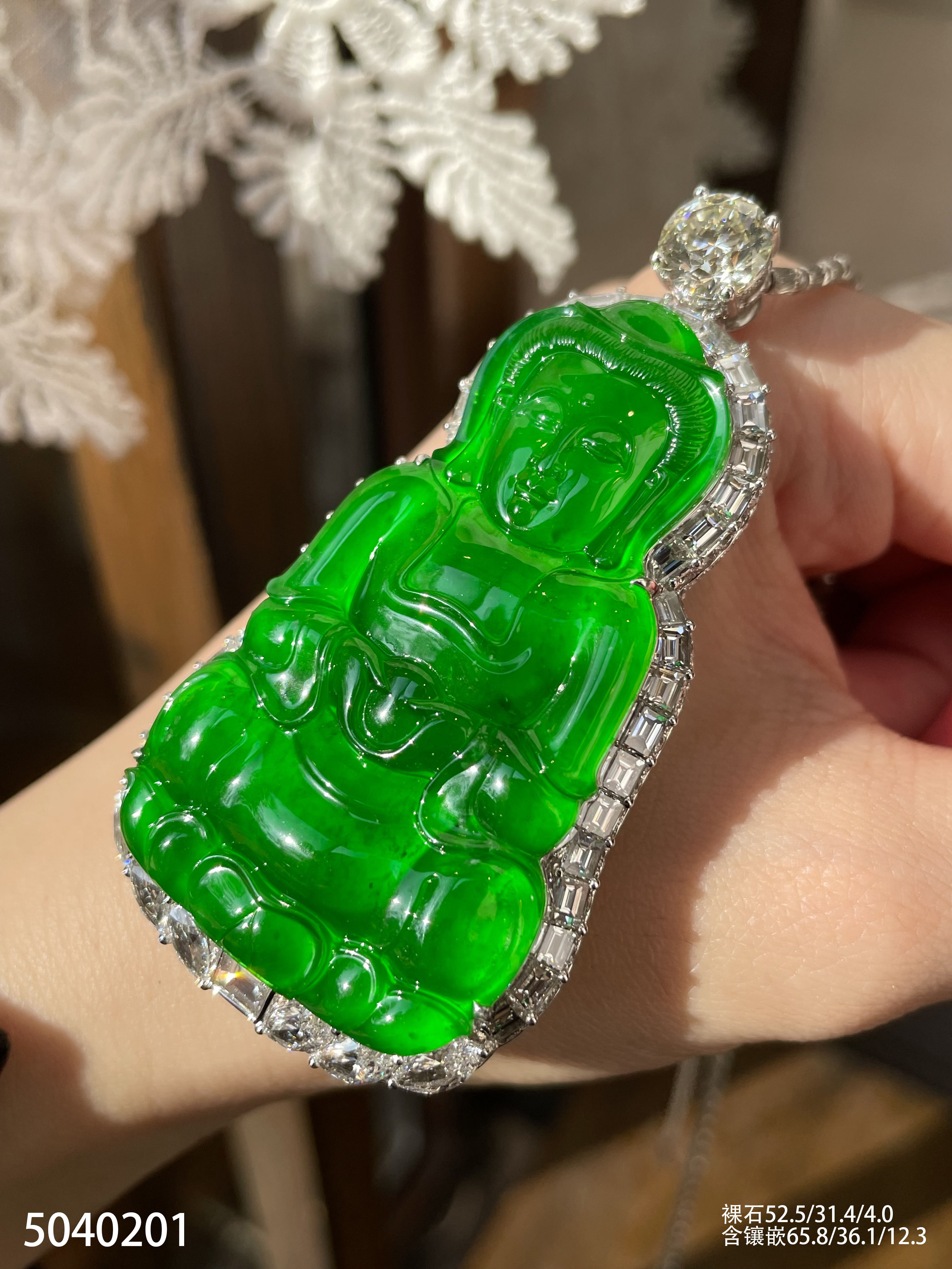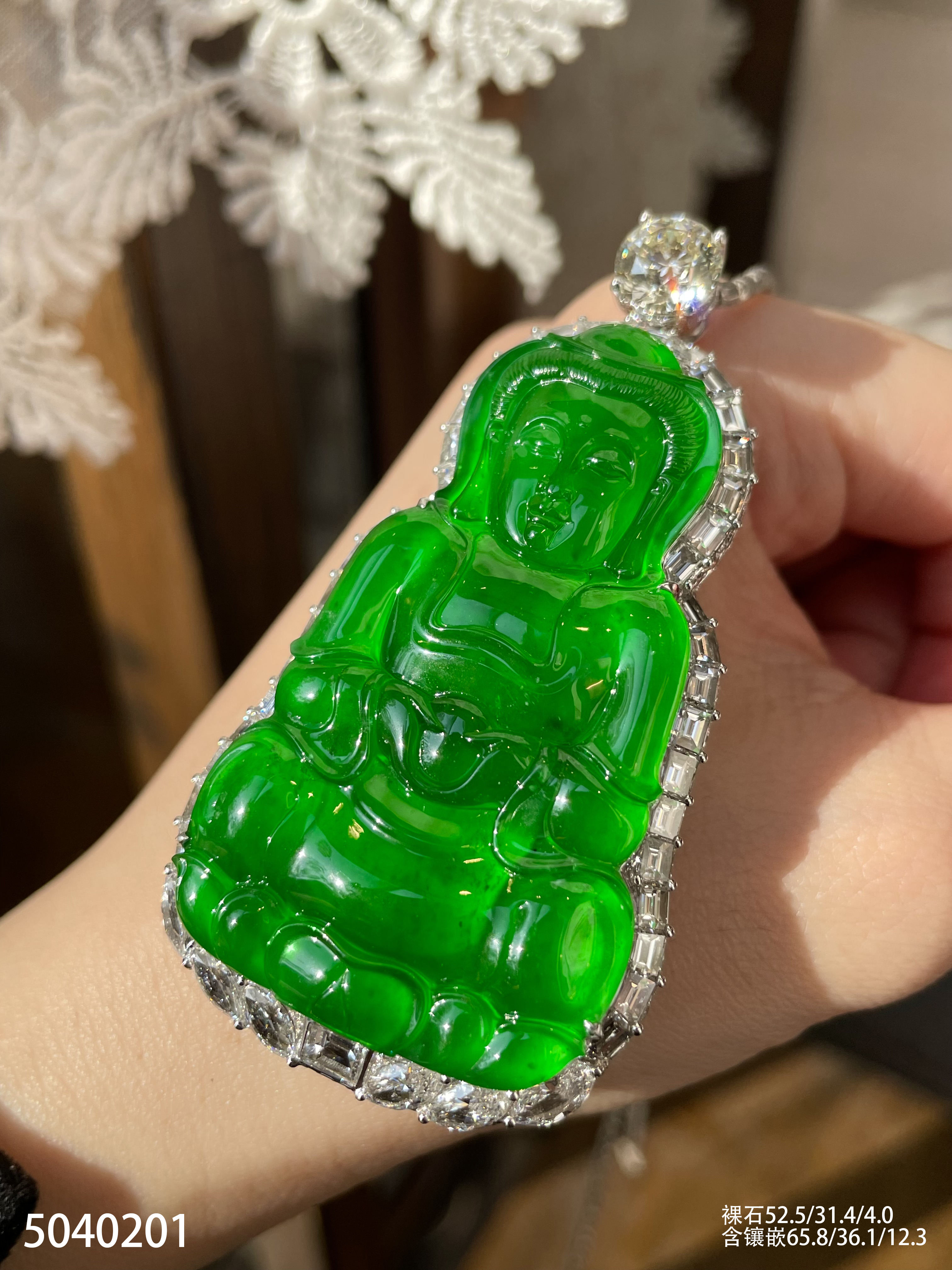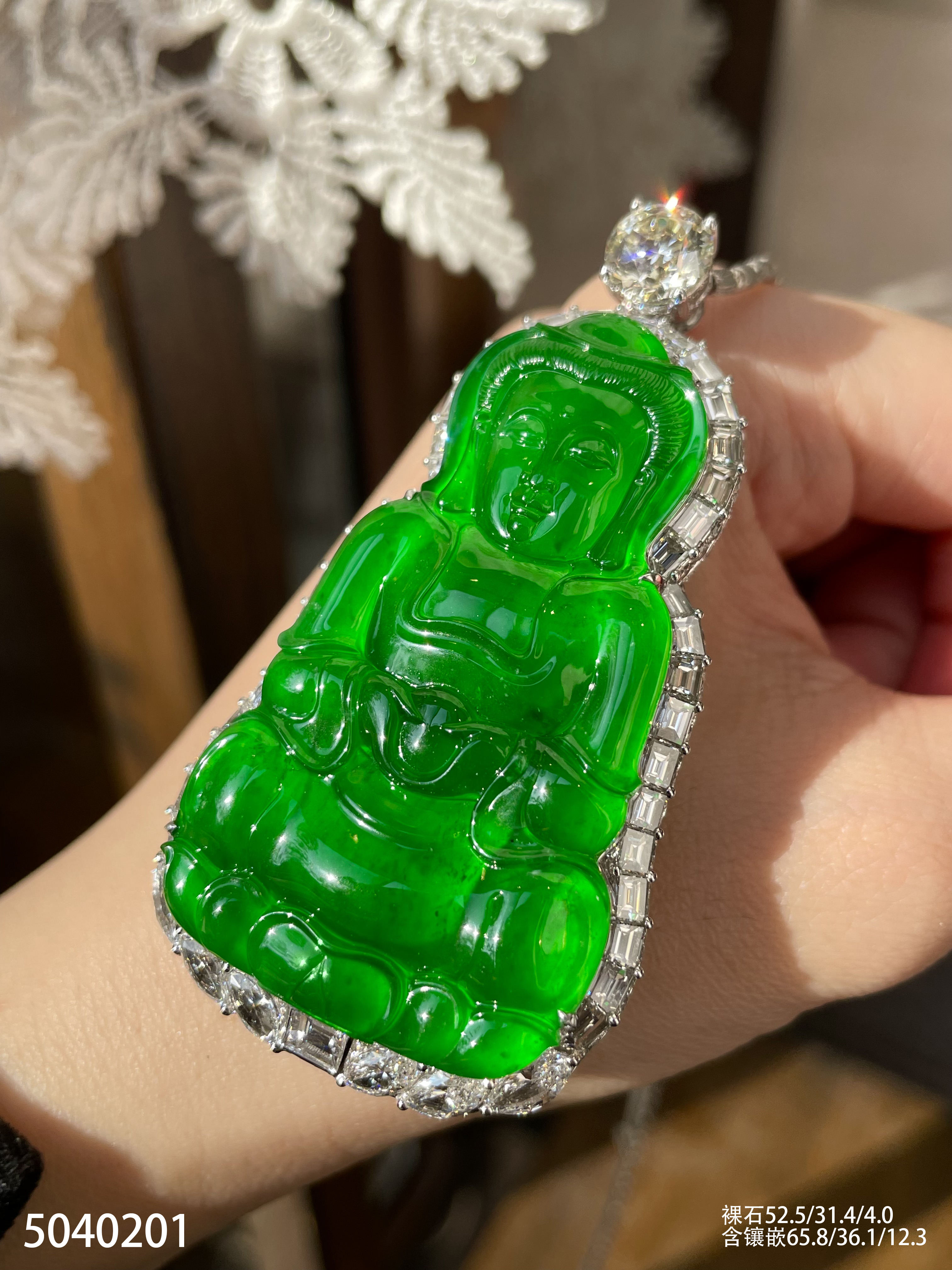老坑玻璃种帝王绿观音吊坠【5040201】具体价格微信咨询