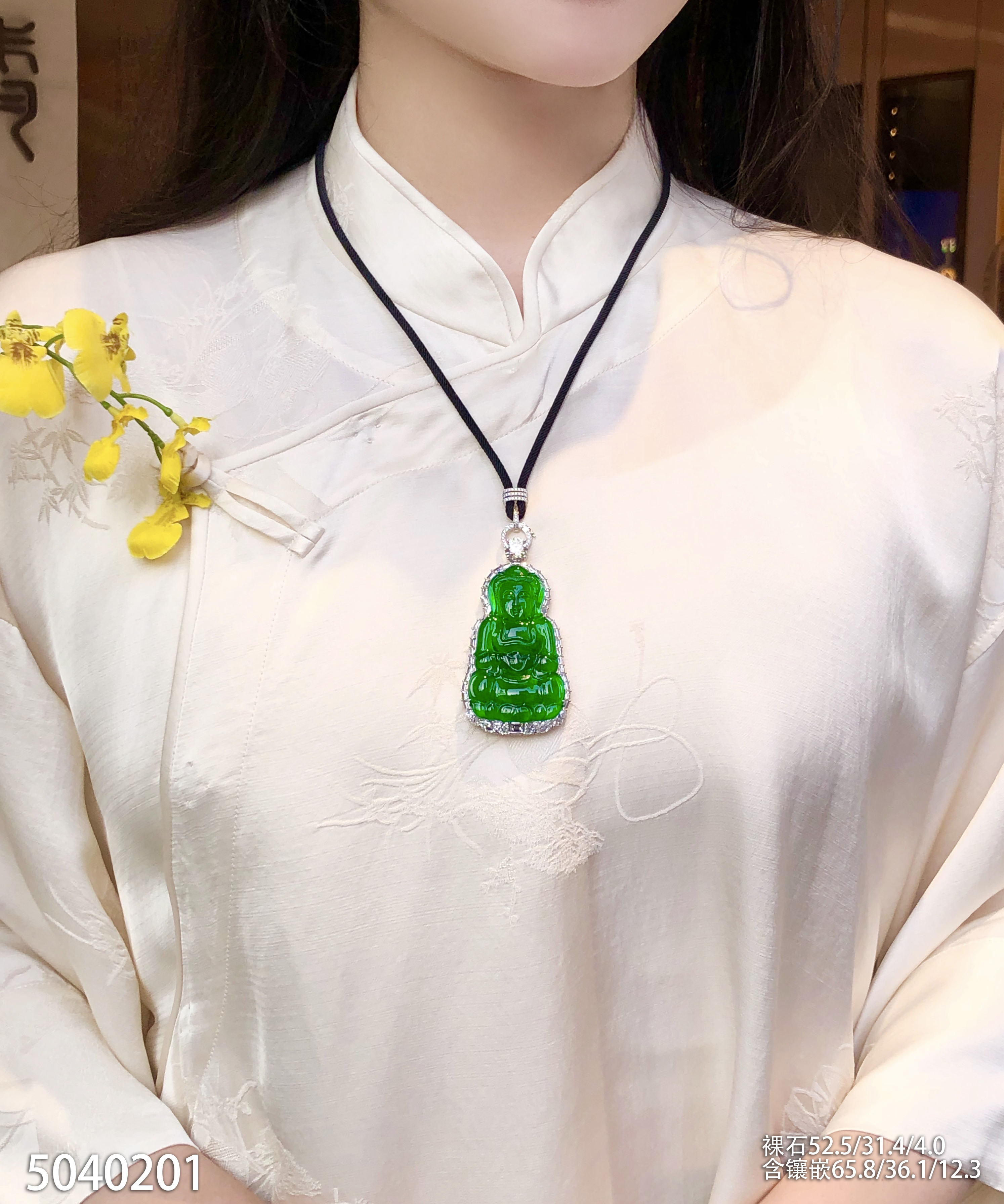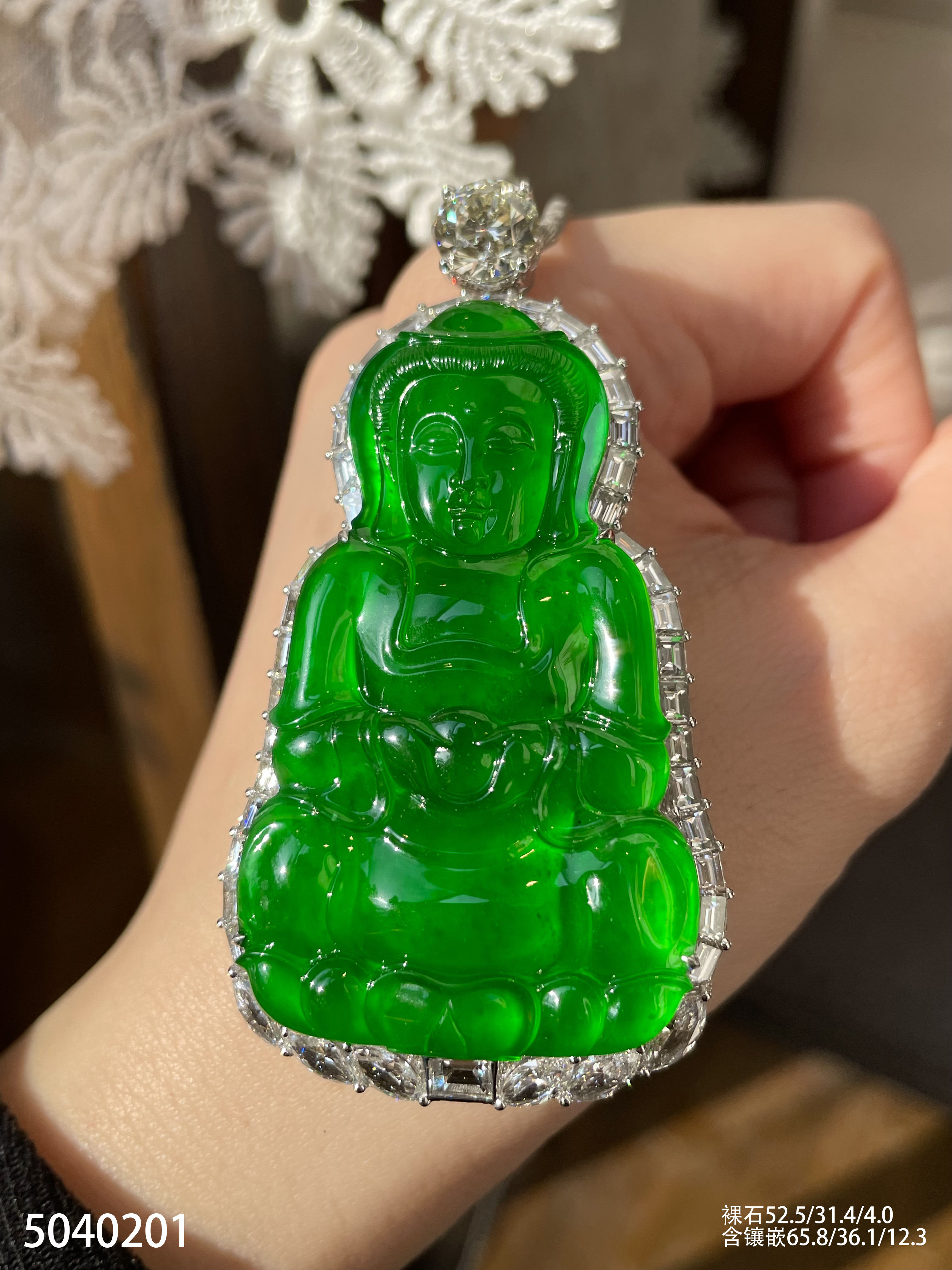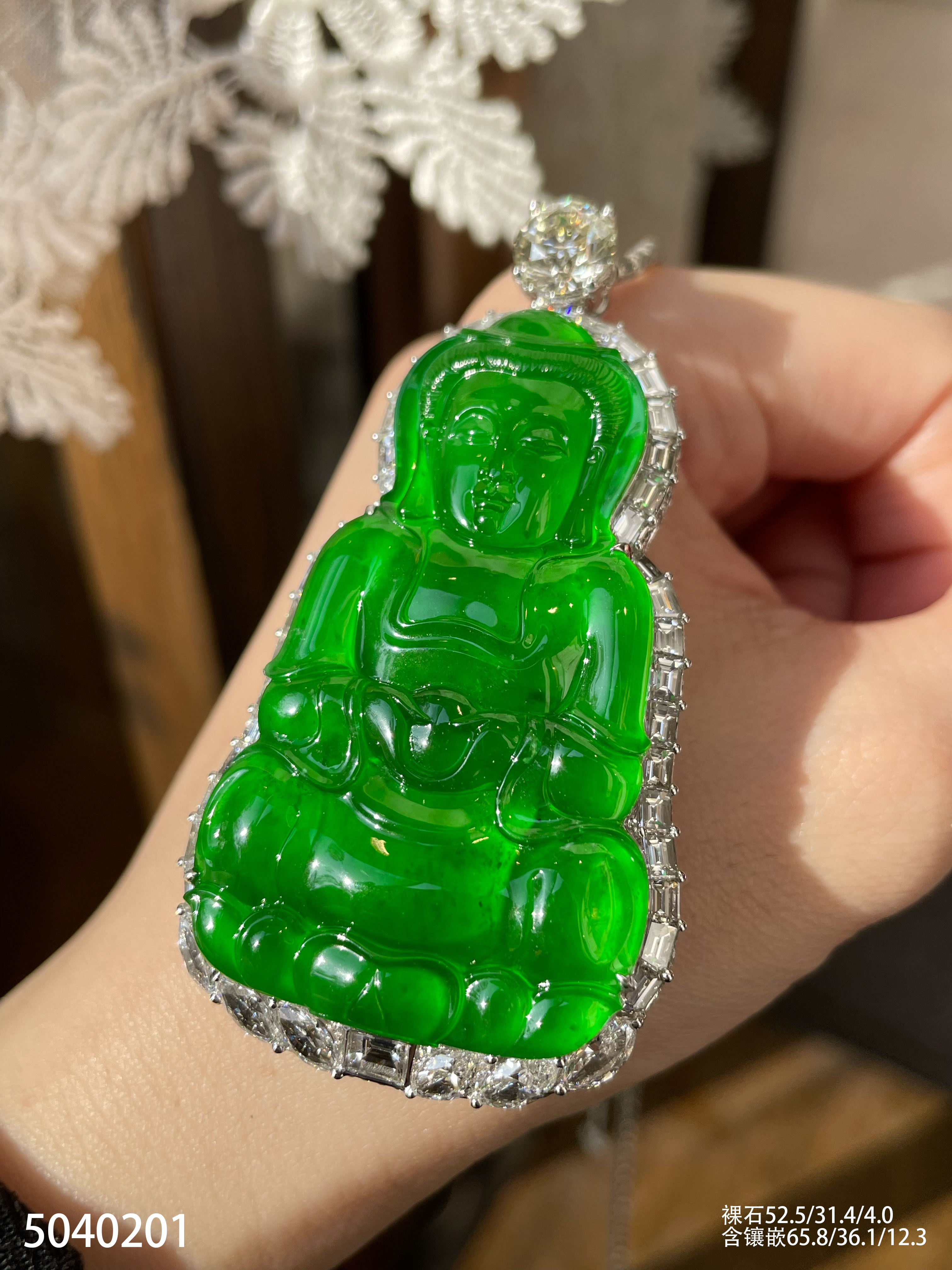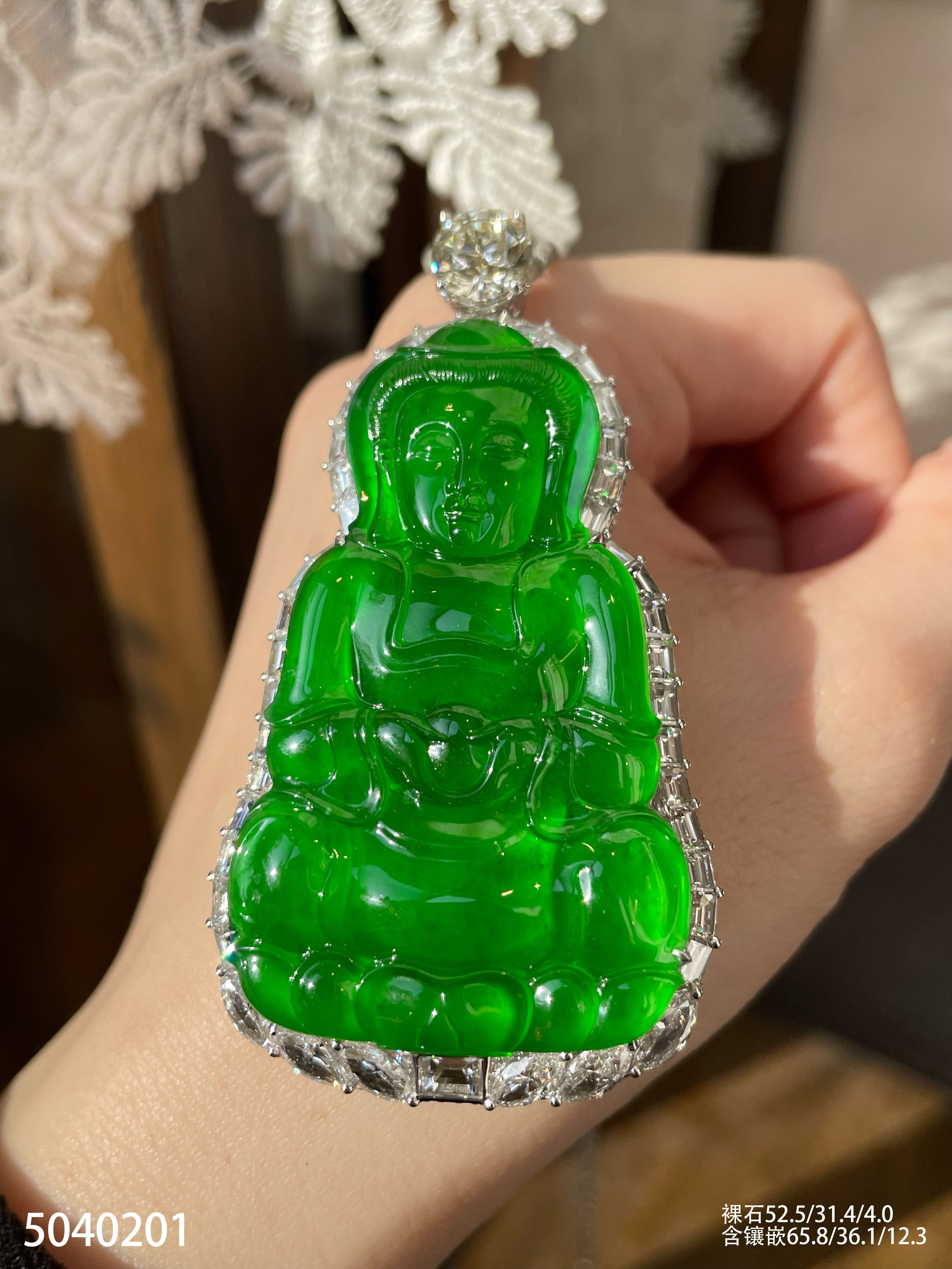 老坑玻璃种帝王绿观音吊坠【5040201】具体价格微信咨询