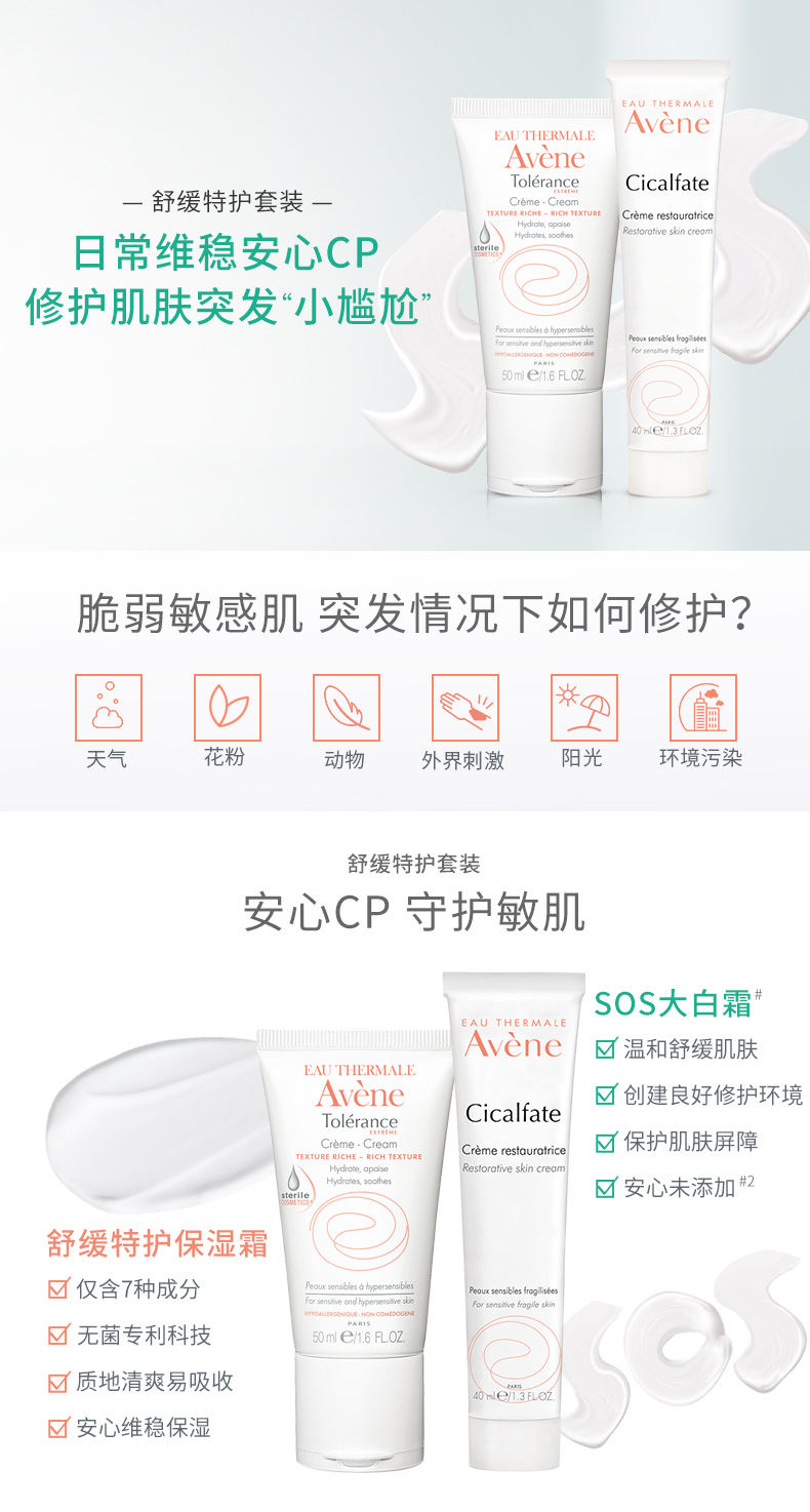 【双11会员专属预售】雅漾舒缓特护保湿霜50ml敏感肌补水舒缓肌肤JPY带授权招加盟代理