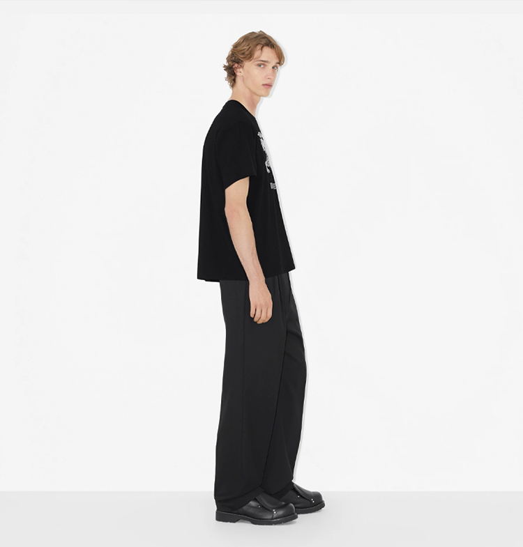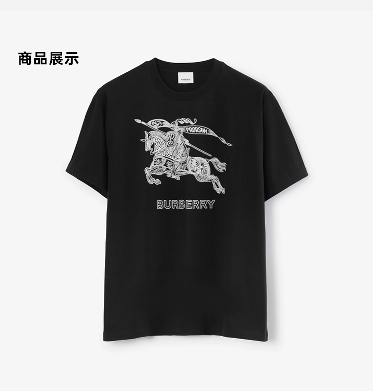 BURBERRY 巴宝莉 男士马术骑士刺绣棉质圆领短袖T恤 黑色 8072775 A1189