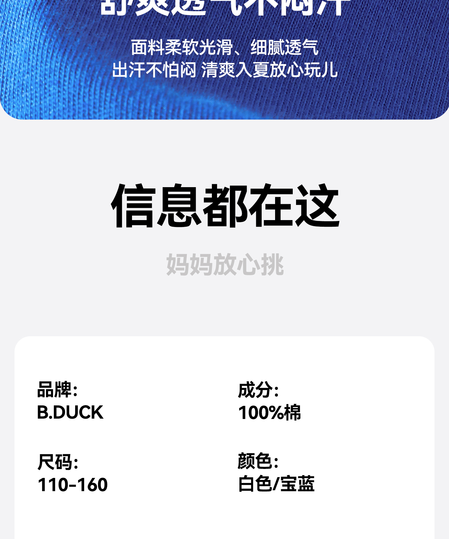 B.Duck小黄鸭童装夏季男女童短T恤110-160 BF2501980