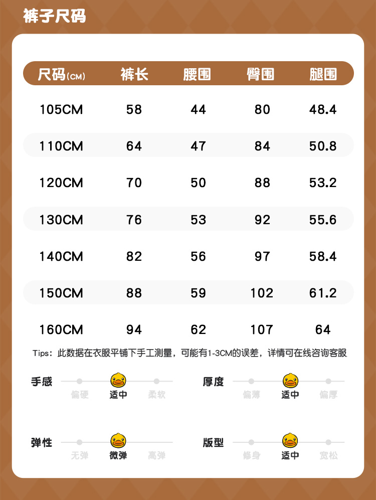 B.Duck小黄鸭儿童春秋新款男女童时髦工装裤休闲宽松105-150 BF3557097