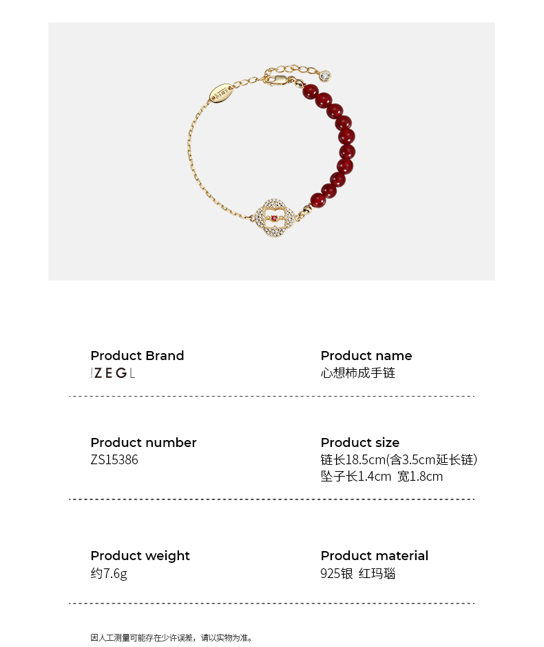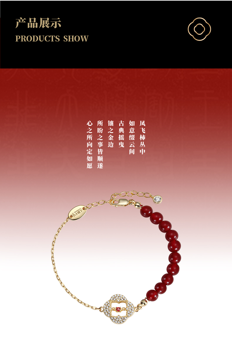 ZEGL 故宫宫廷文化十殿下925银玛瑙柿柿如意手链女生饰品毕业礼物