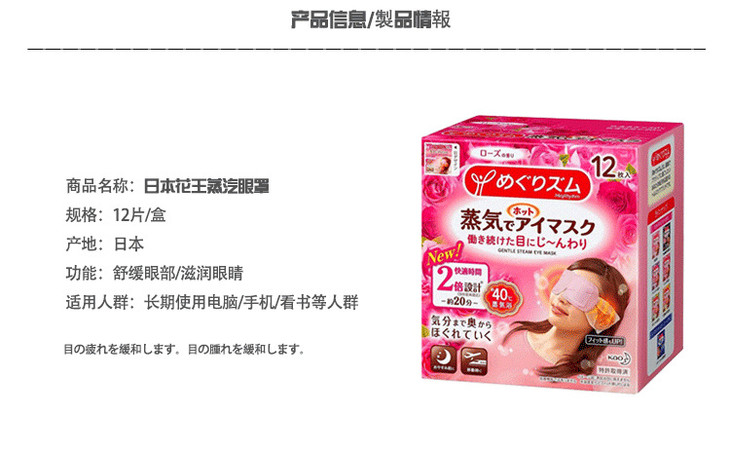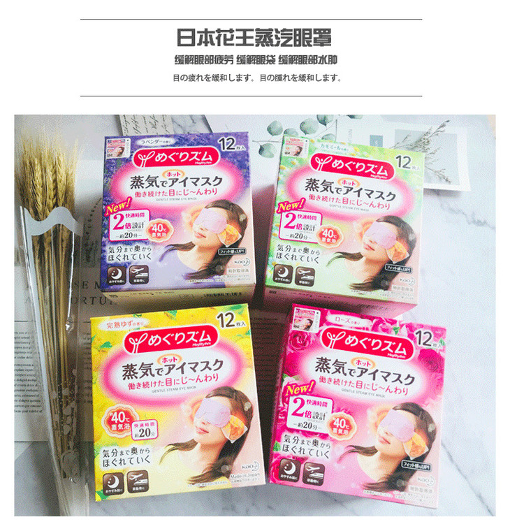 (超值)日本花王蒸气眼罩护眼助眠热敷眼膜去黑眼圈舒缓眼部疲劳眼贴12片
