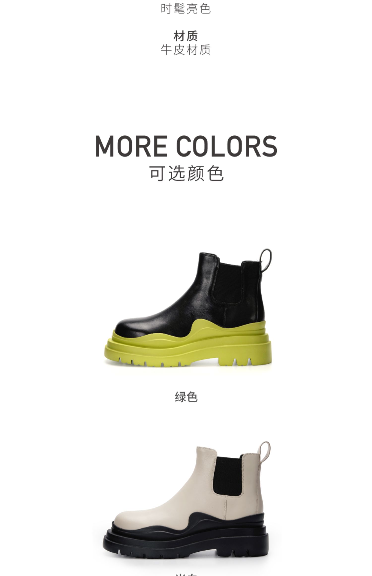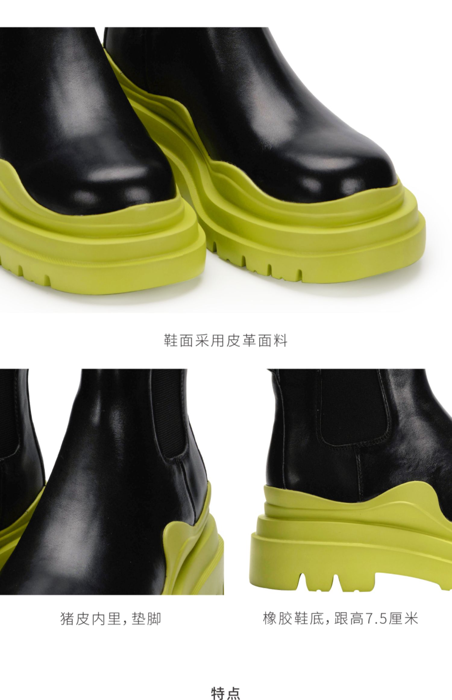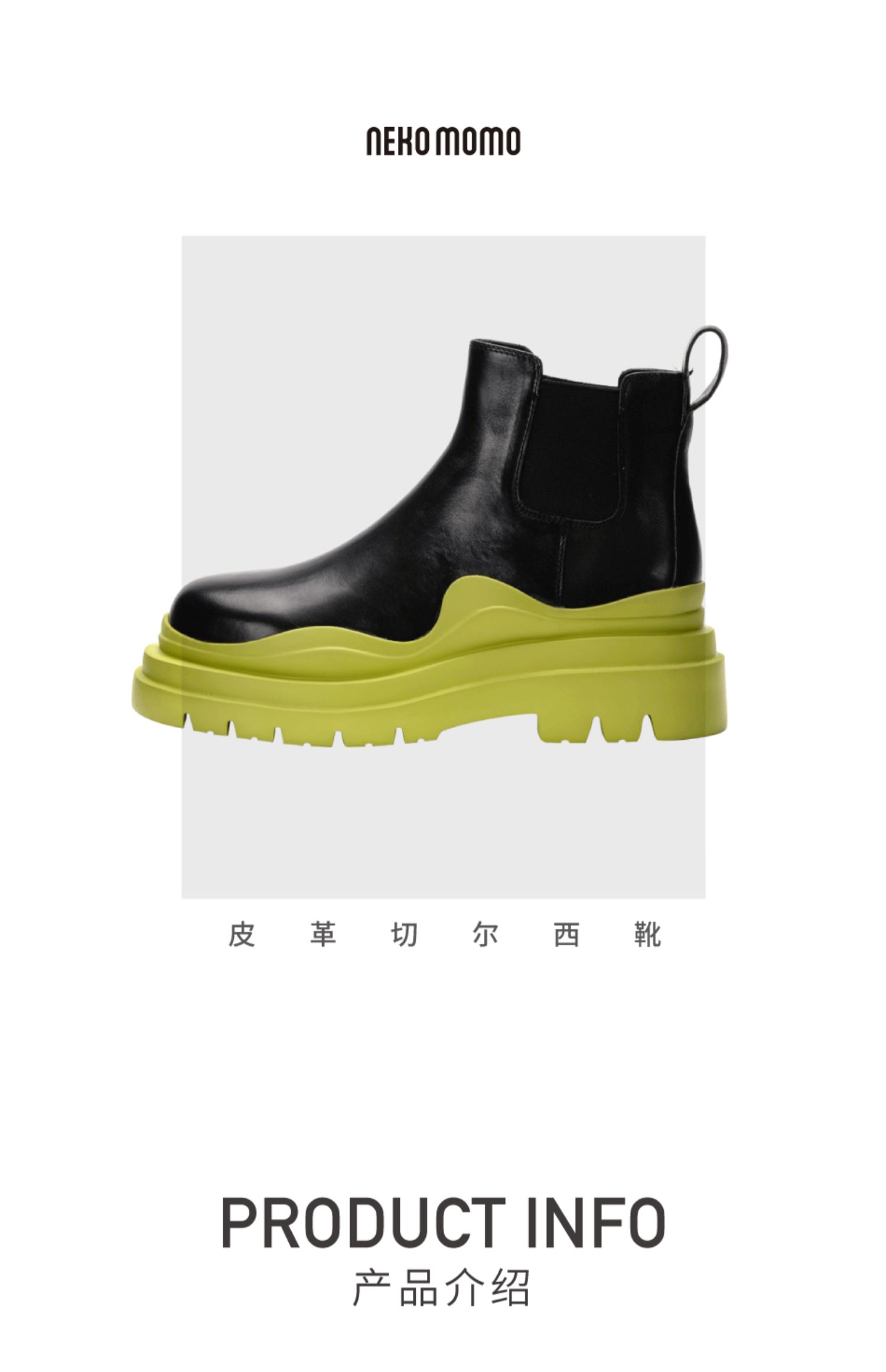nekomomo切尔西短靴女2022秋冬新款超轻厚底增高牛皮烟筒马丁靴M21DS44391