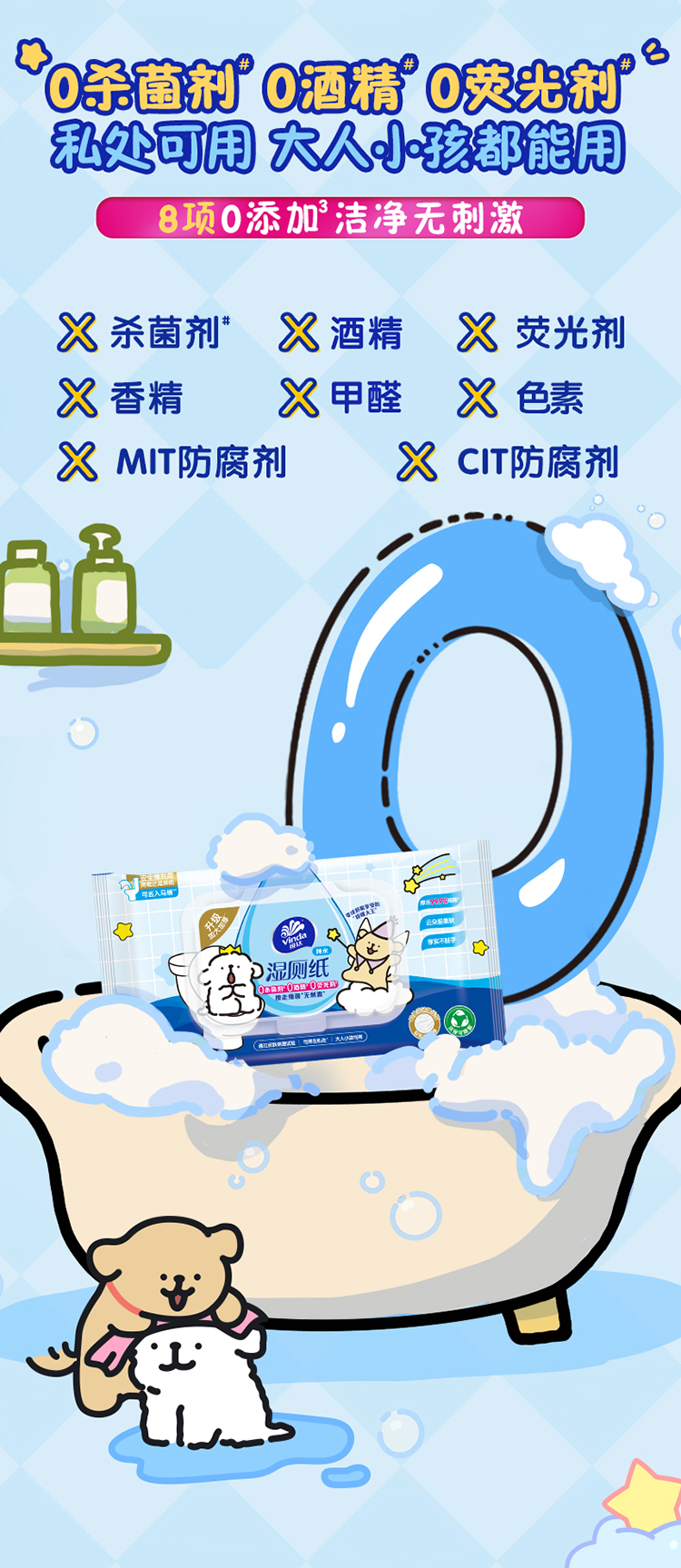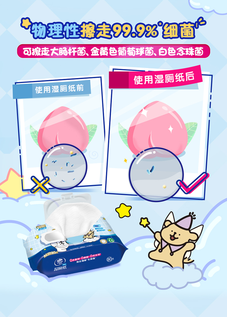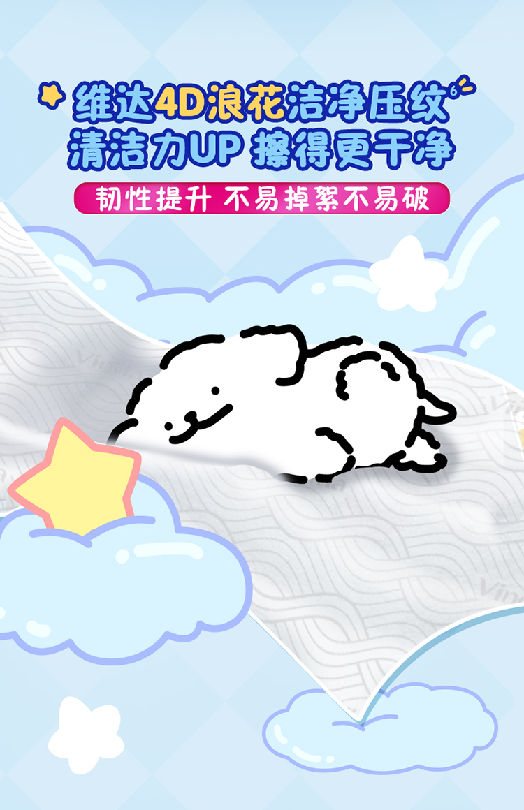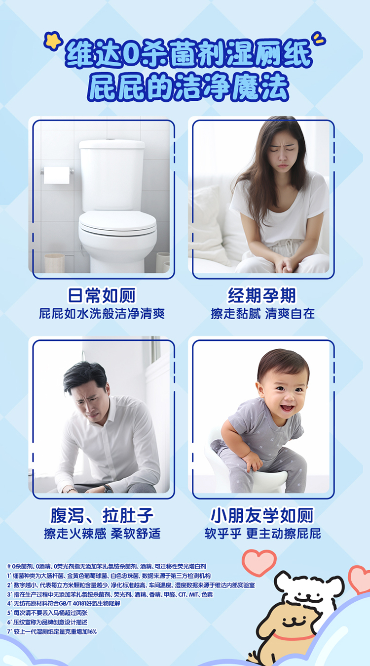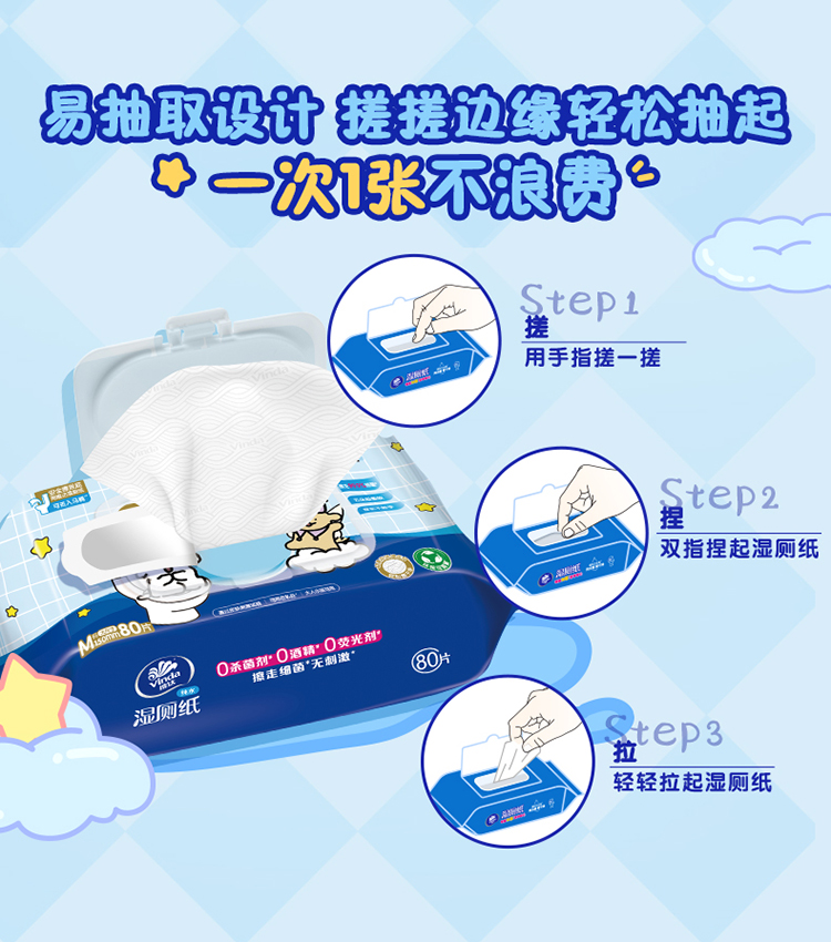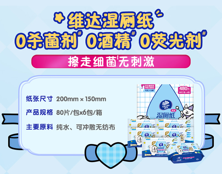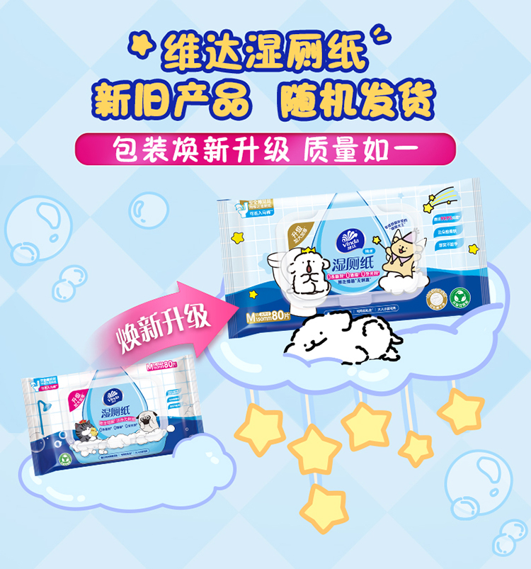 维达 线条小狗联名纯水湿厕纸80片6包 洁净安心 48小时发货