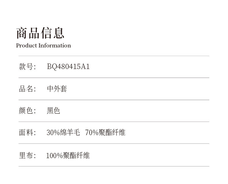 oldcolour欧珂冬季时尚气质宽松休闲通勤中外套女BQ480415A1