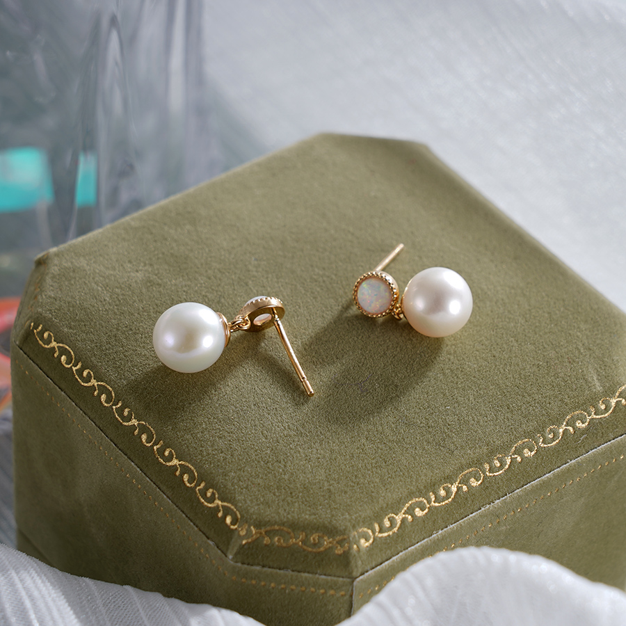 子佩集S925银珍珠耳钉【YE0808】纯银珍珠欧珀镀金2409