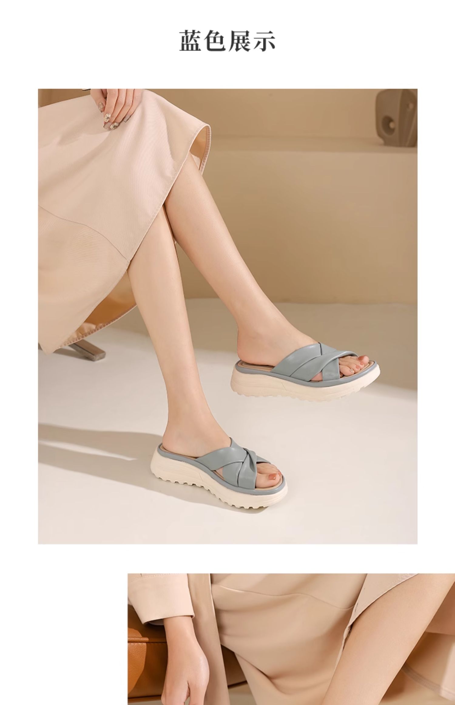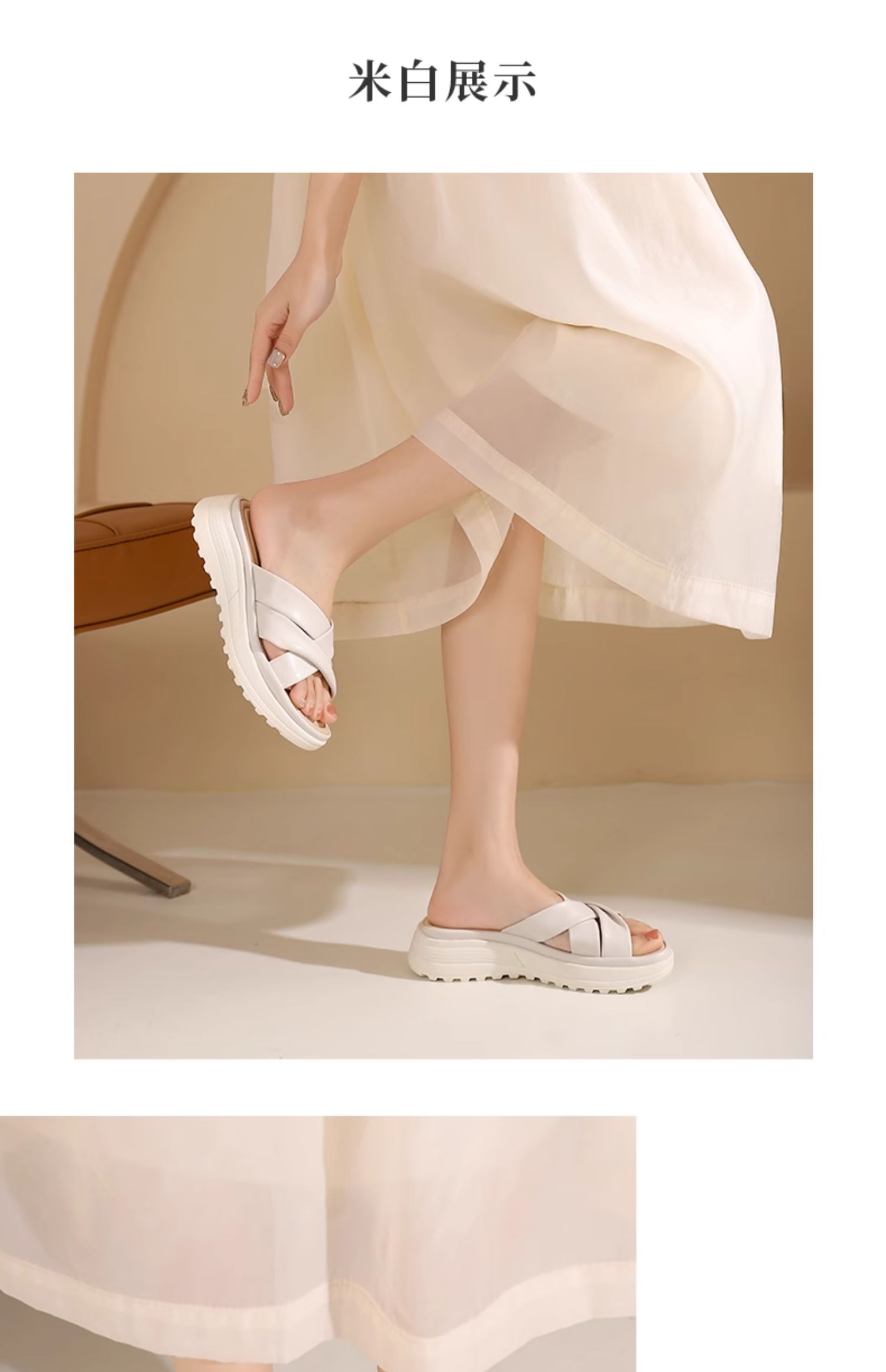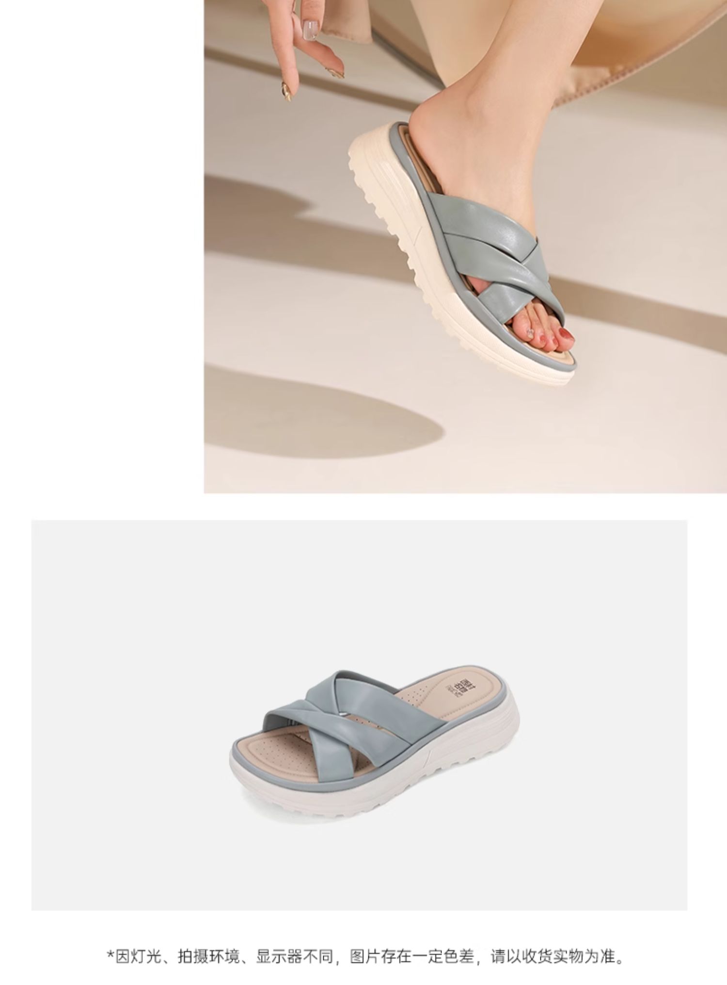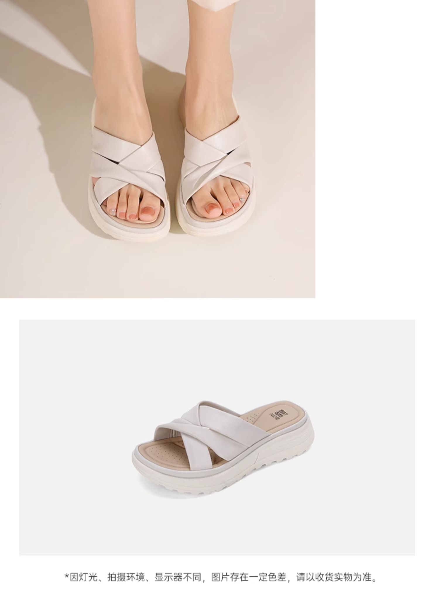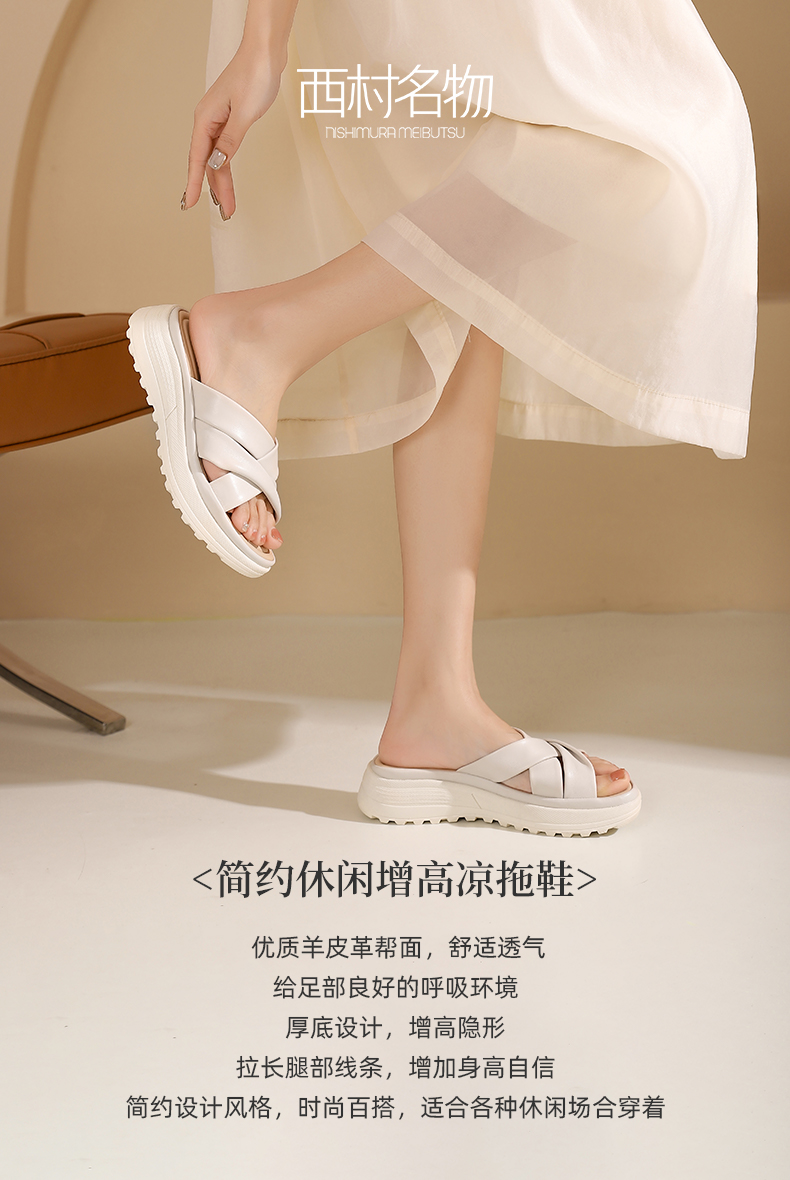 西村名物2024夏季新品真皮交叉绑带厚底拖鞋女凉拖鞋居家防滑外穿X24BJ20131