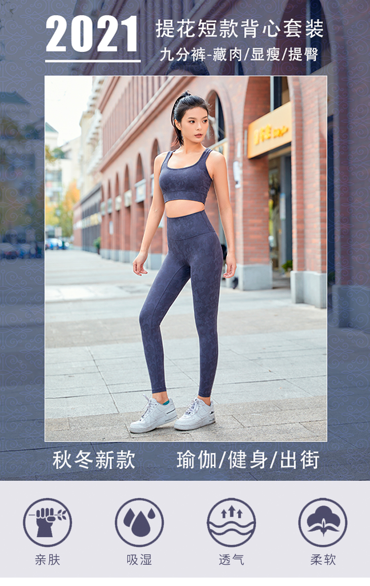 (不退不换)HaWaTa哈瓦塔棉感塑形提花上衣BRA高腰九分裤套装