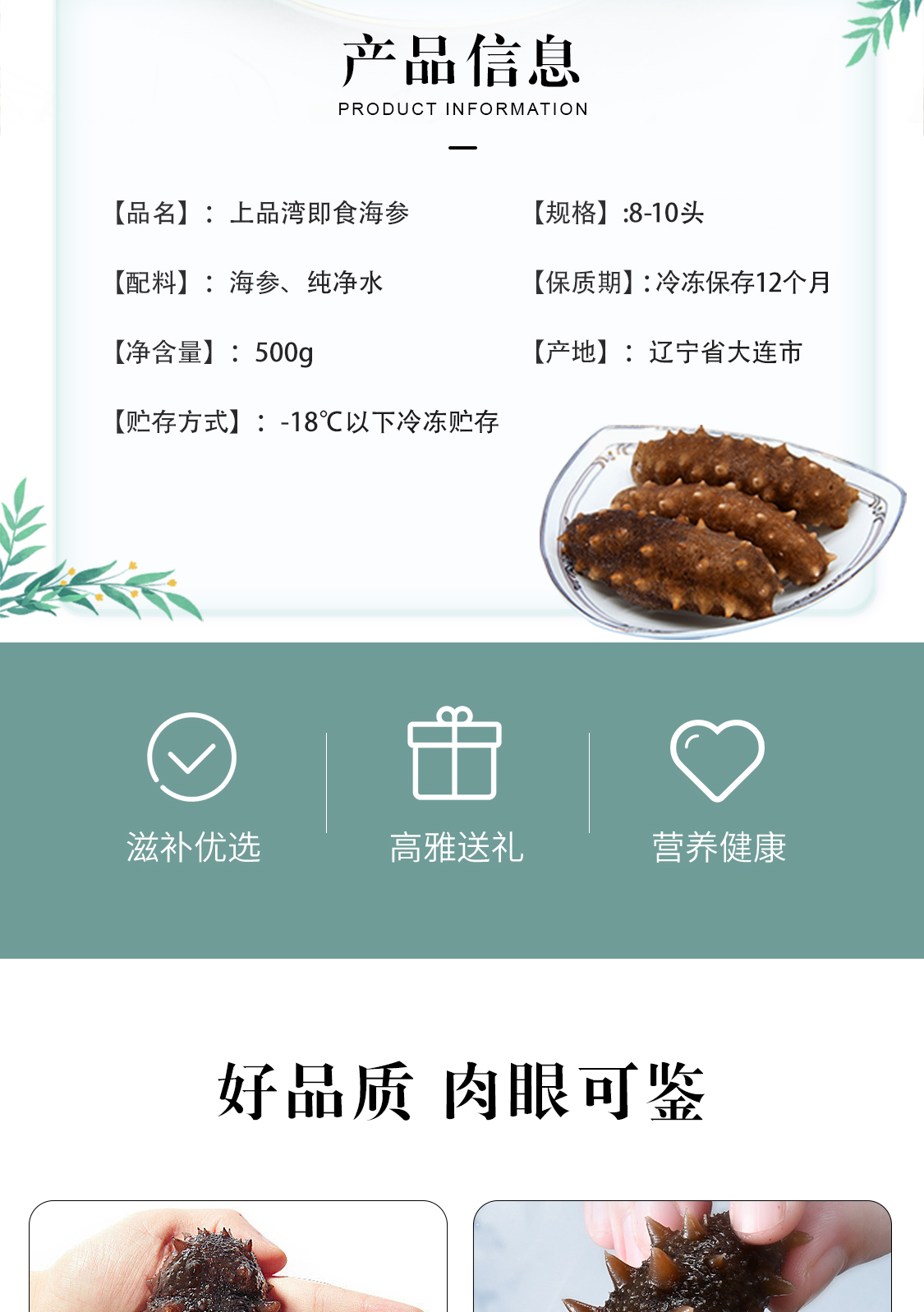 【北京卫视专享】辽宁大连国标二级密刺海参250g(30~40头) 500g(60~85头)礼盒装 即食海参500g/袋(8-10头) 500g/袋(12-16头)