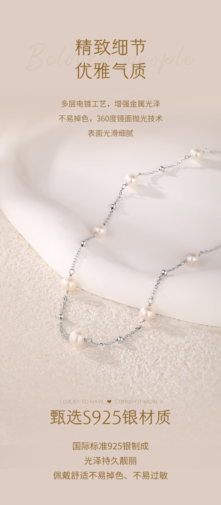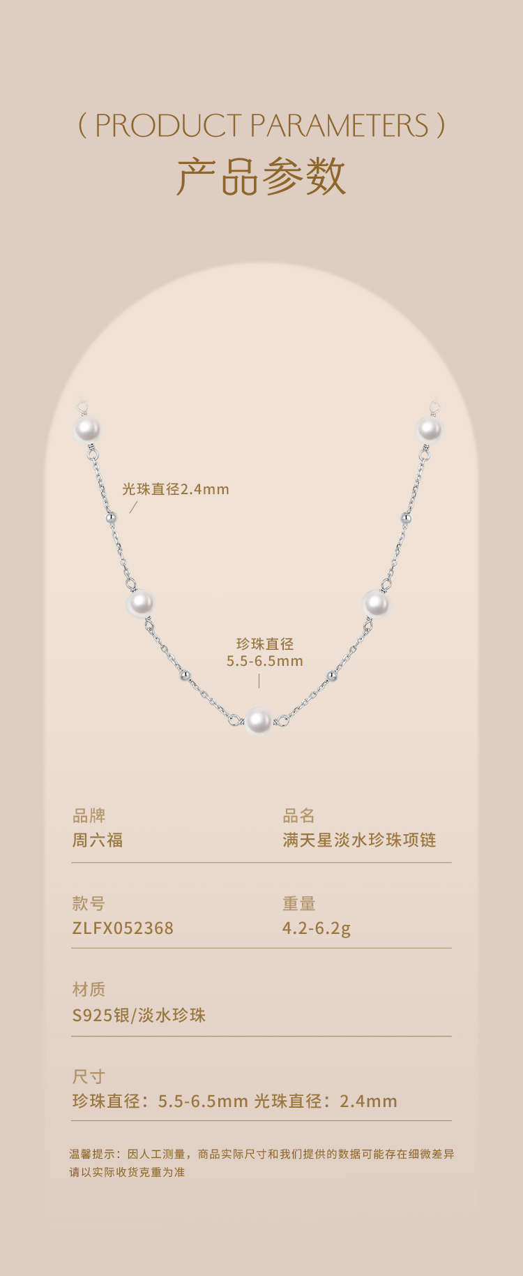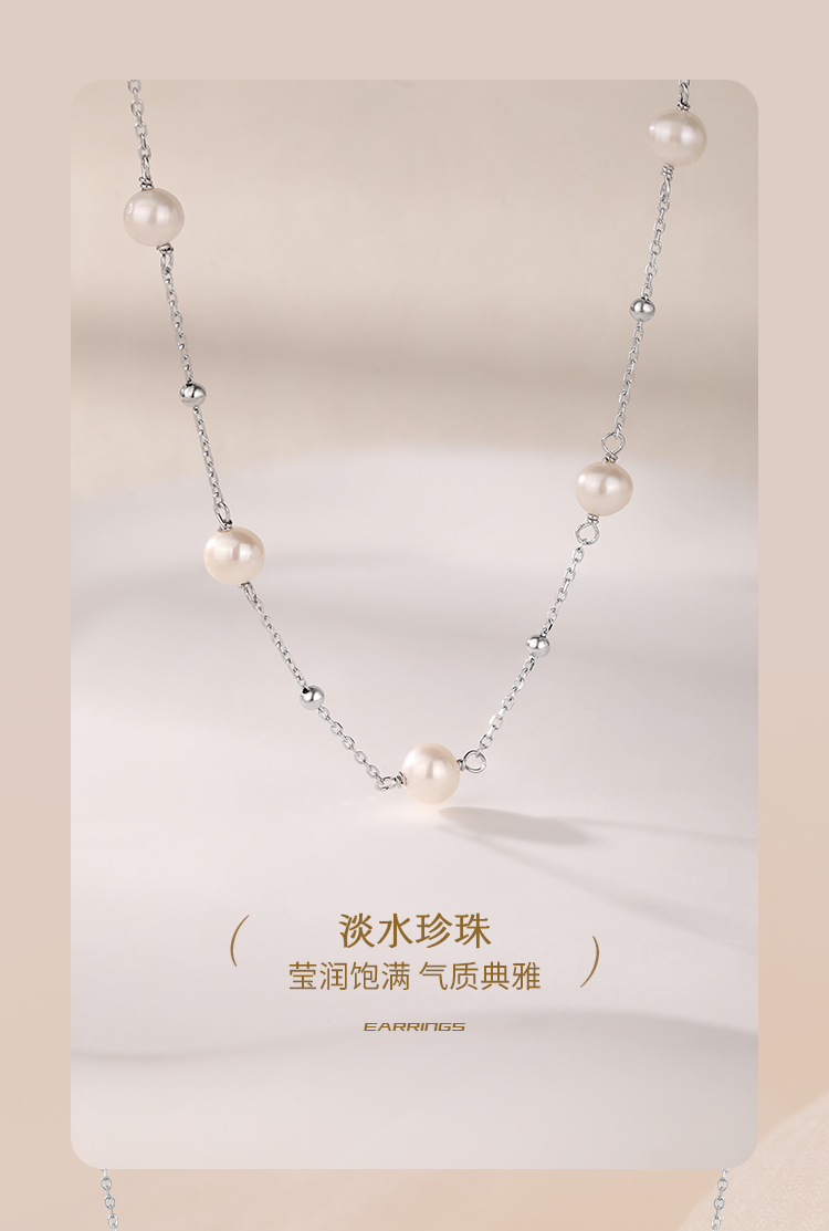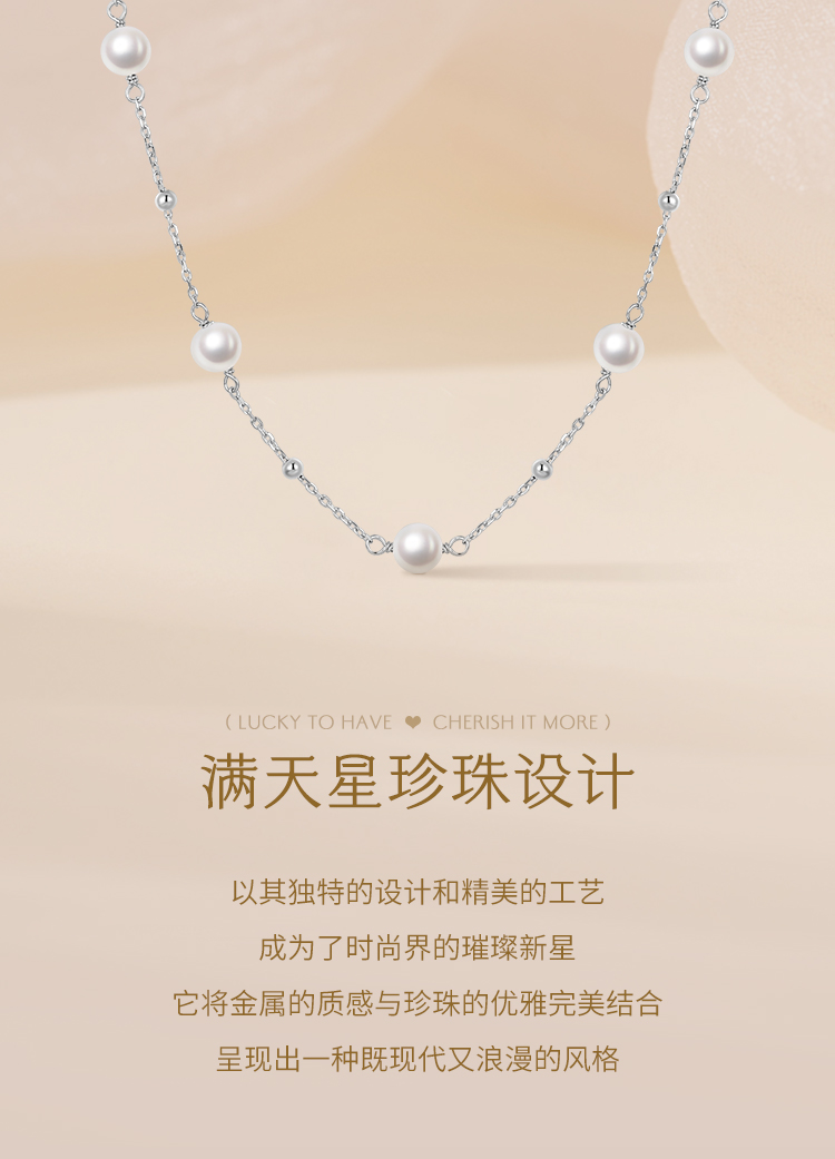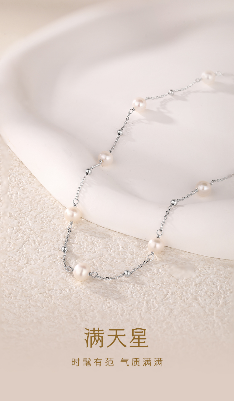 周六福S925银满天星淡水珍珠项链ZLFX052368★