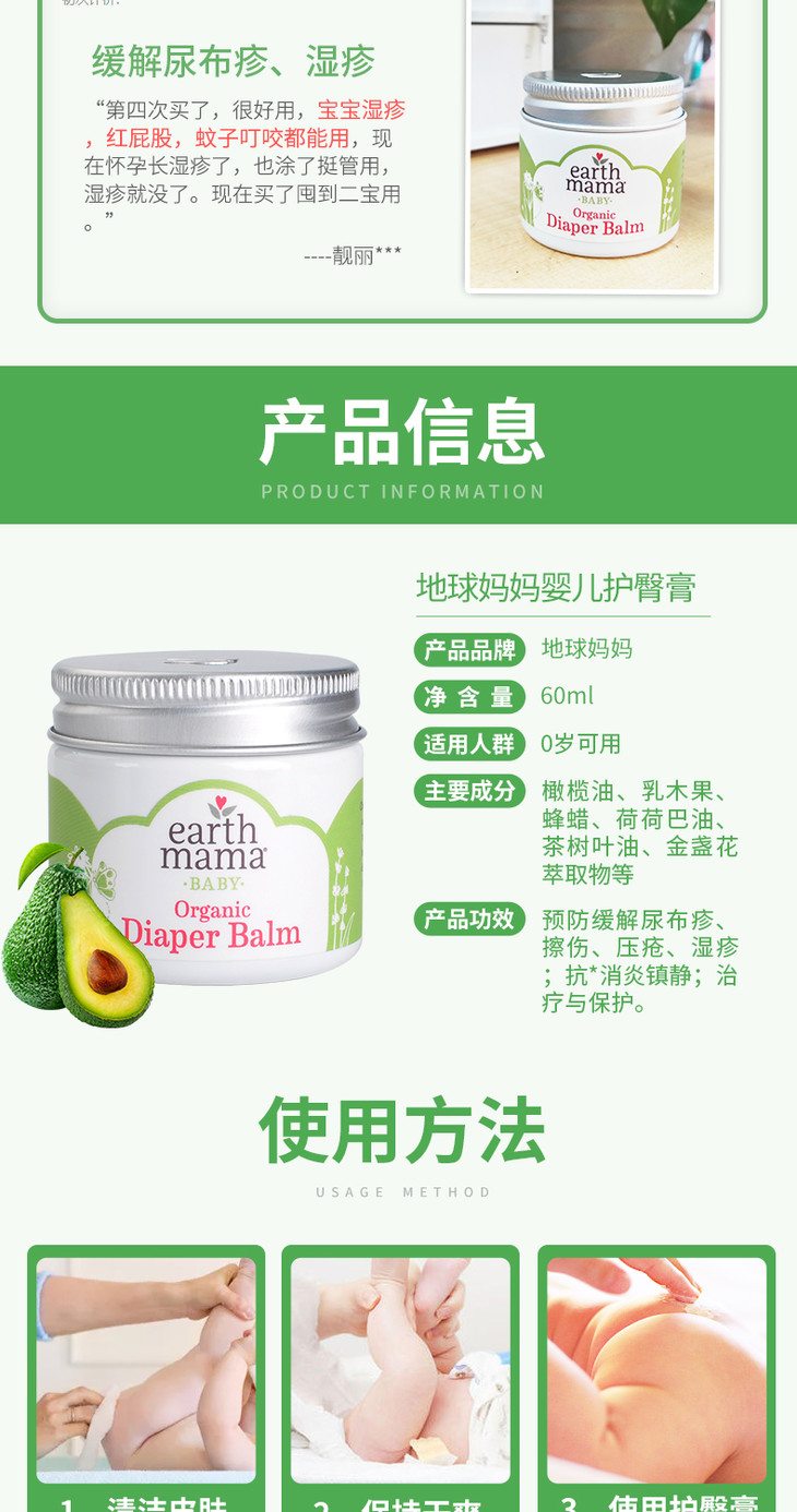 美国原装Earth Mama地球妈妈婴儿护臀膏(60ml)*(每单不能超过12件,超过不发)