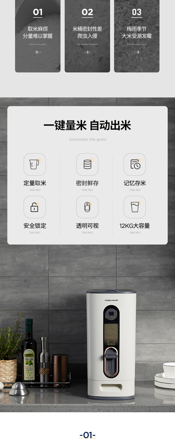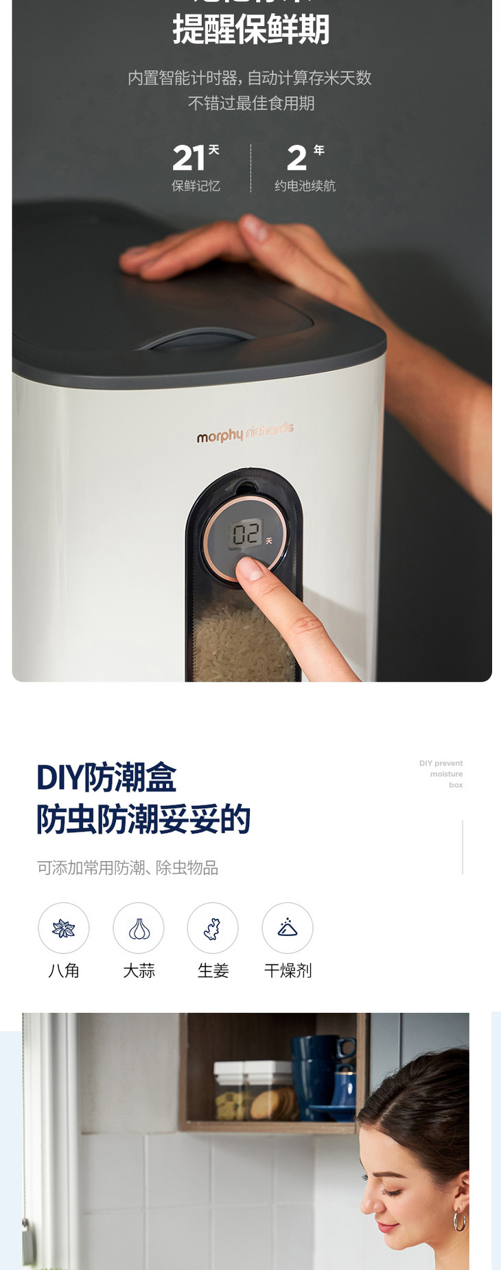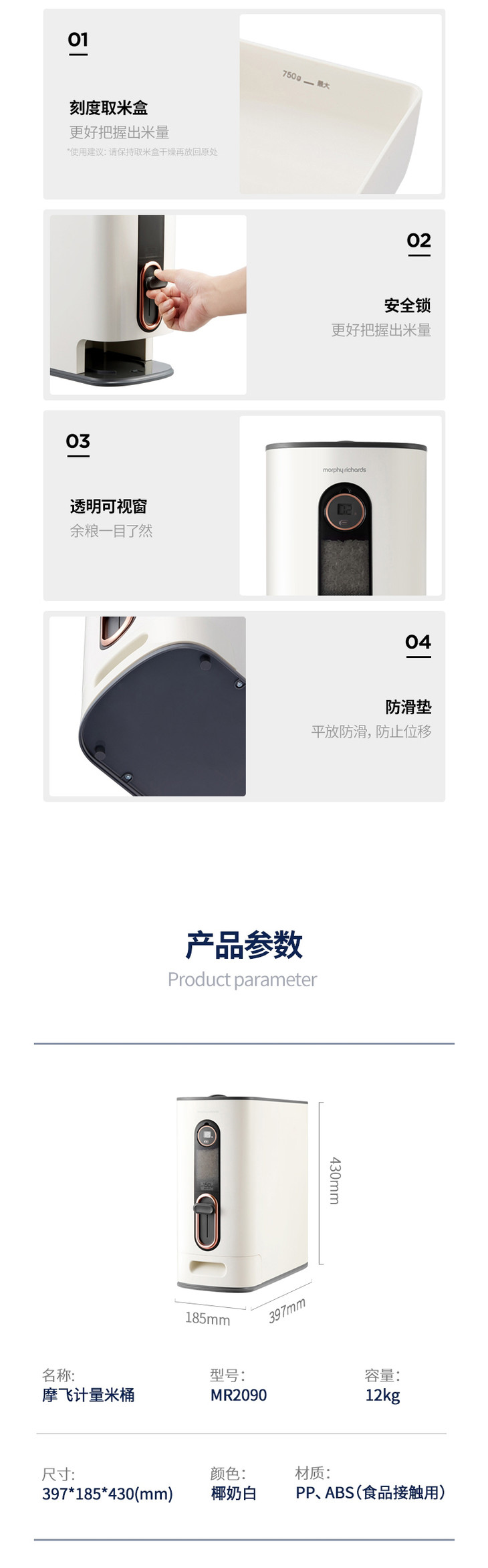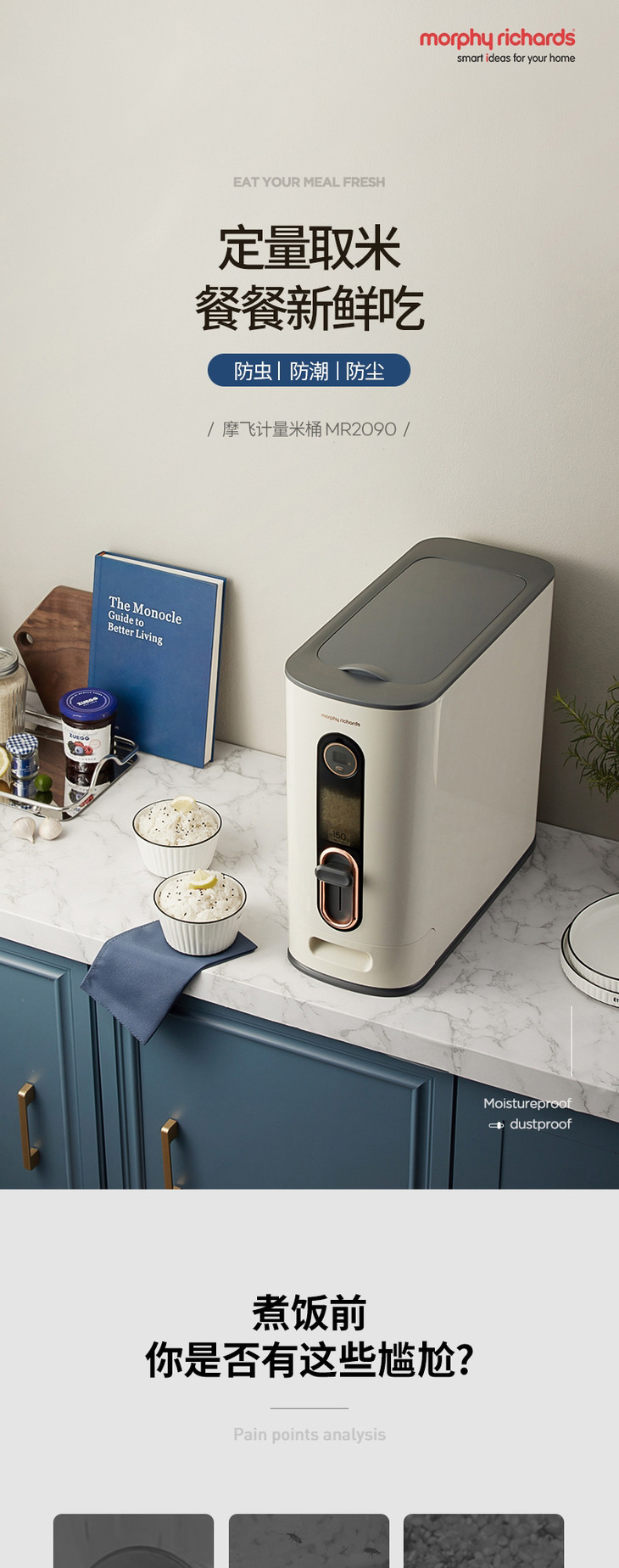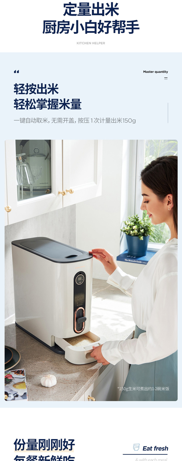 摩飞MR2090米桶家用防虫防潮密封储存罐计量米缸米箱12公斤装收纳盒带盖【摩飞系列】