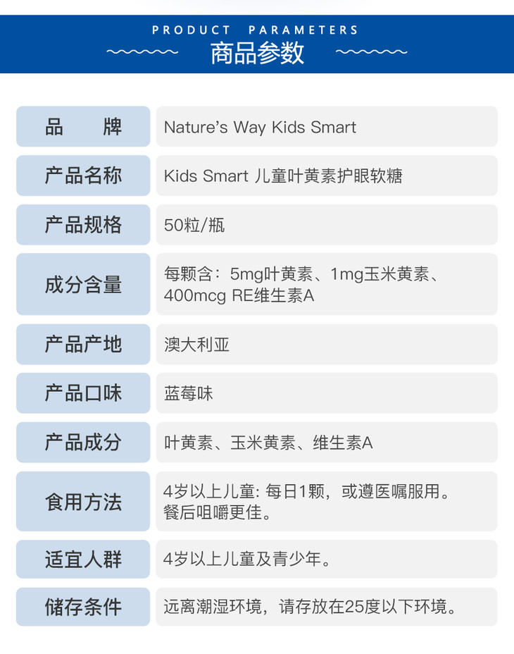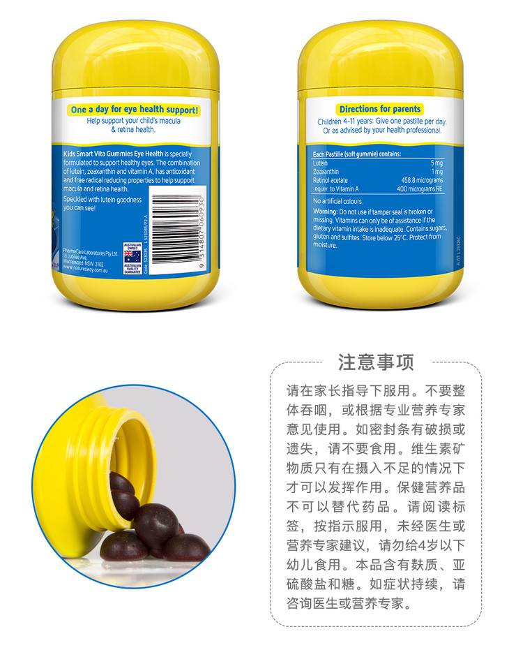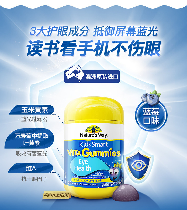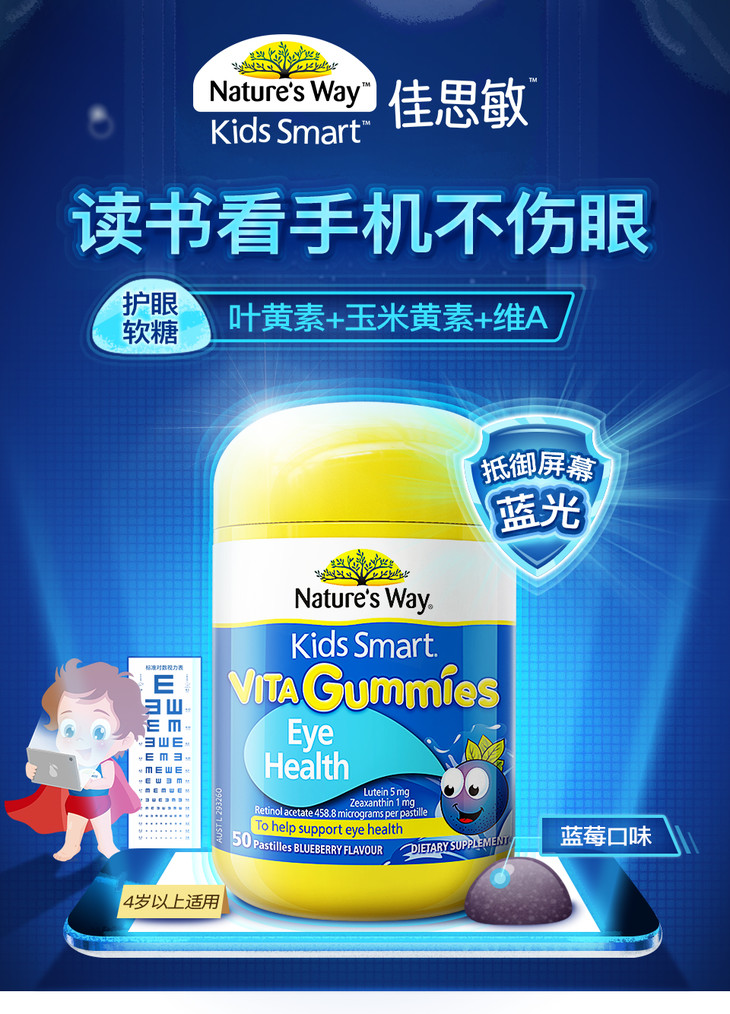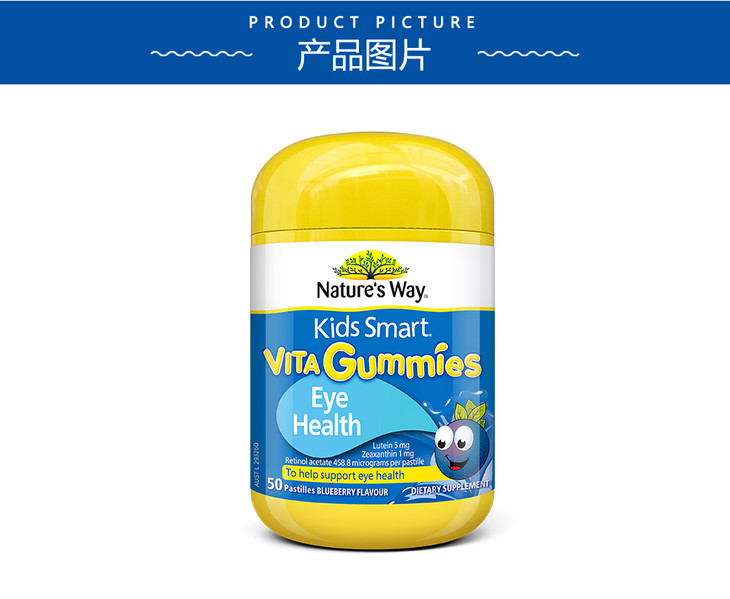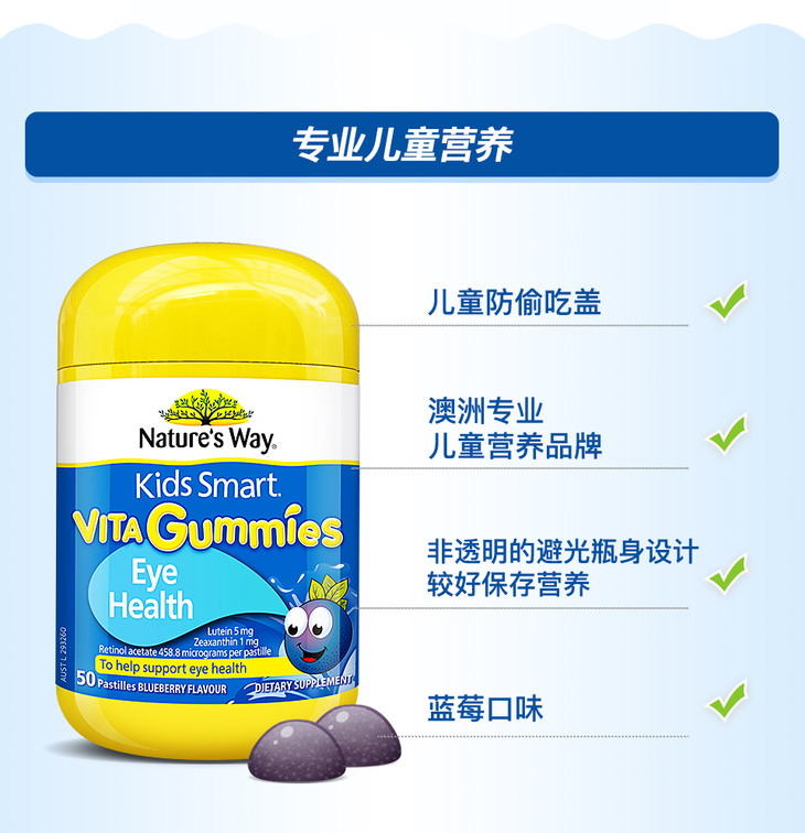澳洲Nature’sway佳思敏儿童叶黄素防蓝光护眼软糖50粒/瓶【2瓶装】