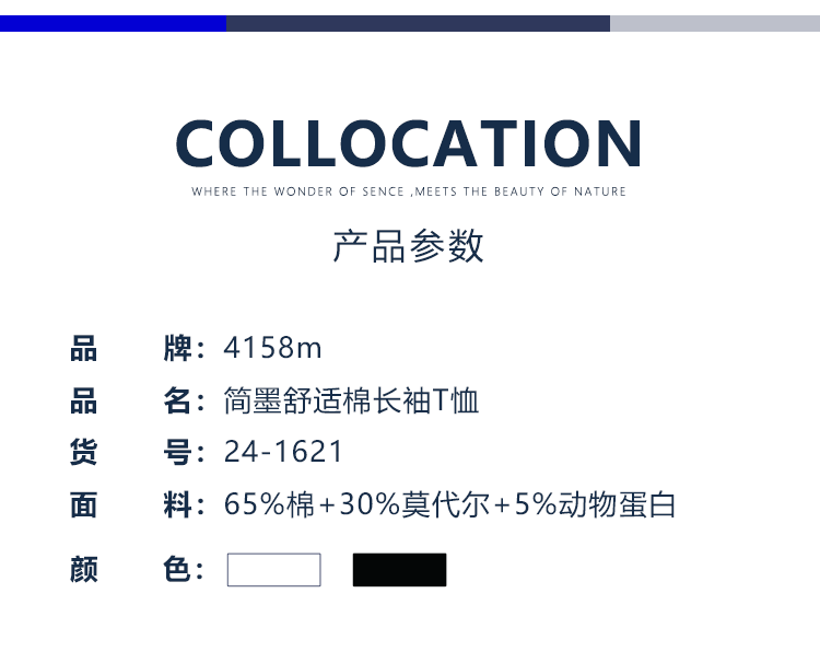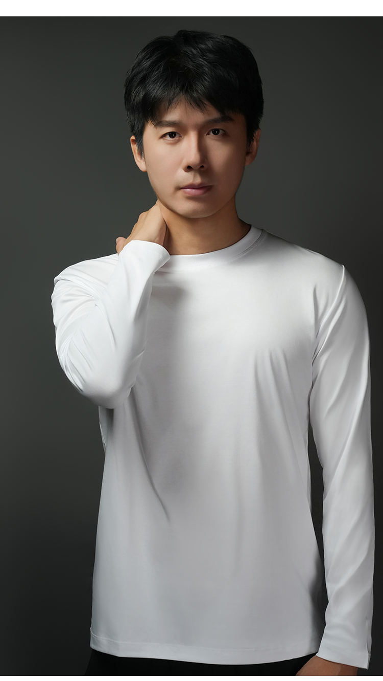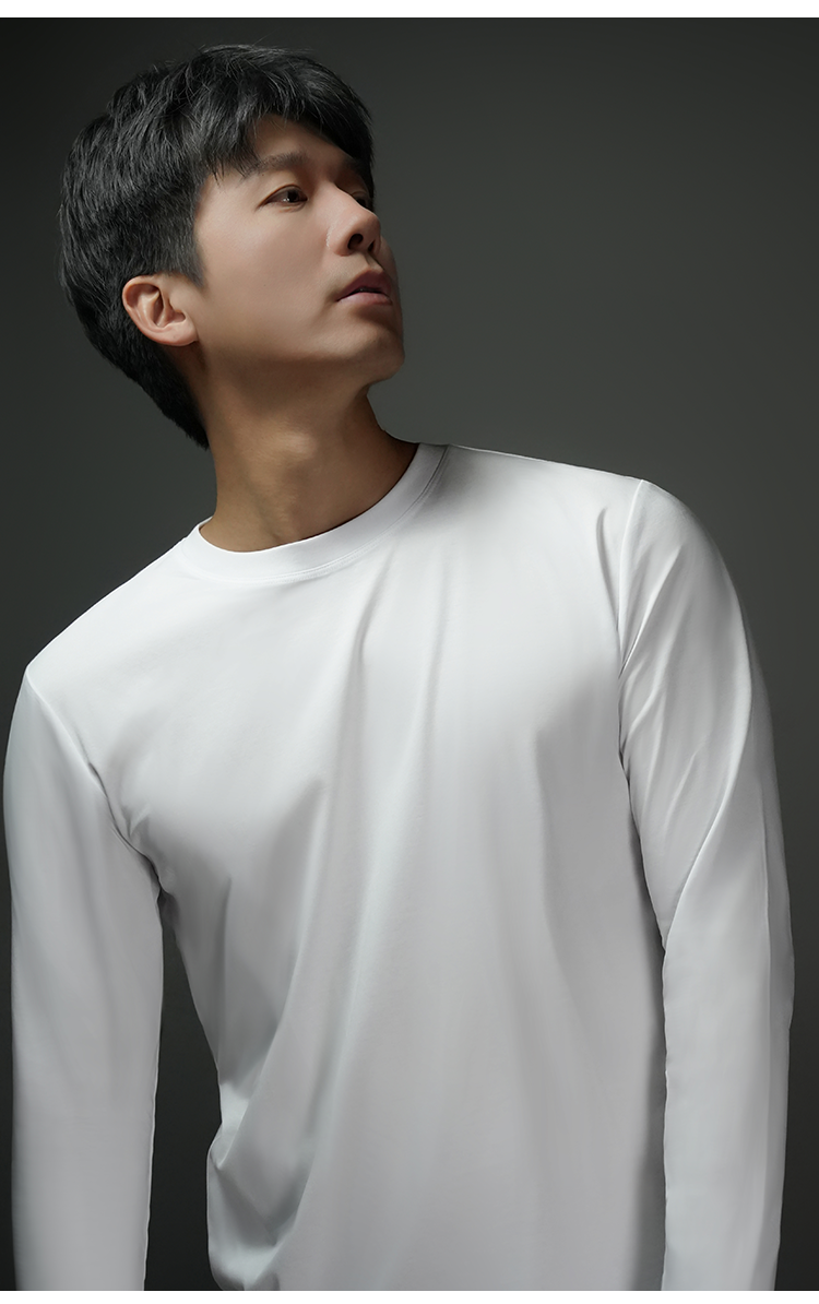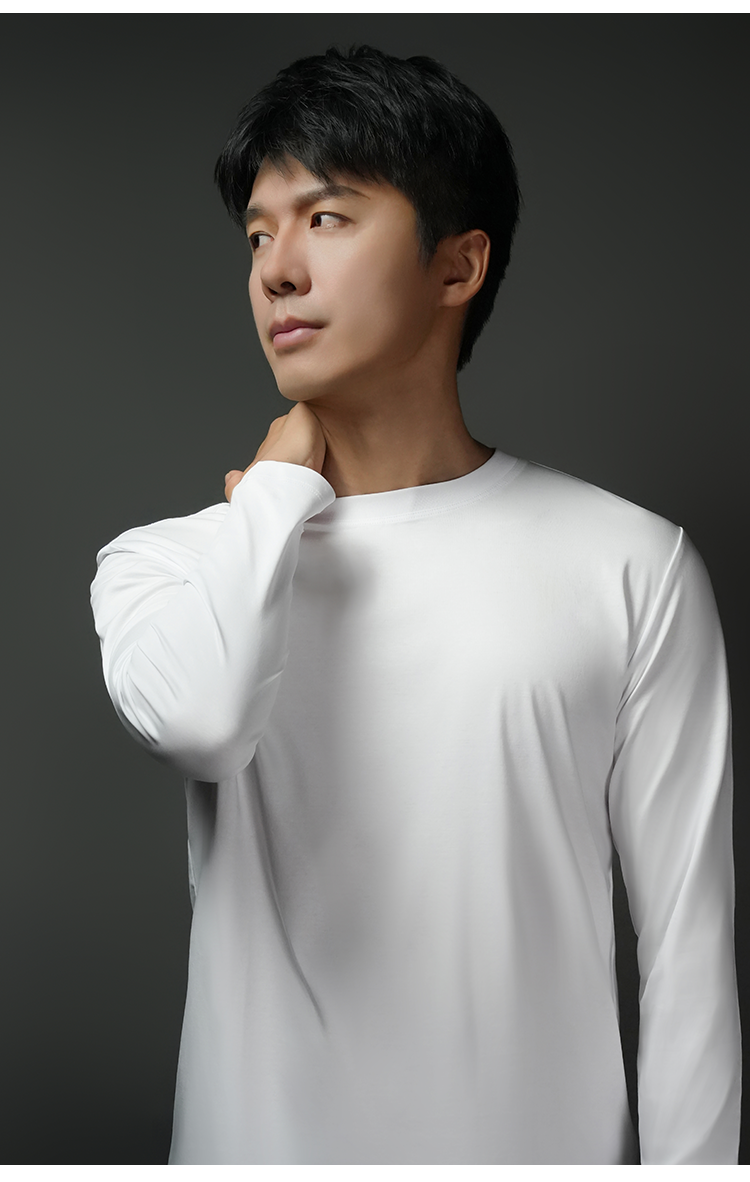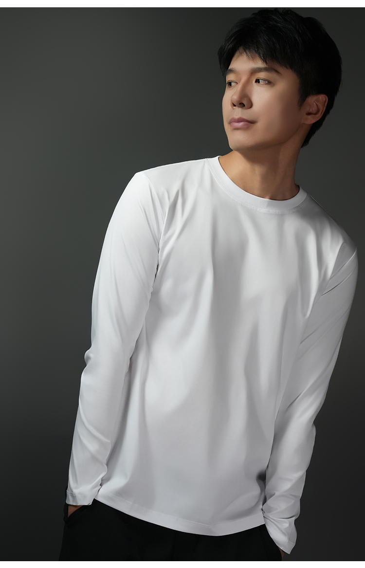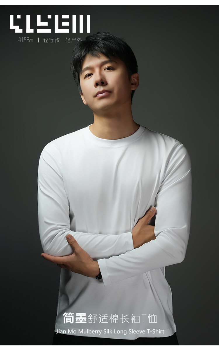 4158m轻户外轻行政 简墨桑蚕丝棉长袖T恤