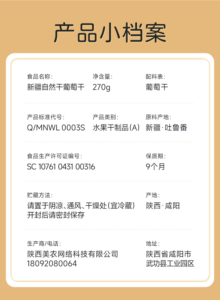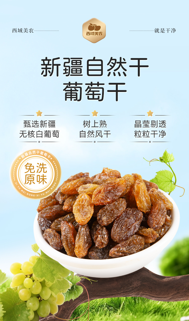 西域美农 新疆自然干葡萄干 树上熟 + 自然干(不暴晒、拒绝添加),无化学处理、保留天然葡萄清香 270g/ 罐