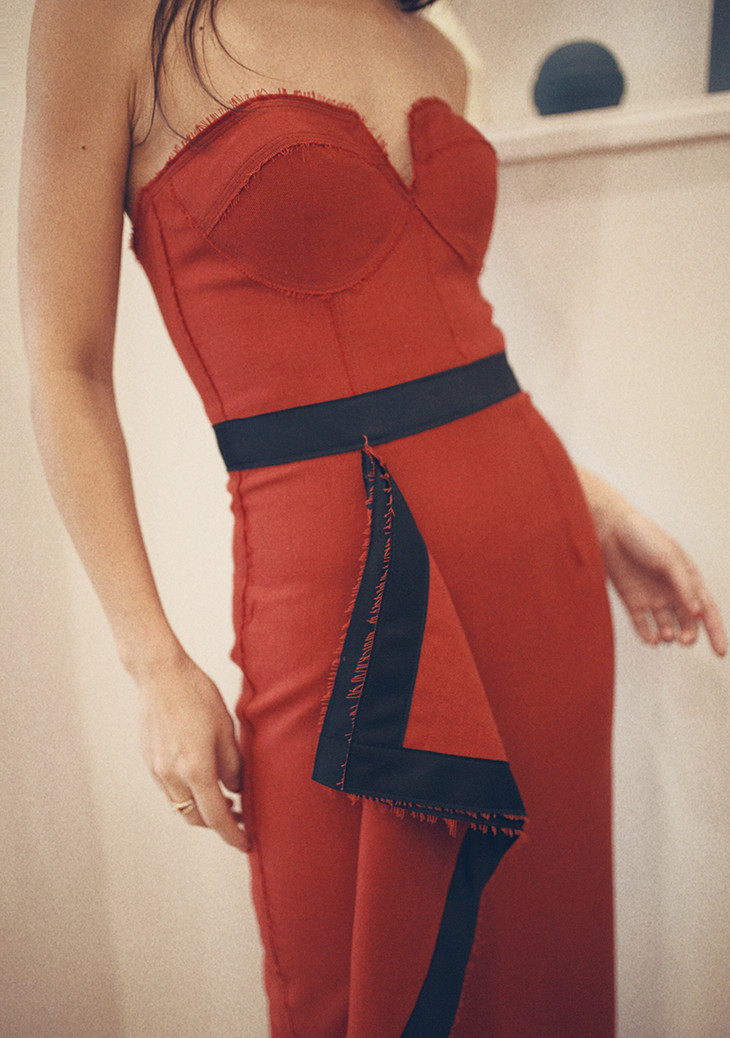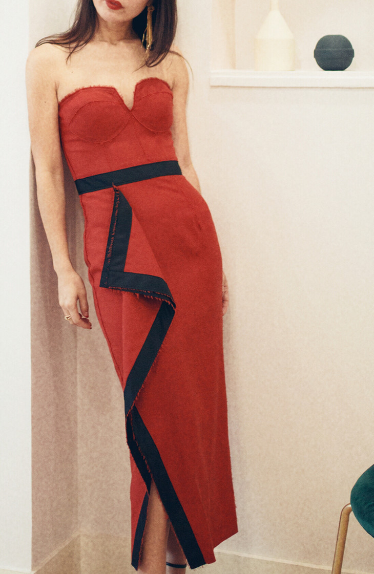 AtelierMissLu / Penelope 探戈橘黑边抹胸礼服