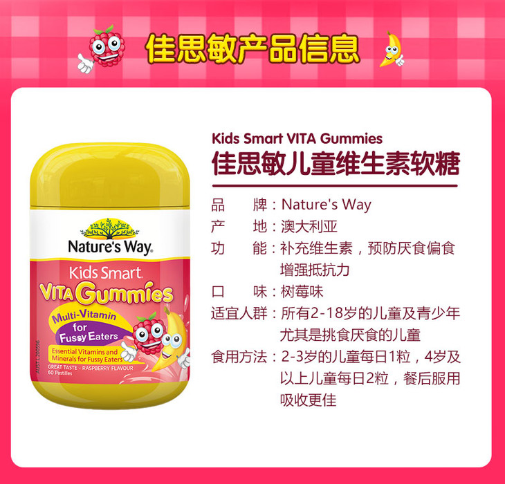 【保税仓】澳大利亚佳思敏儿童维生素软糖60粒 商品图0