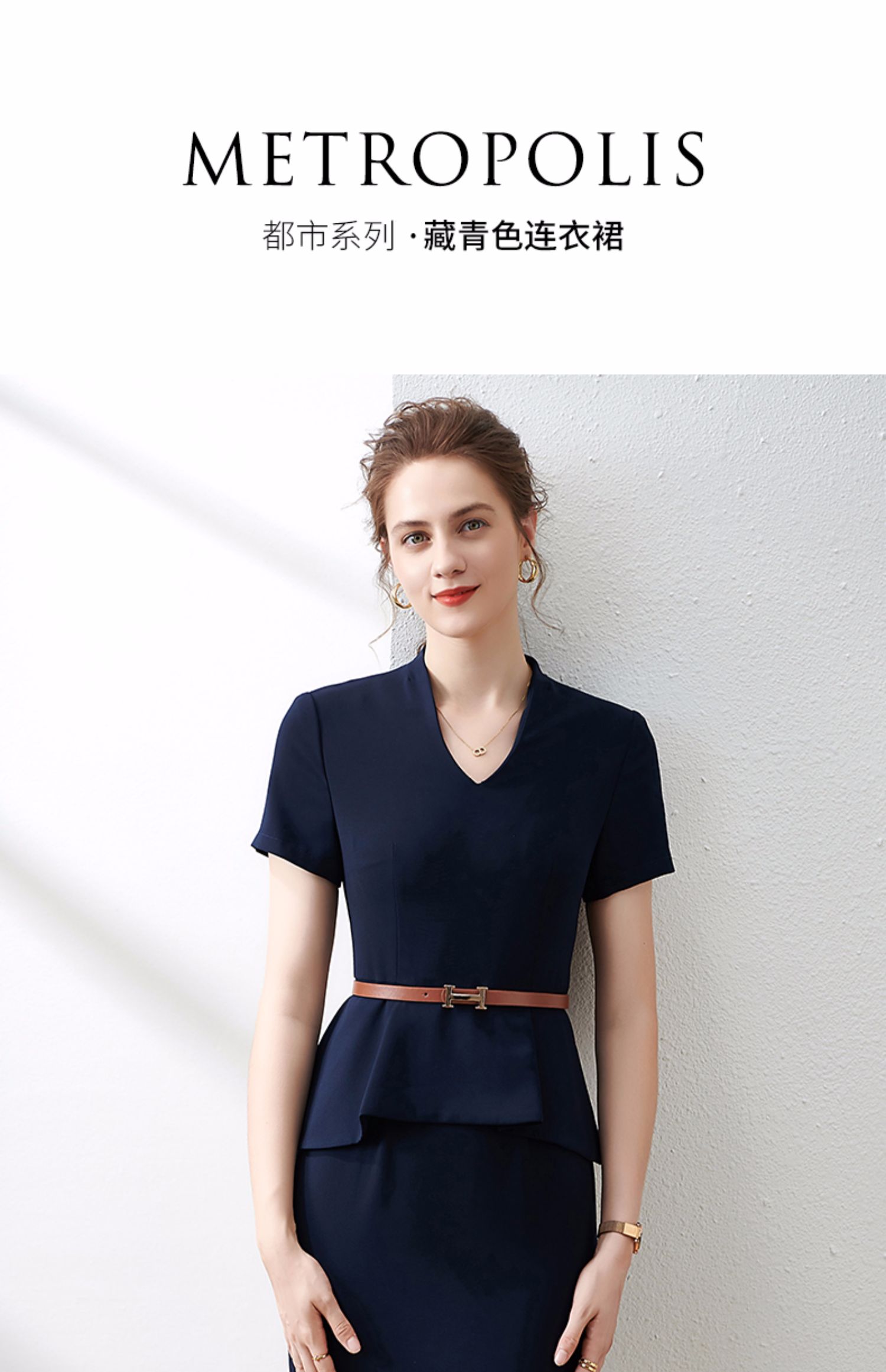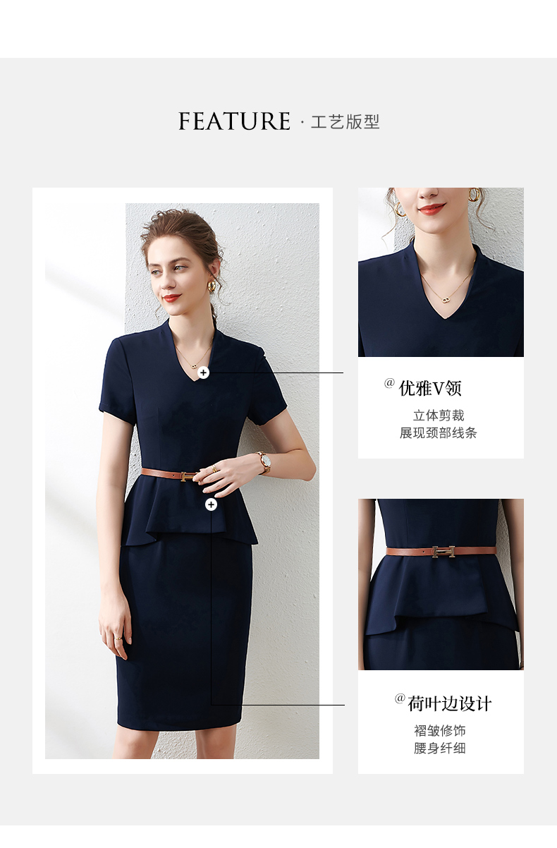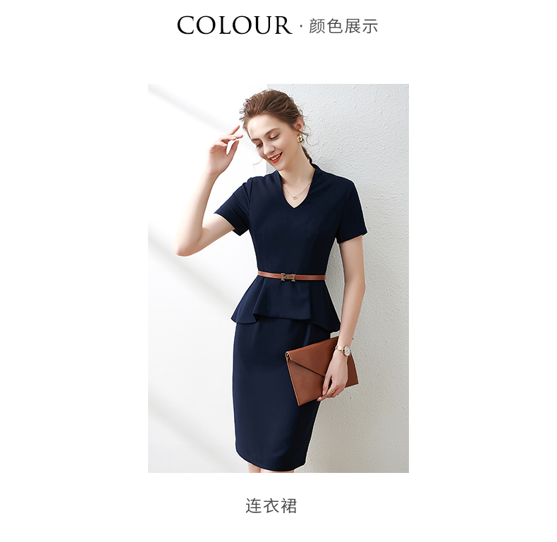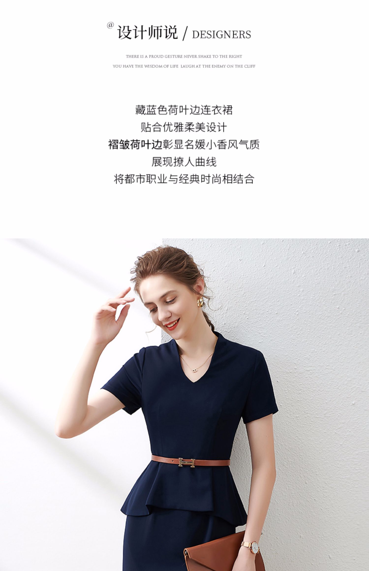 IWY/藏蓝色荷叶边连衣裙优雅名媛小香风气质经典时尚包臀OL职业 Q390