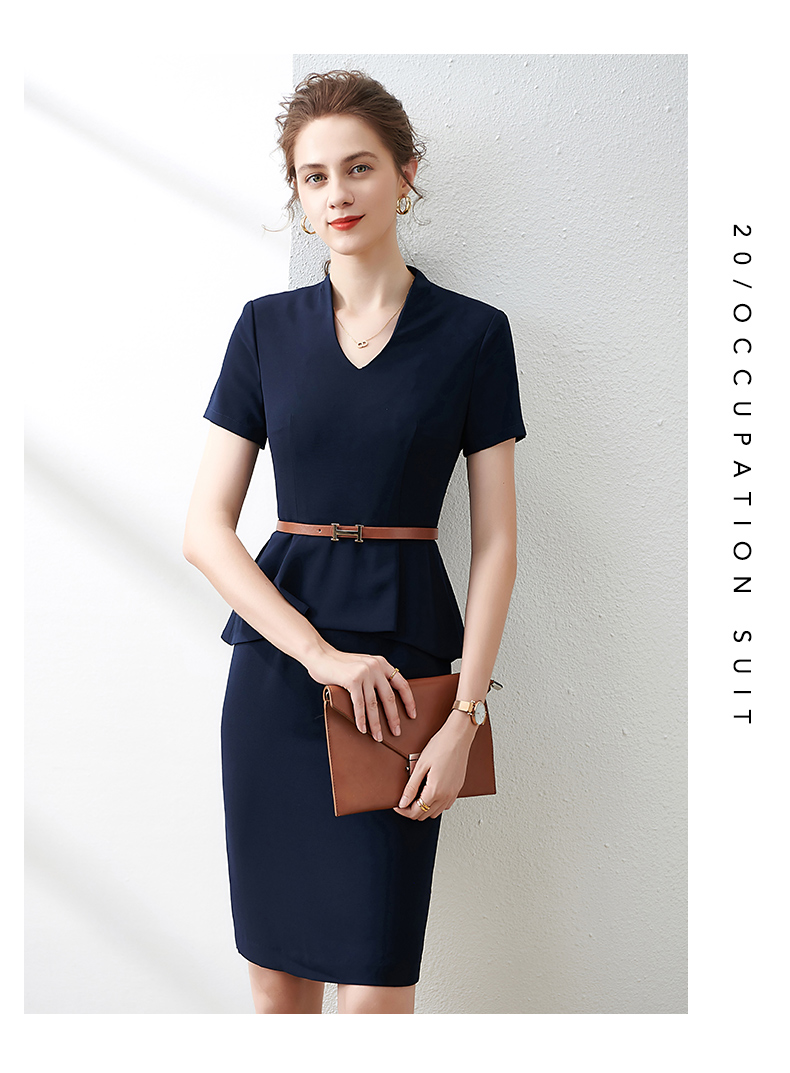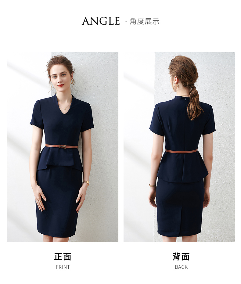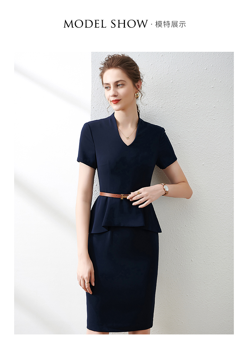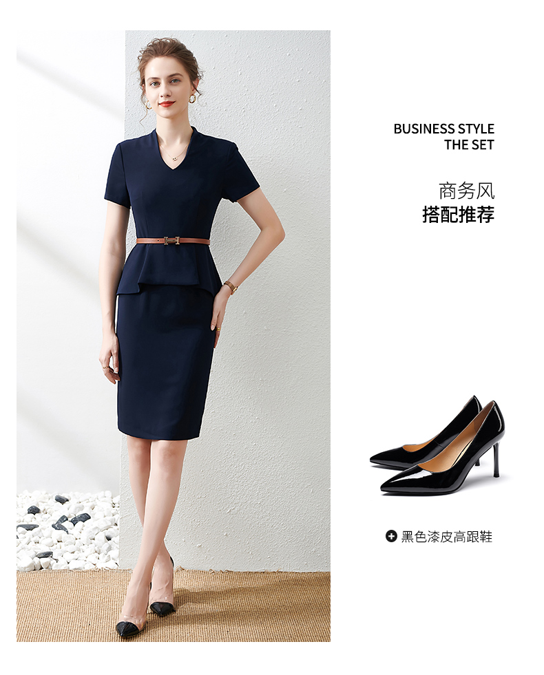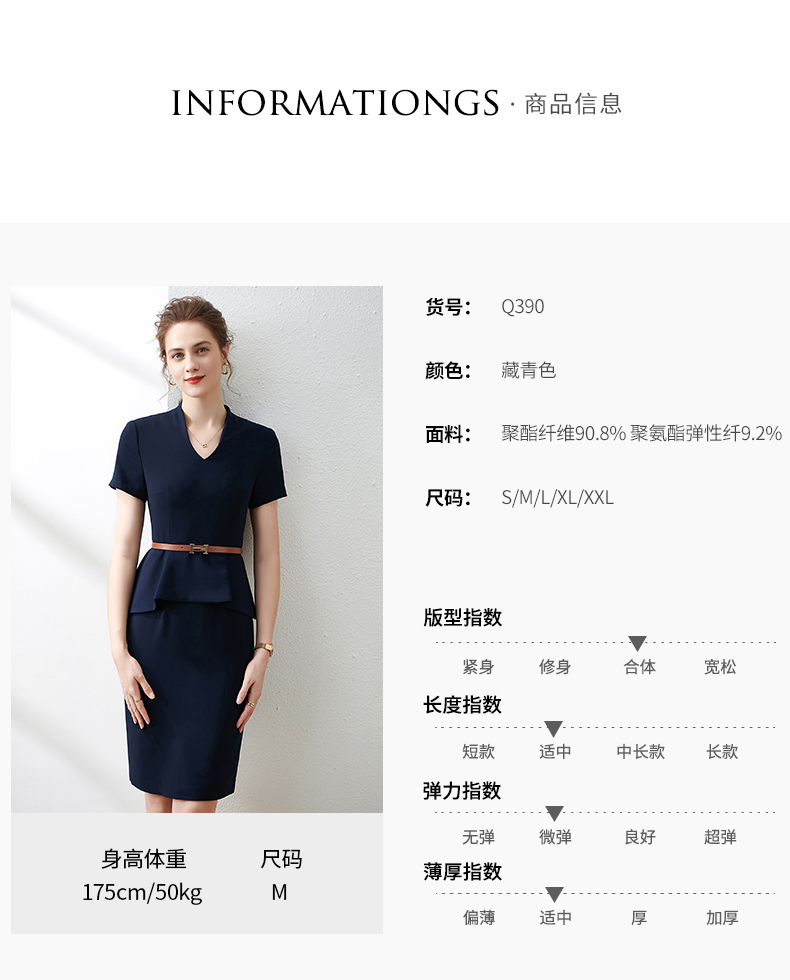 IWY/藏蓝色荷叶边连衣裙优雅名媛小香风气质经典时尚包臀OL职业 Q390