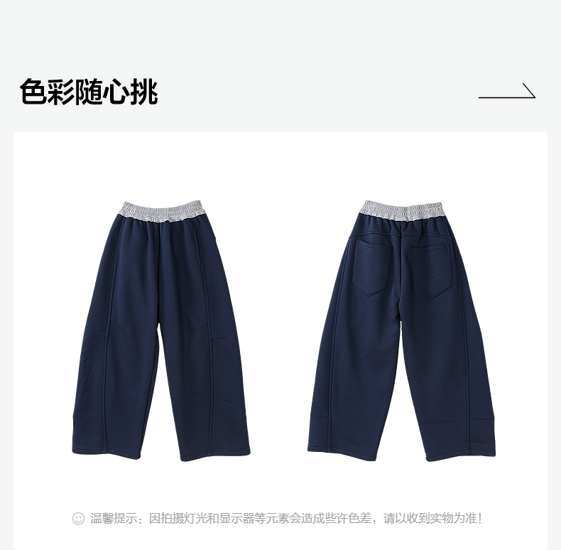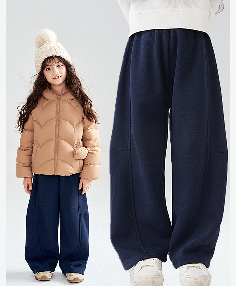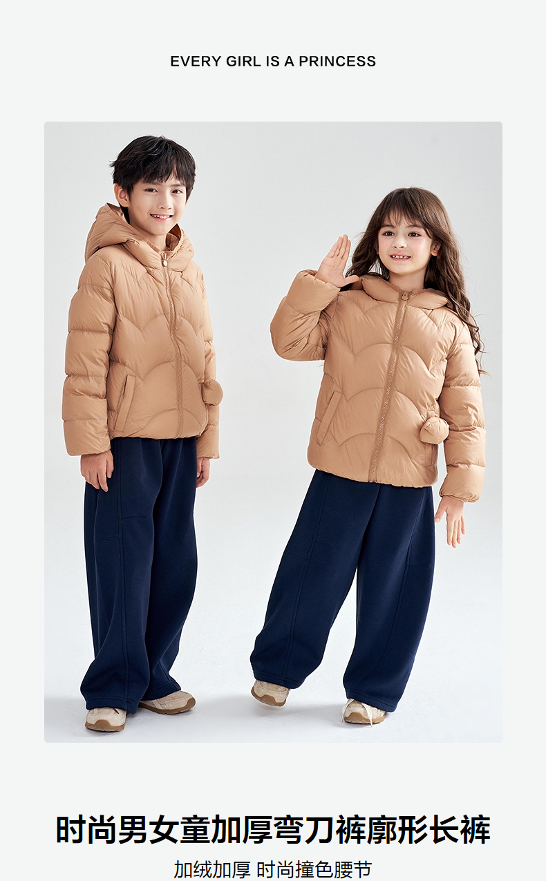 笛莎Deesha 2025冬季新款时尚男女童加厚弯刀裤廓形长裤