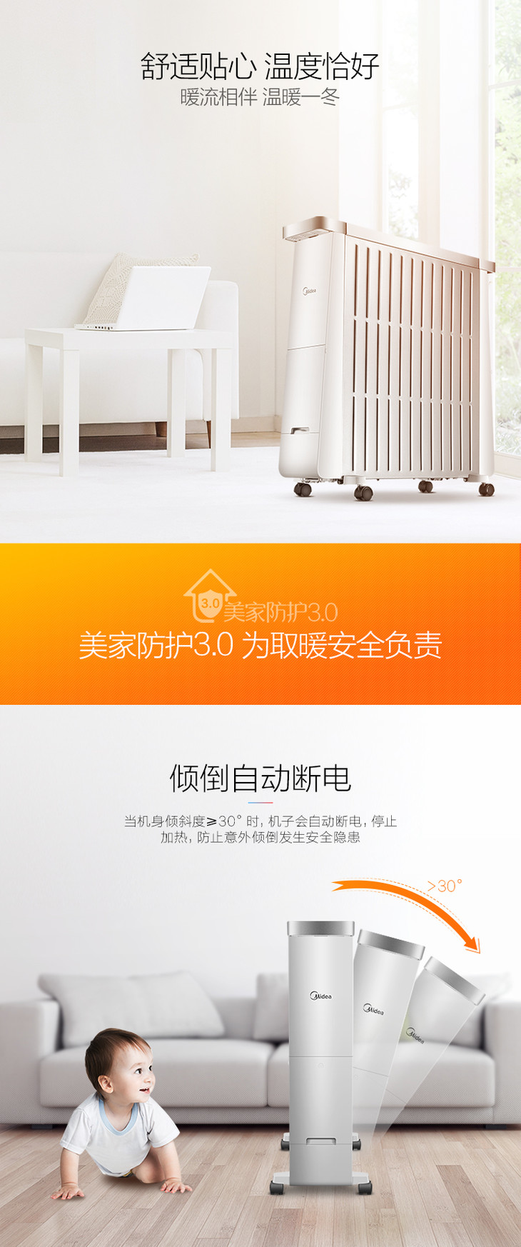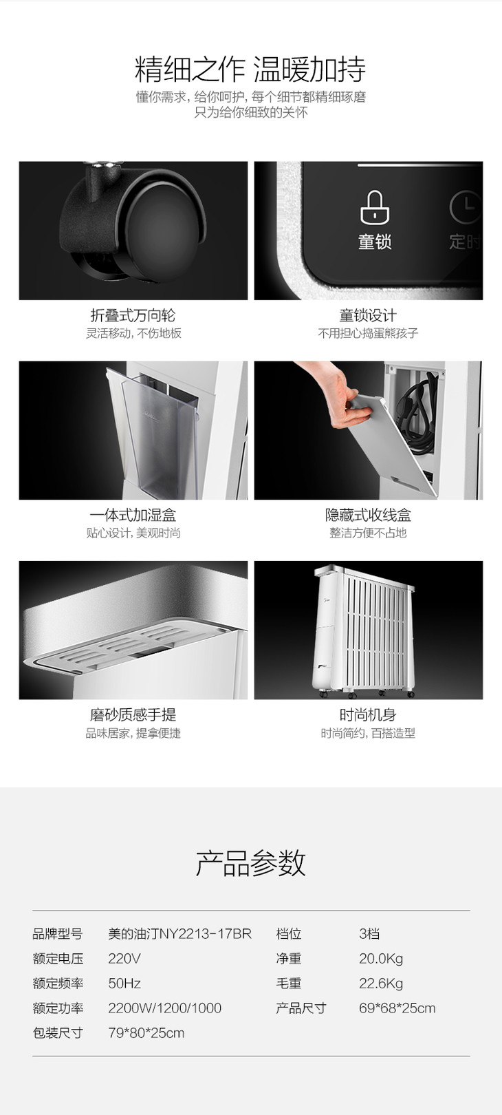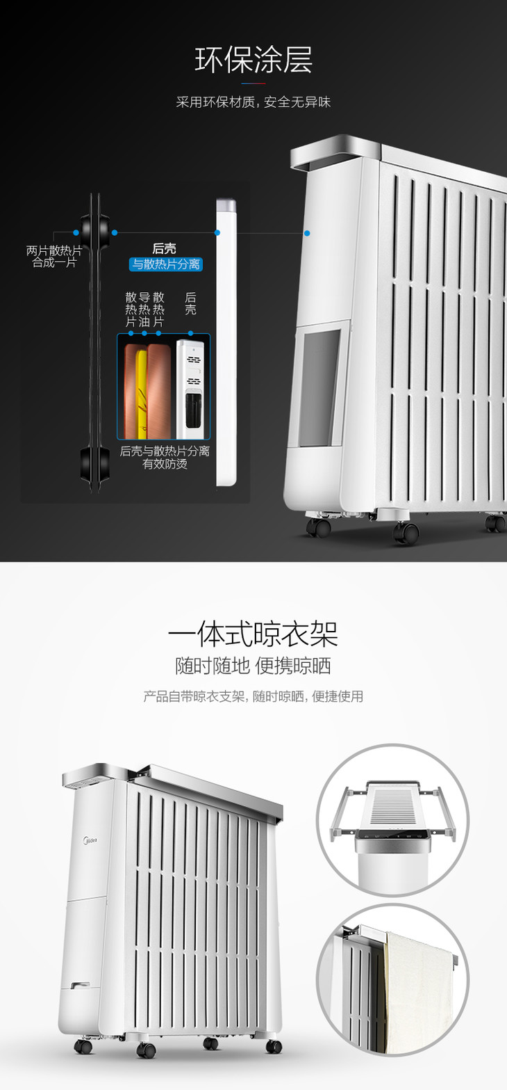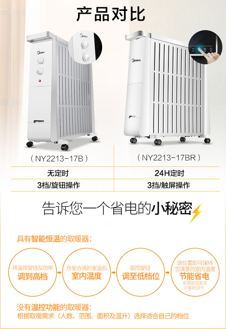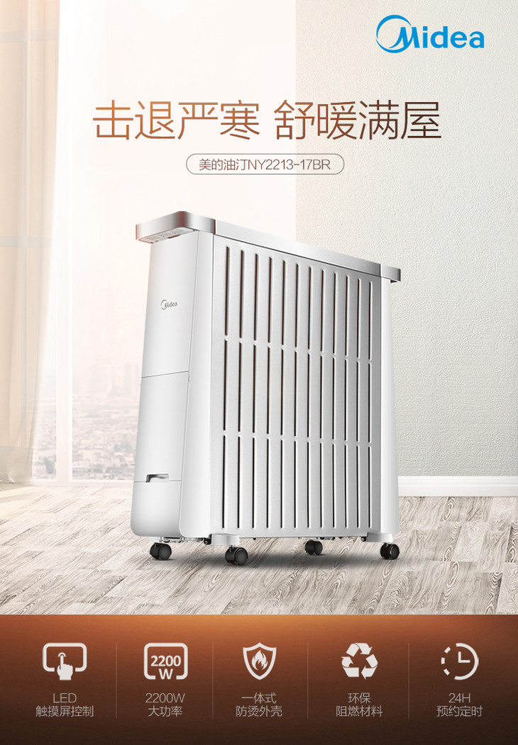 美的(Midea) 油汀电暖器13片电热油汀防烫 静音节能取暖器家用 电暖气 NY2213-17BR(电脑触屏款)