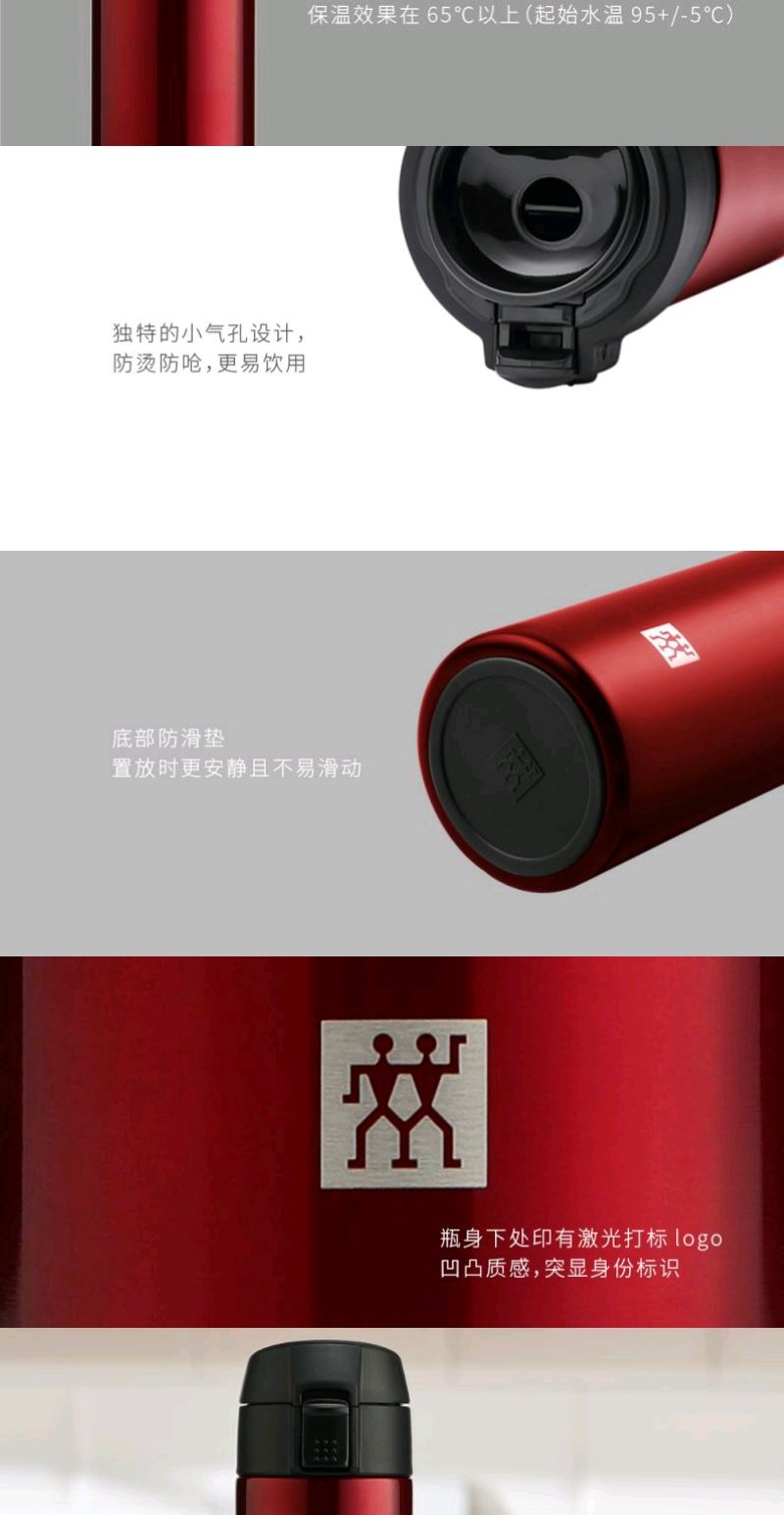 双立人真空弹跳杯450毫升 亮光红 ZW-BP101
