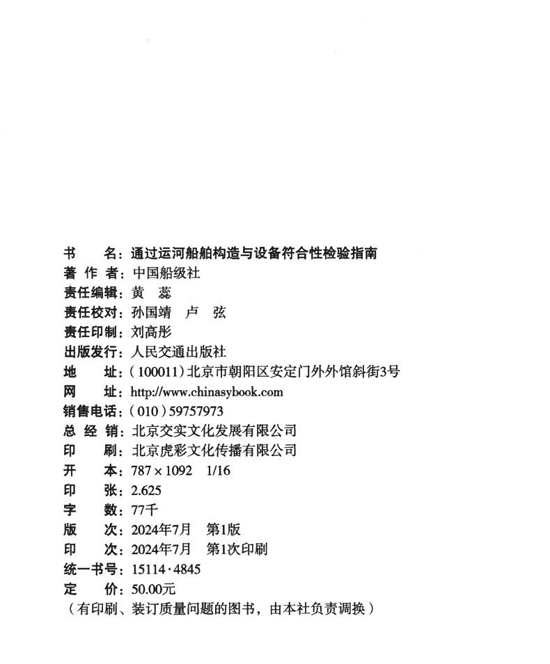 书名:通过运河船舶构造与设备符合性检验指南(2023)