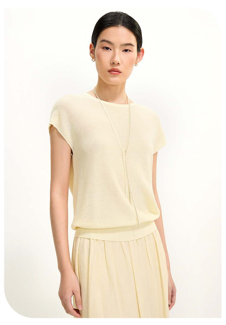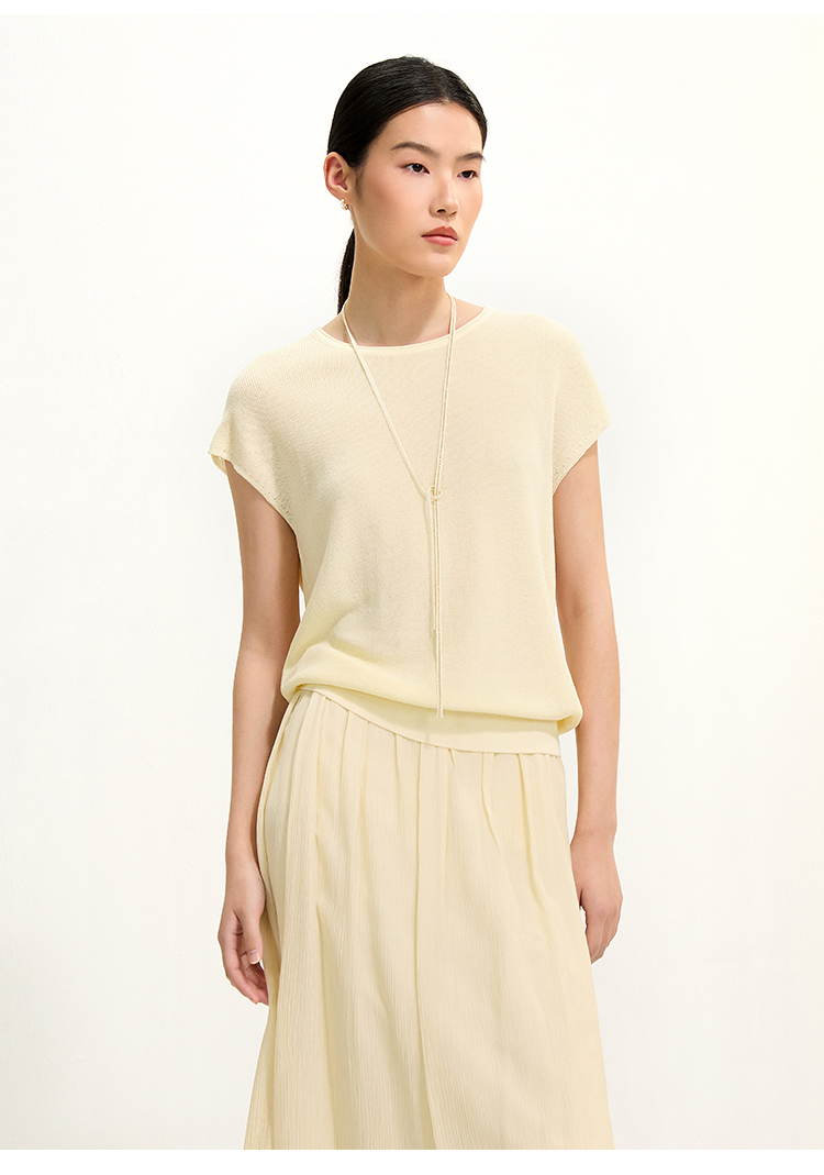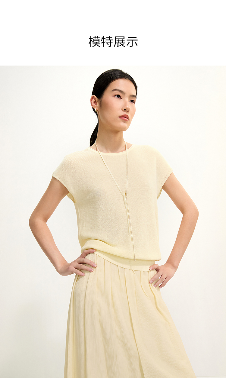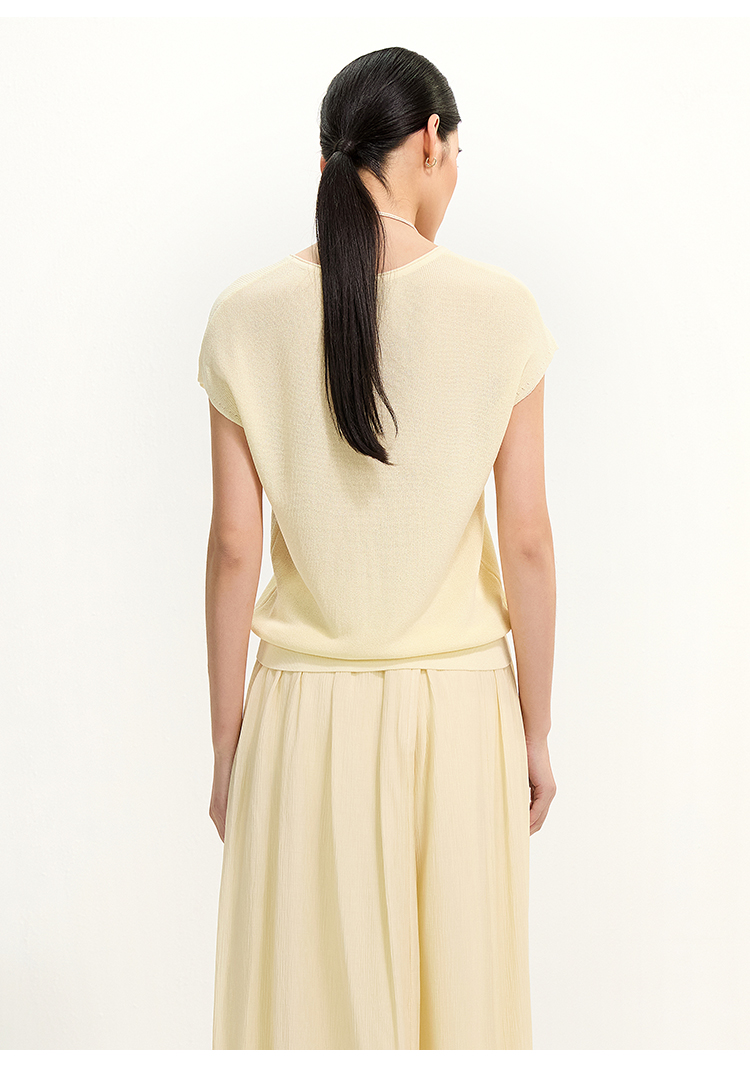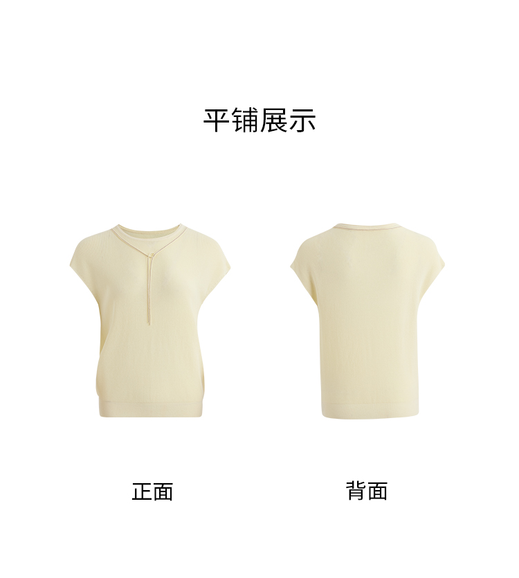 PURE TOUCH米白色简约V领无袖针织上衣 1346252134