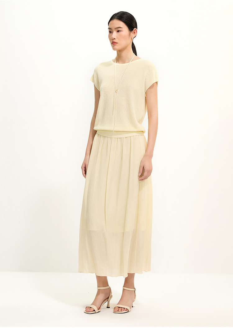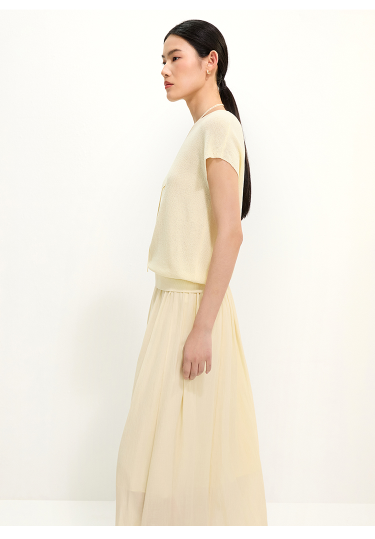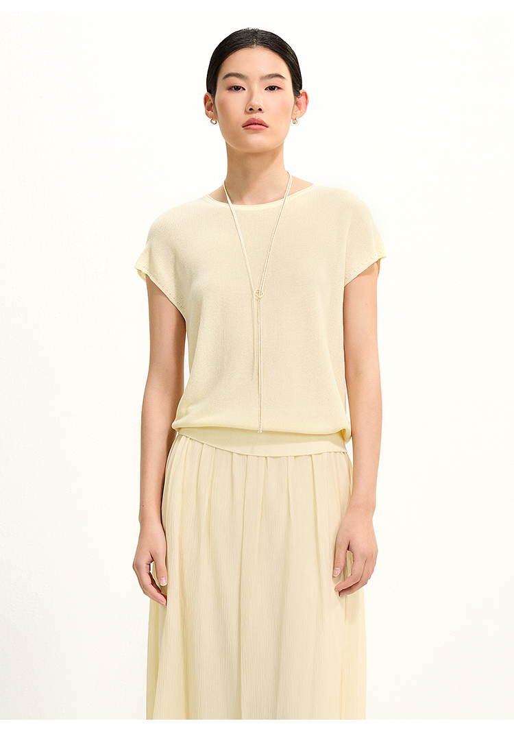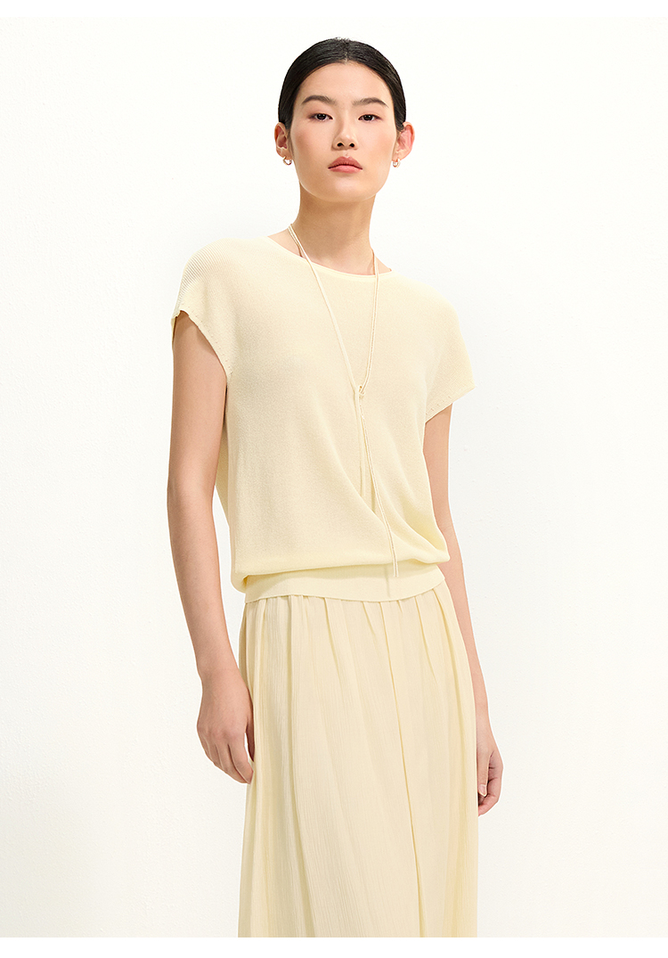 PURE TOUCH米白色简约V领无袖针织上衣 1346252134